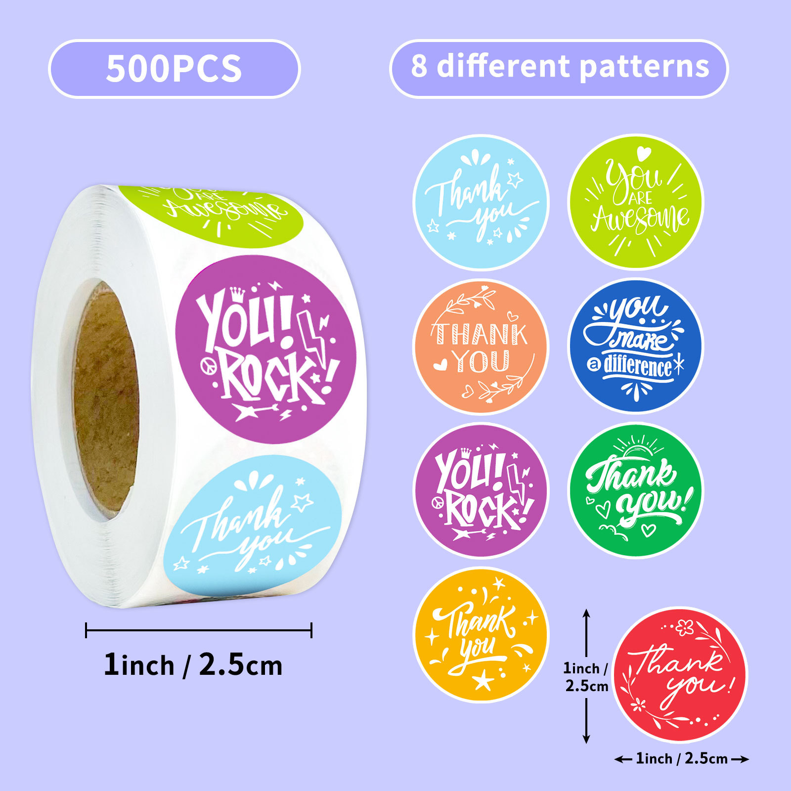 500 시트/롤 감사합니다 스티커 어린이 아마존 롤 크래프트 종이 라운드 베이킹 밀봉 라벨 스티커 감사합니다