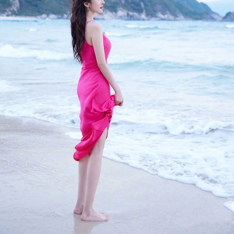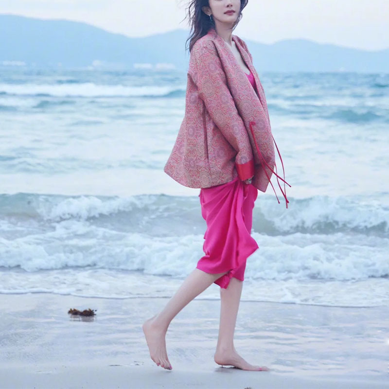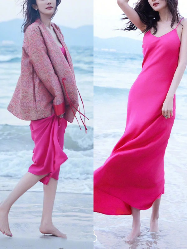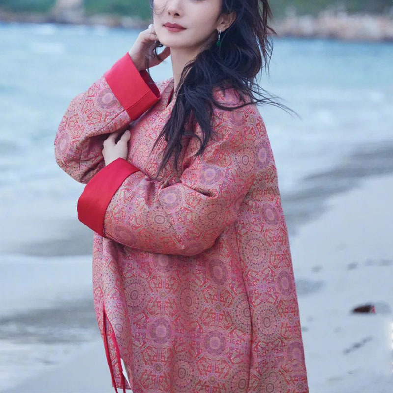 양미 같은 스타일의 새로운 중국 스타일 레드 우아한 자카드 코트 고급 로즈 레드 슬링 원피스 2 세트스토어 가기