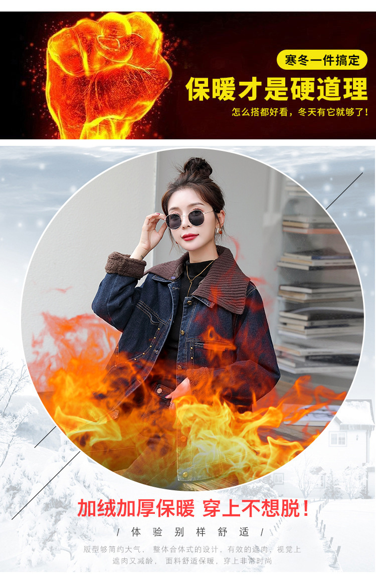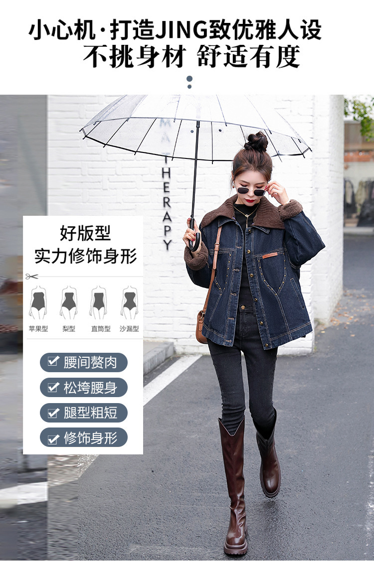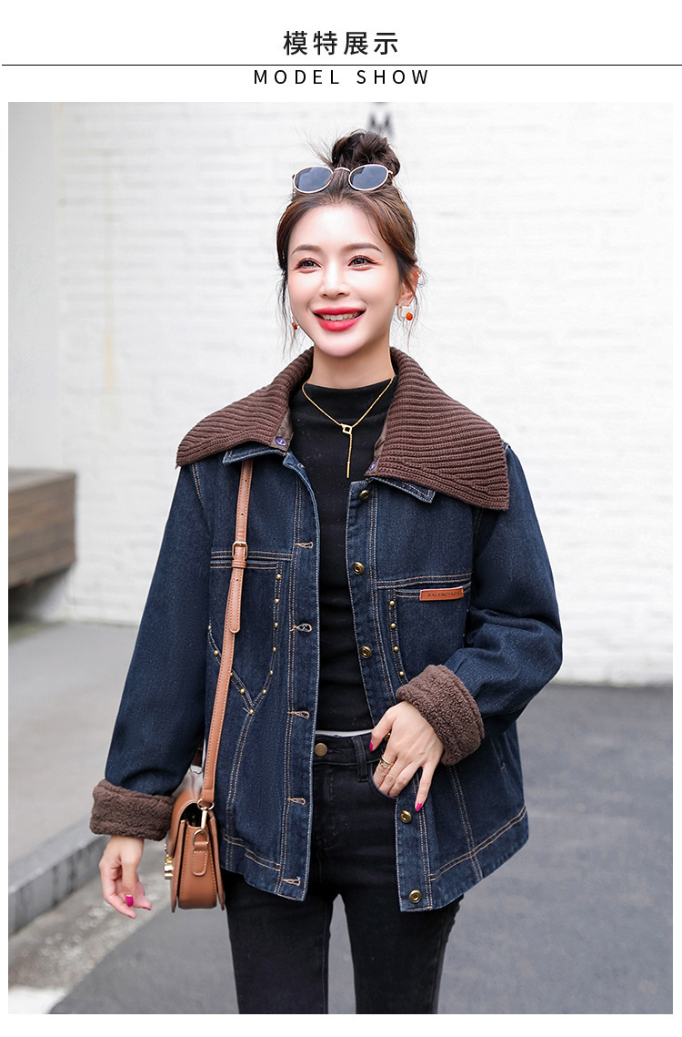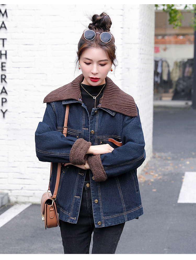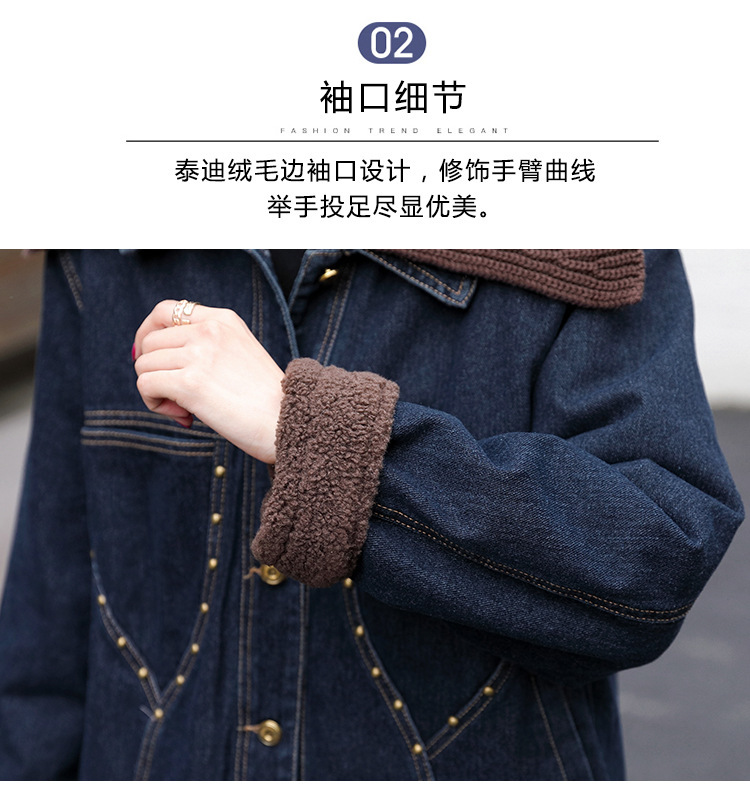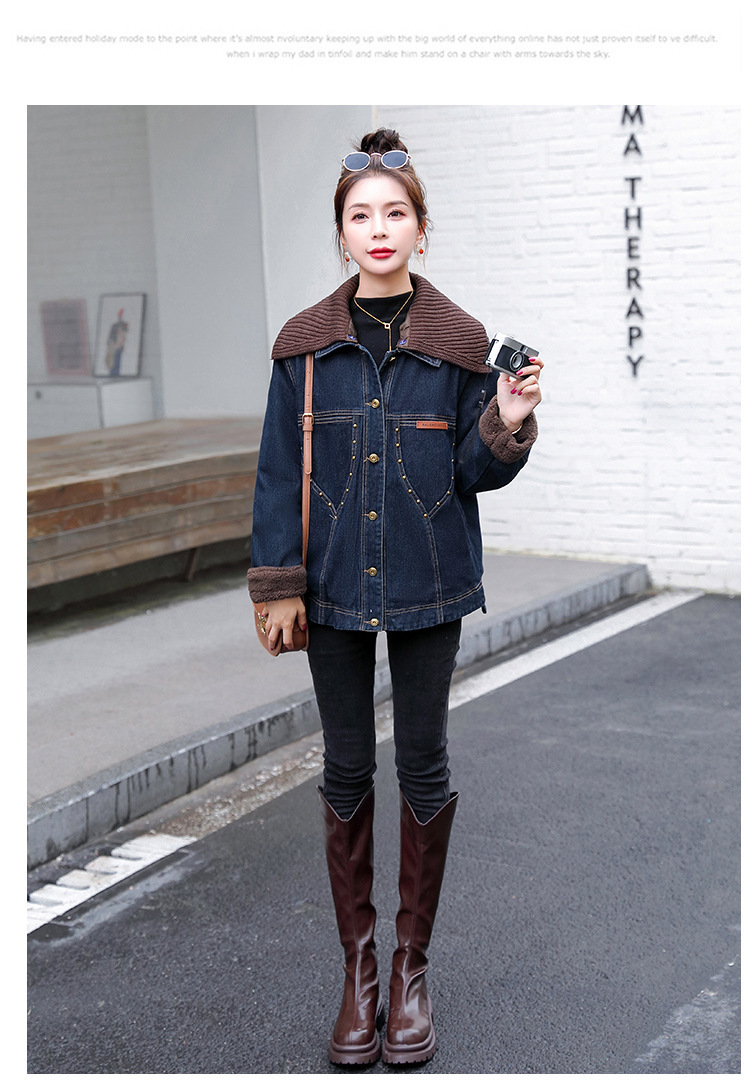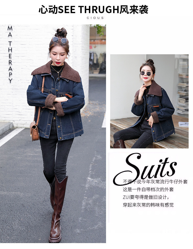 하이 퀄리티 나이를 줄이는 기모 두껍게 한 데님 코트 겨울 새로운 느슨한 따뜻한 플러스 사이즈 파카 양모 면봉 코트스토어 가기