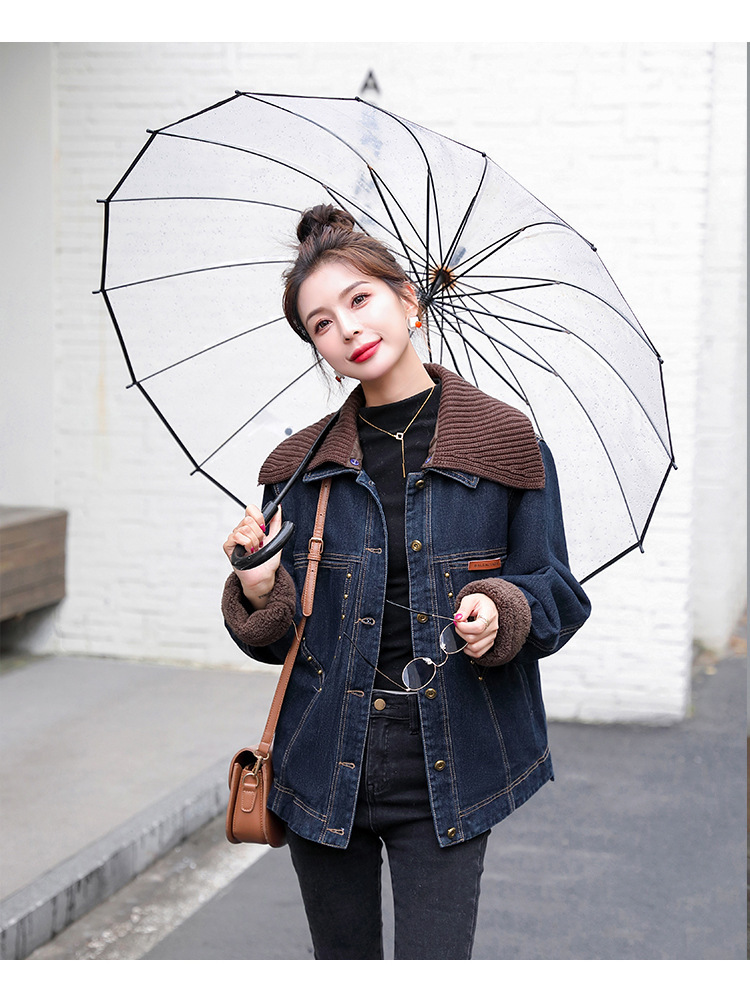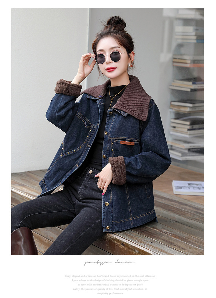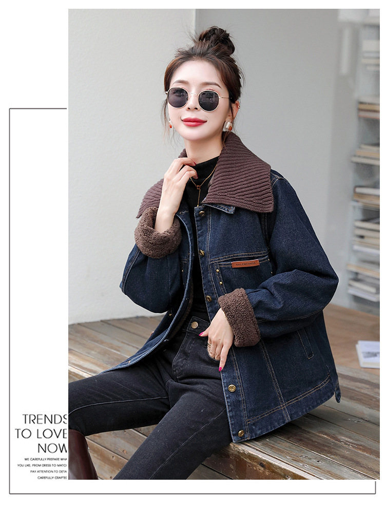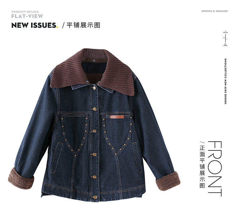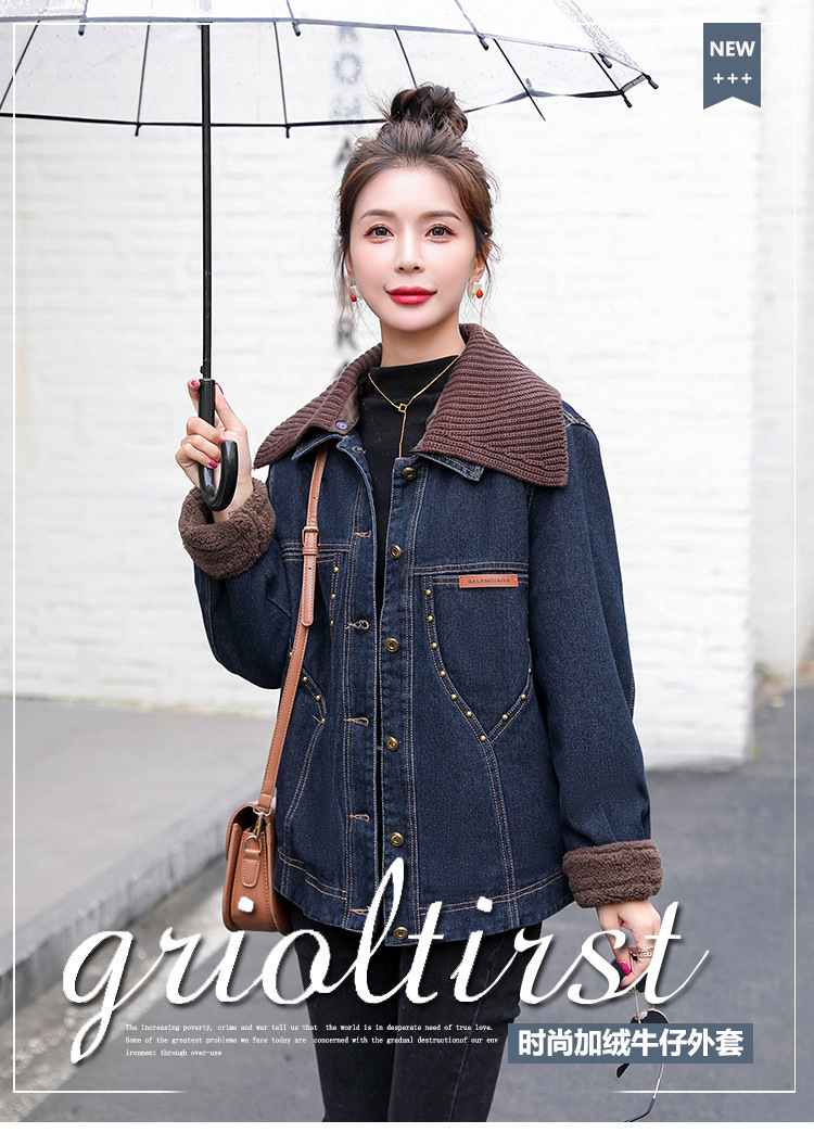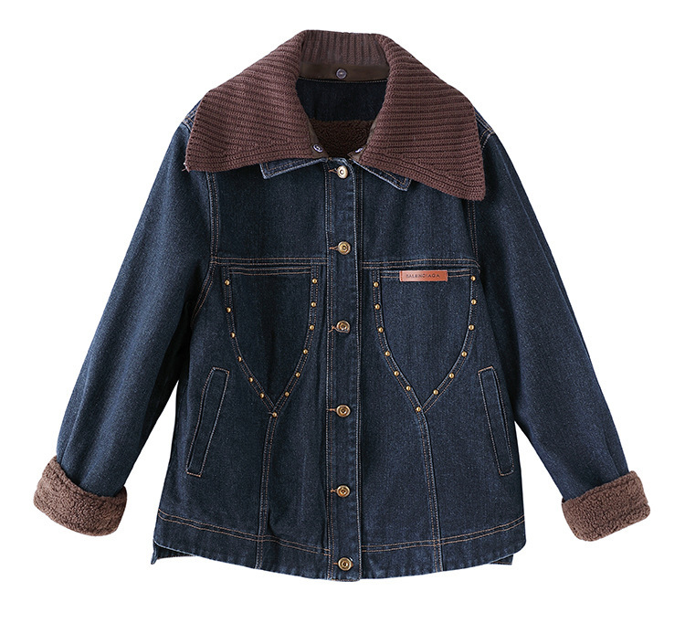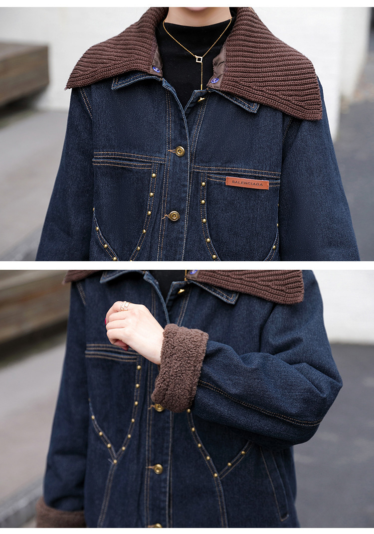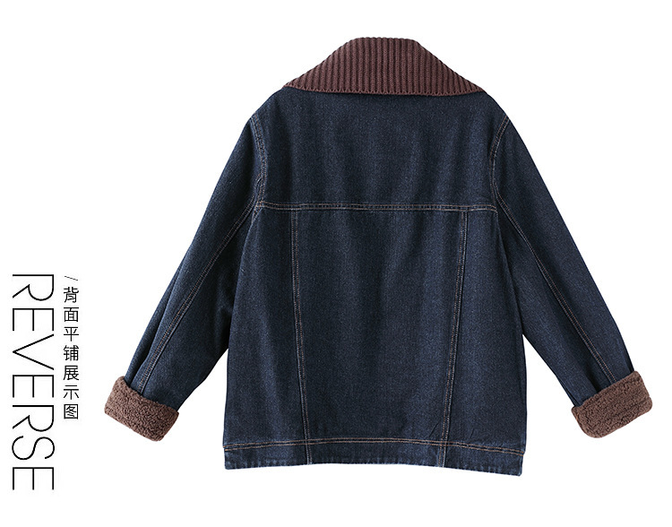 하이 퀄리티 나이를 줄이는 기모 두껍게 한 데님 코트 겨울 새로운 느슨한 따뜻한 플러스 사이즈 파카 양모 면봉 코트