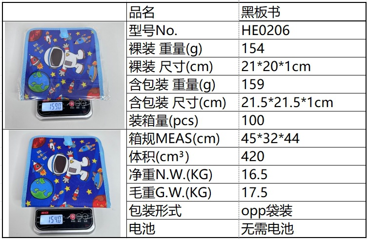 • 칠판 책 [우주비행사 스타일] + 수채 물감 펜 12개 (5페이지 8면 칠판) [해외 배송 포장]