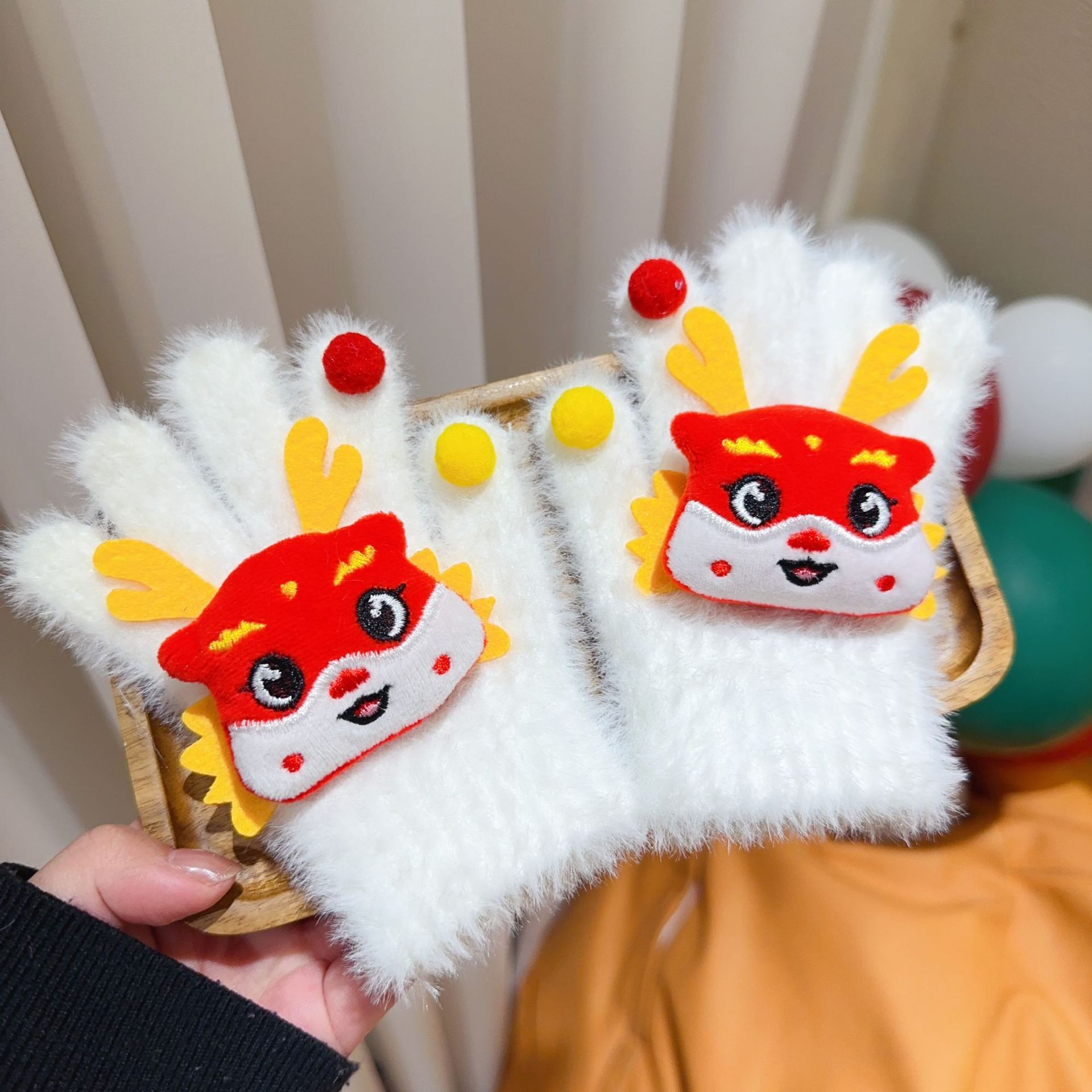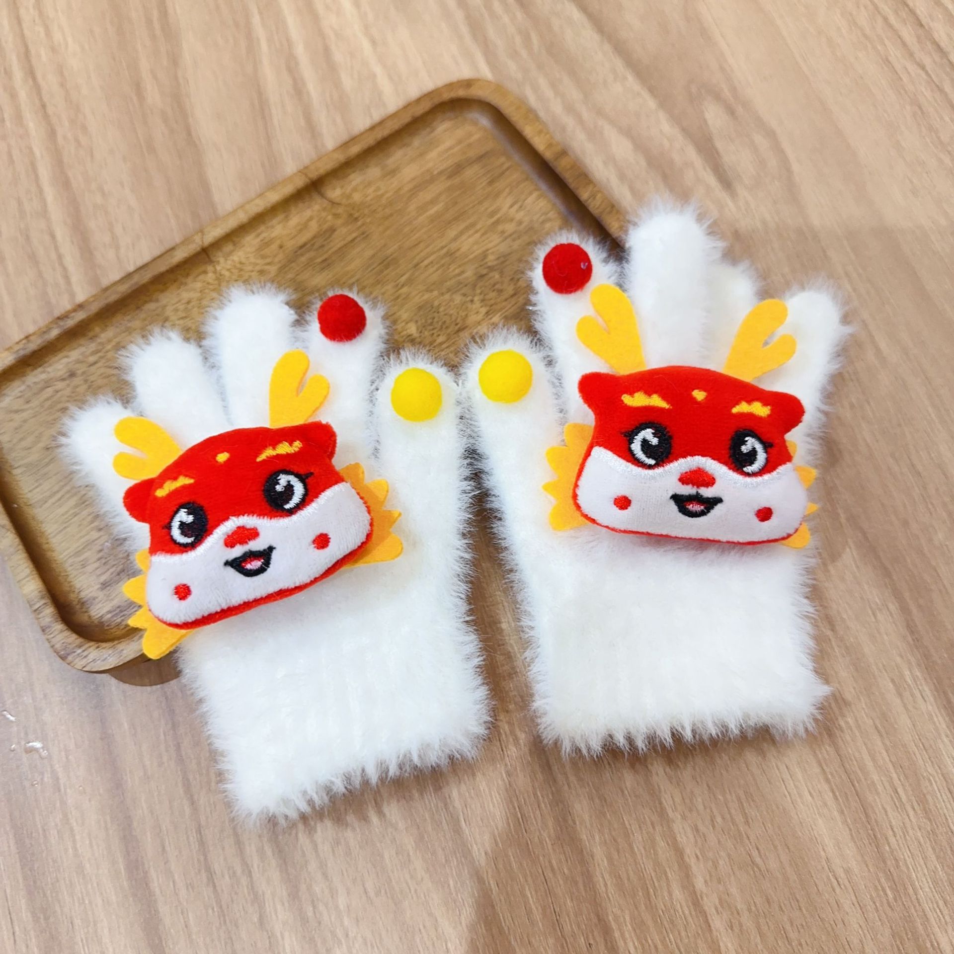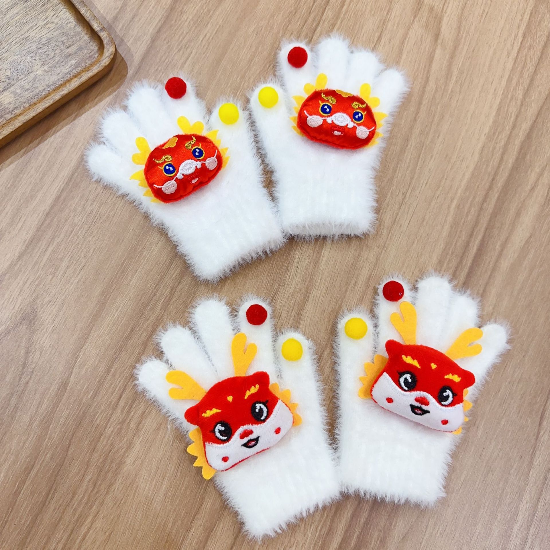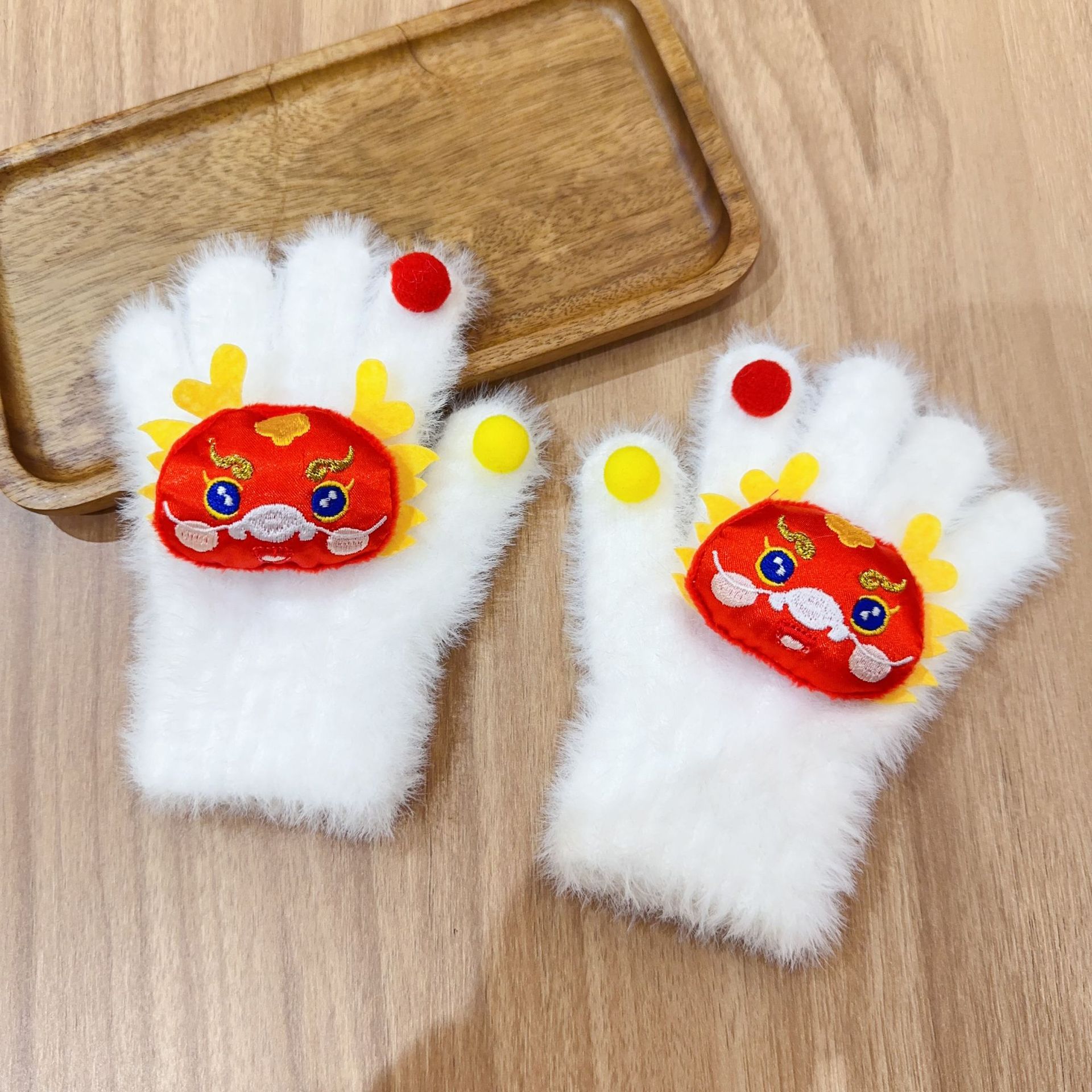새로운 어린이 장갑 겨울 드래곤 년 만화 두꺼운 손가락 자수 귀여운 인형 새해 따뜻한 장갑 남녀