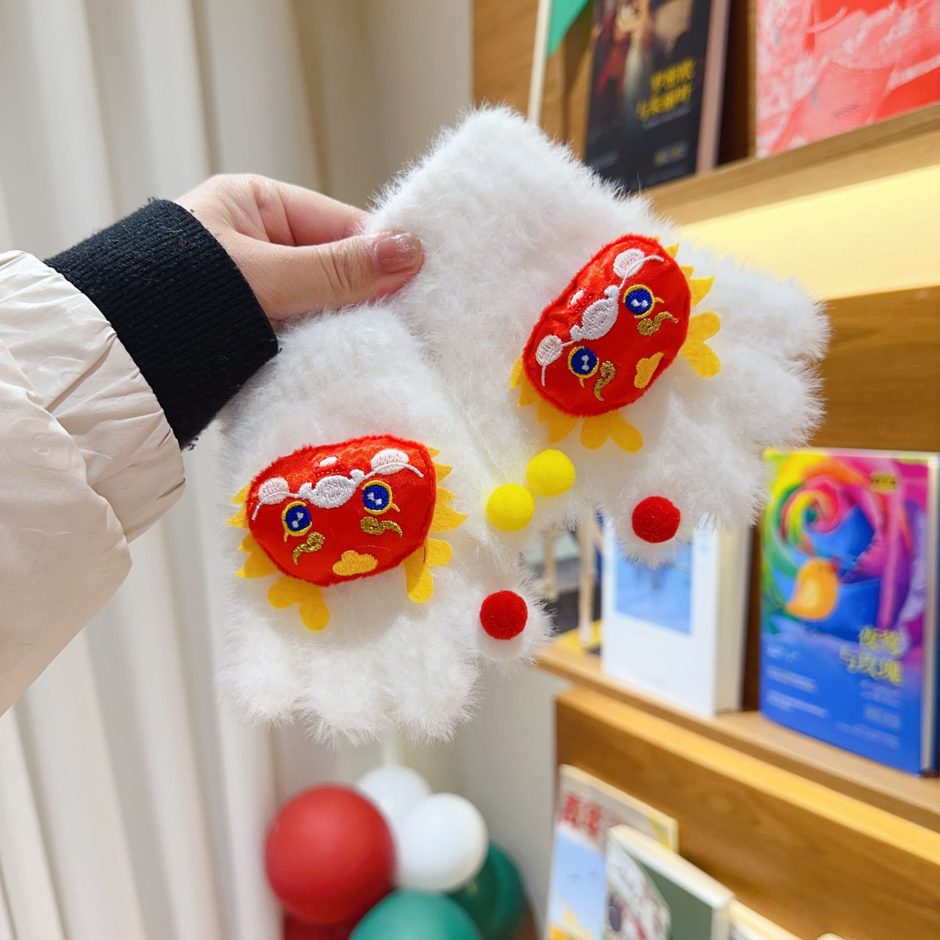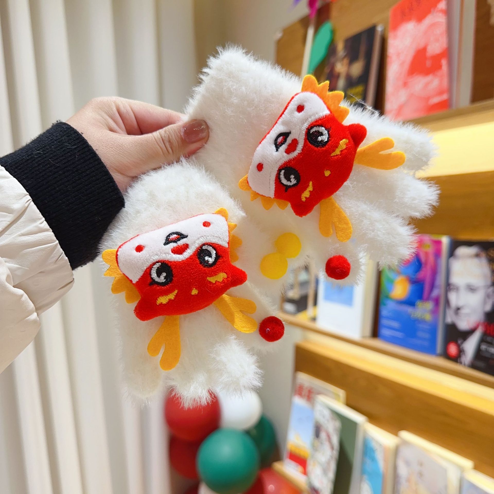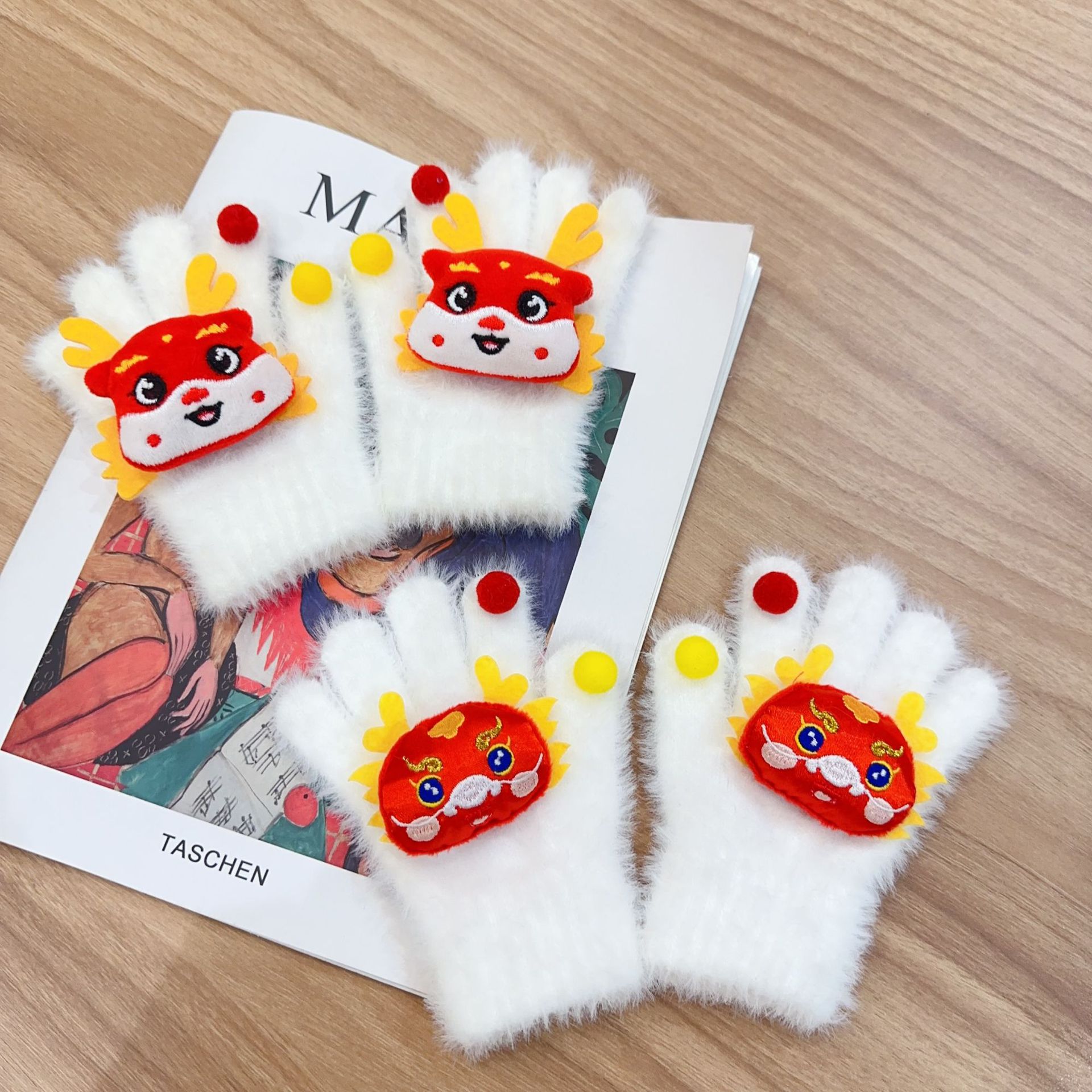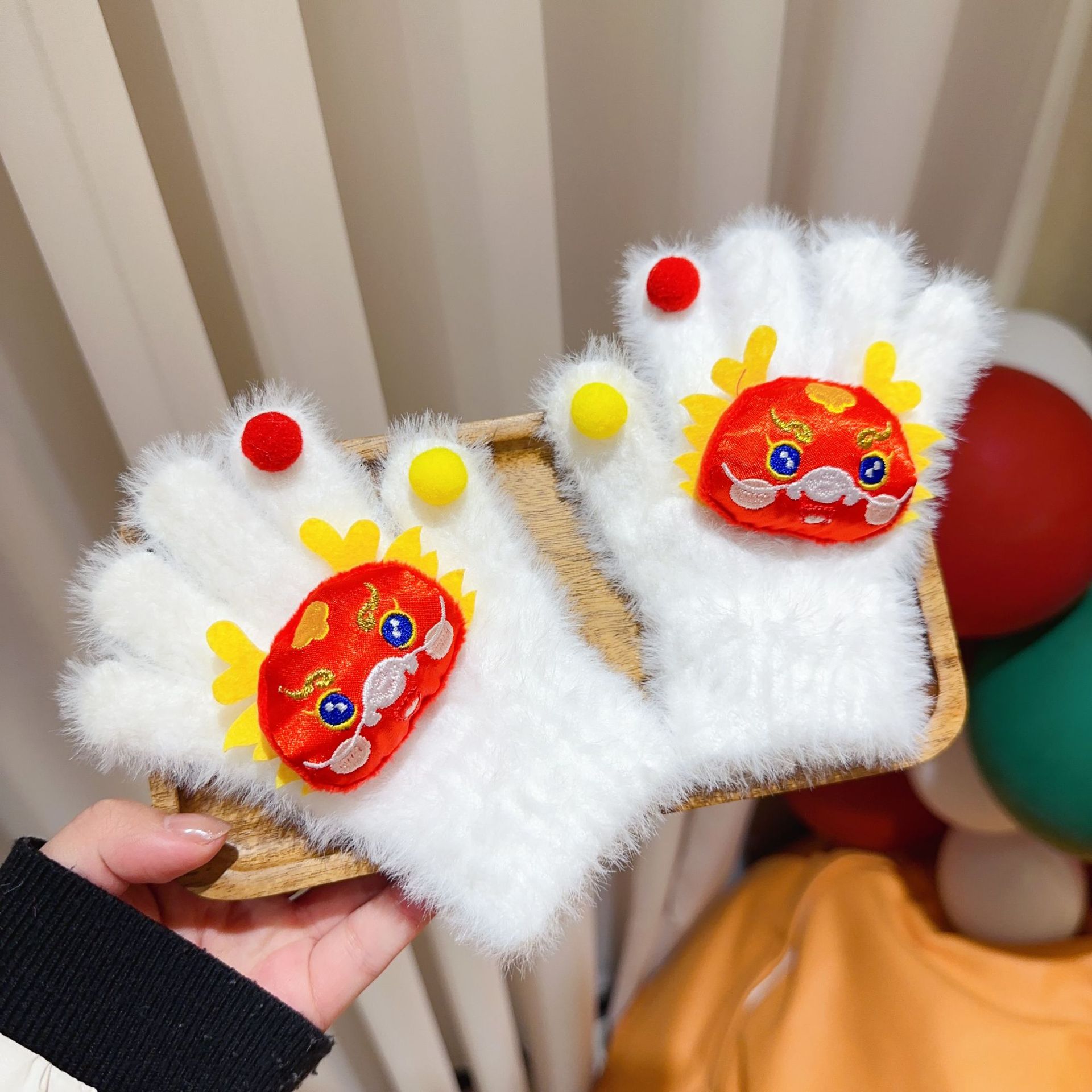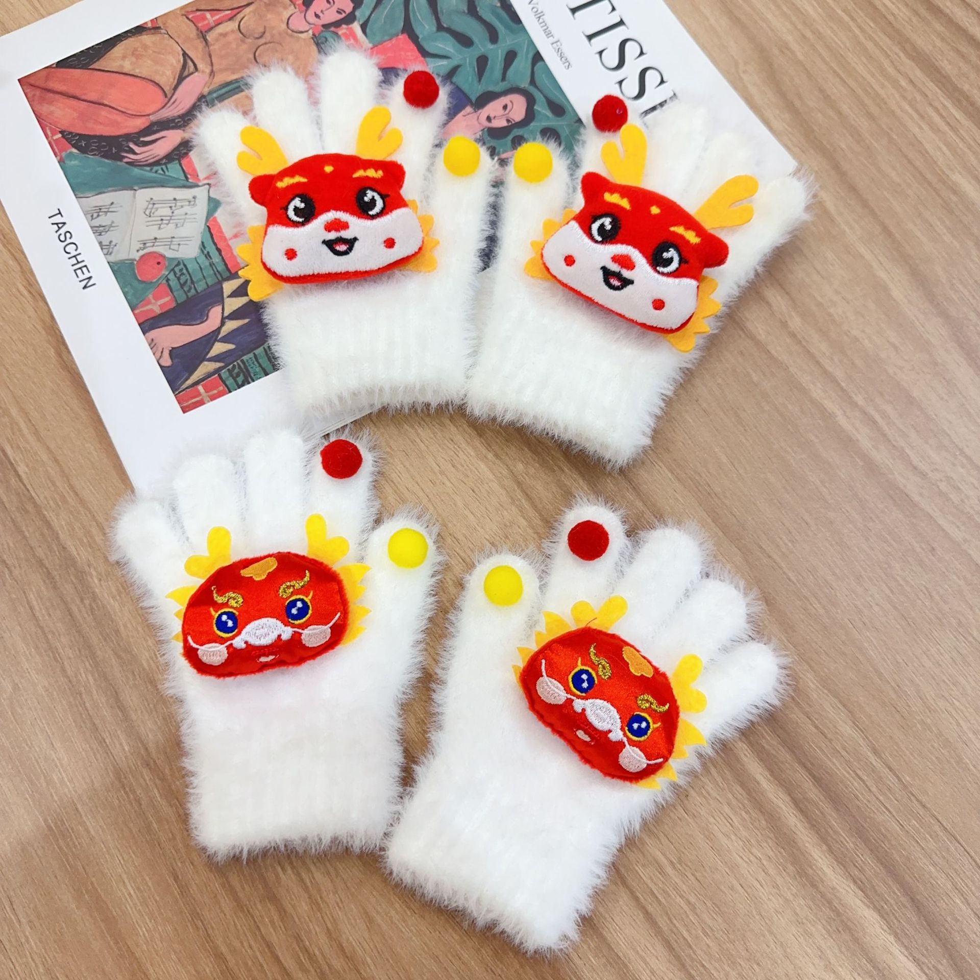새로운 어린이 장갑 겨울 드래곤 년 만화 두꺼운 손가락 자수 귀여운 인형 새해 따뜻한 장갑 남녀