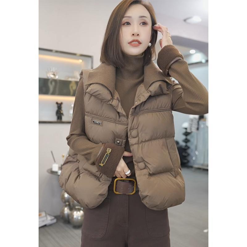 여성을위한 Maillard 유행 다운 코튼 패딩 코트 조끼 가을과 겨울 새로운 따뜻한 옷깃 코트 민소매 양복 조끼