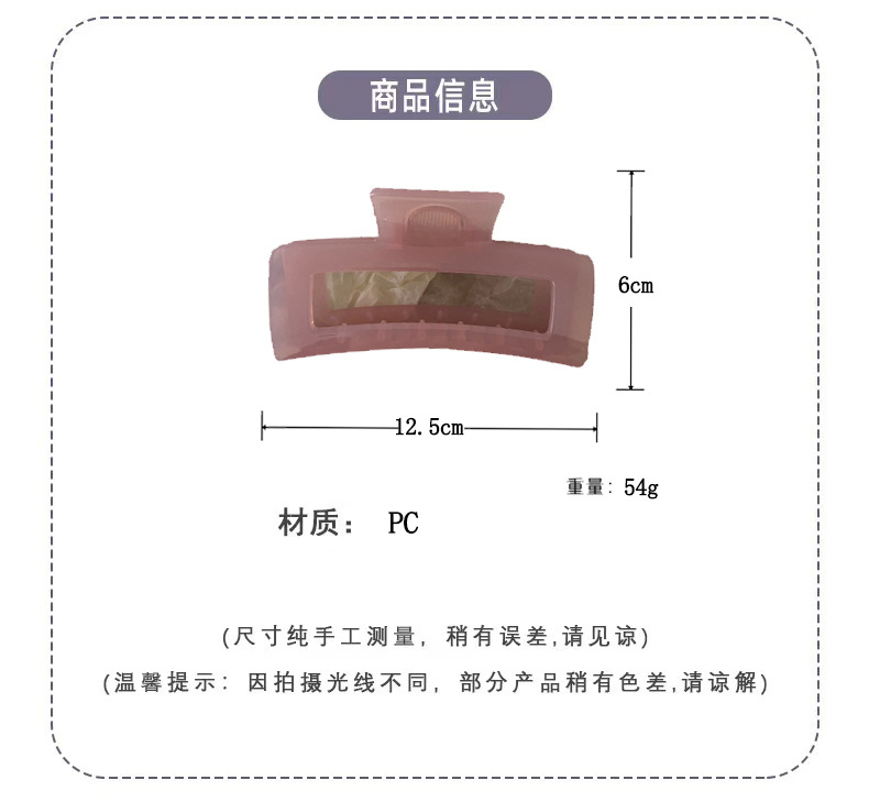 한국 스타일 대형 12.5cm 중공 사각형 헤어 클립 높은 질감 젤리 컬러 헤어 클립 여성 상어 클립 머리 장식
