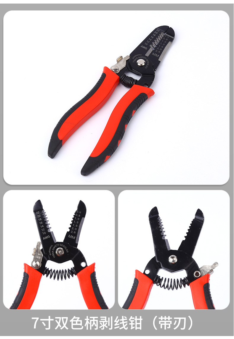 • 7 인치 더블 컬러 핸들 와이어 스트리퍼 (블레이드 포함)