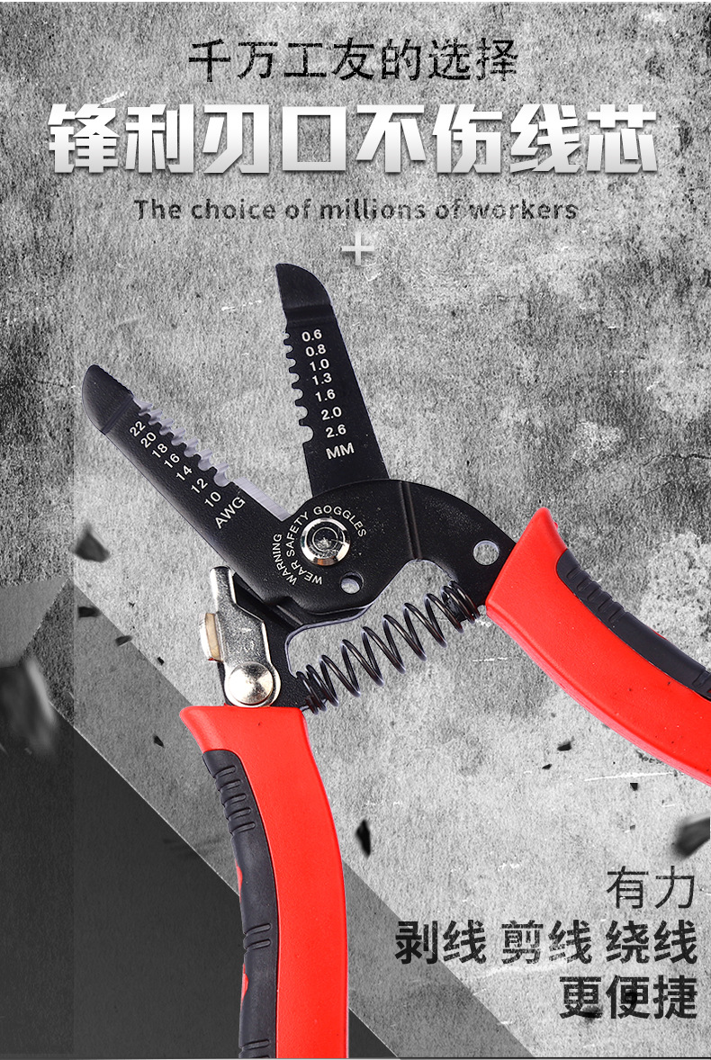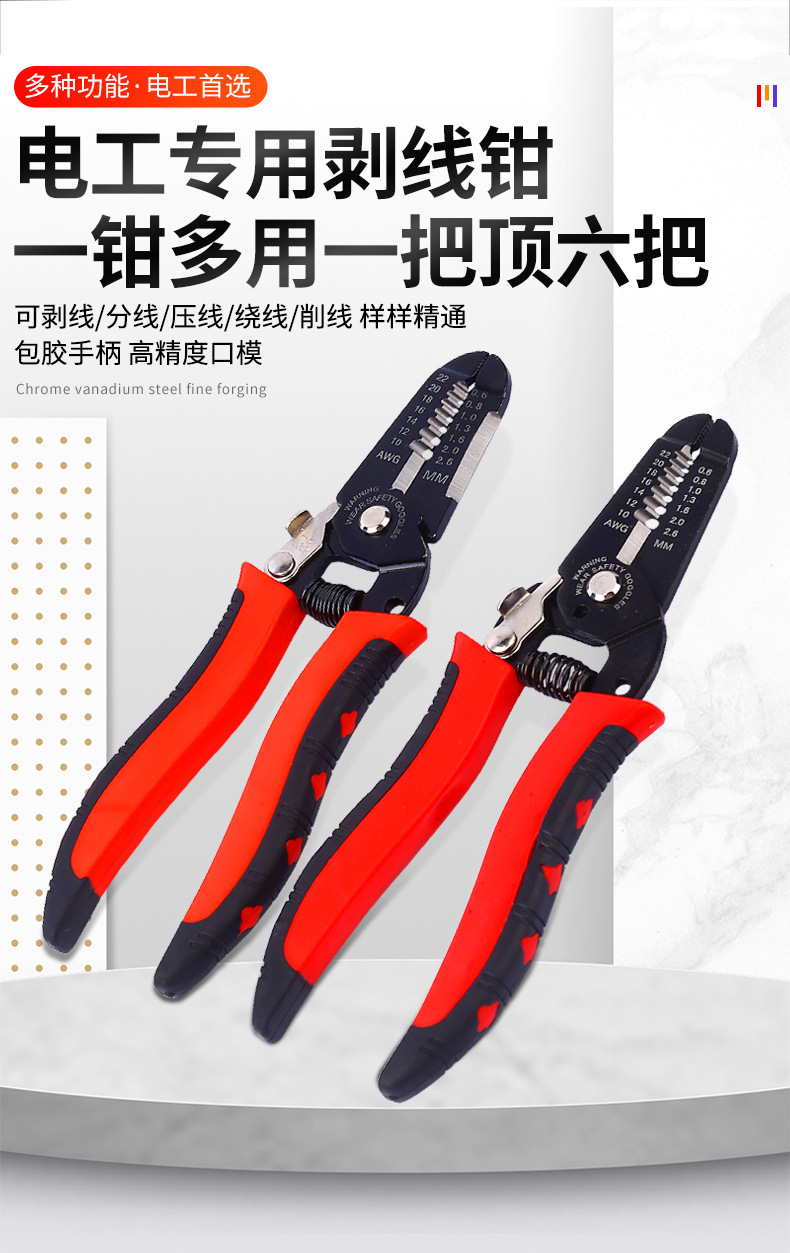 다기능 와이어 스트리퍼, 전기 기술자용 전선 피복 제거 도구, 와이어 스트리퍼 6inch 산업용 등급 절단 및 스트리핑 펜치스토어 가기