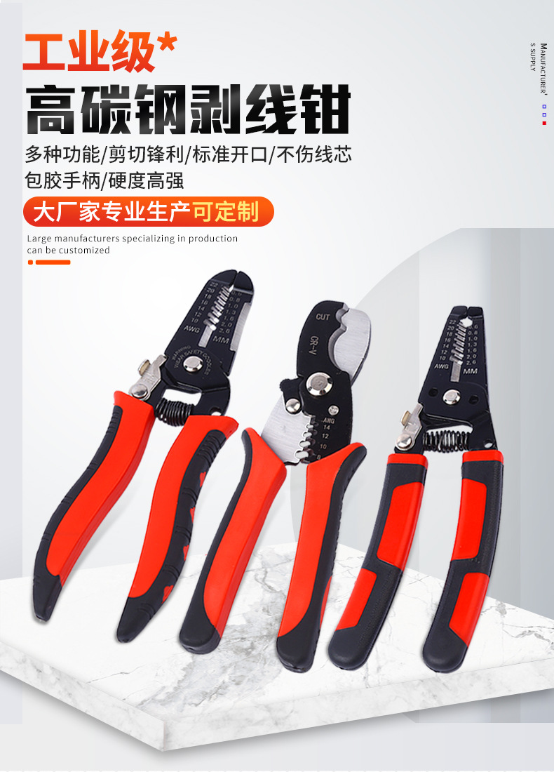• 구부러진 손잡이가있는 7 인치 더블 컬러 헤비 듀티 와이어 스트리퍼