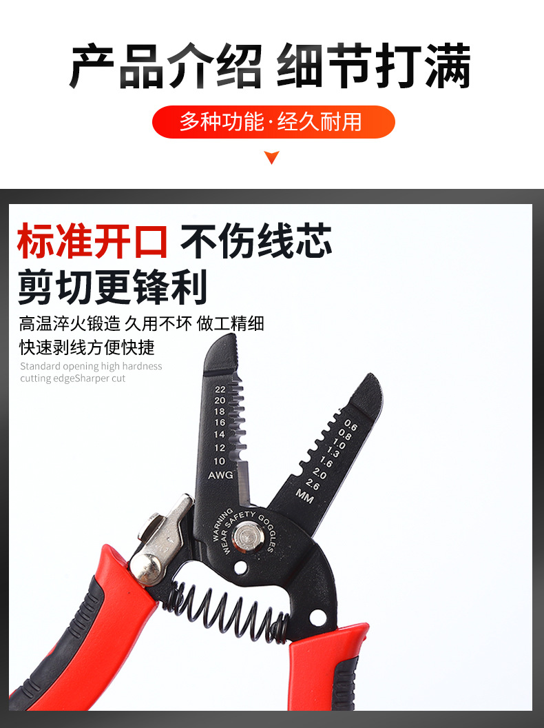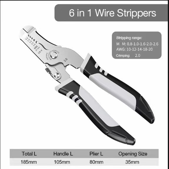 다기능 와이어 스트리퍼, 전기 기술자용 전선 피복 제거 도구, 와이어 스트리퍼 6inch 산업용 등급 절단 및 스트리핑 펜치