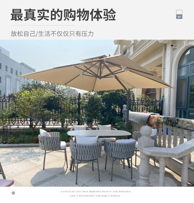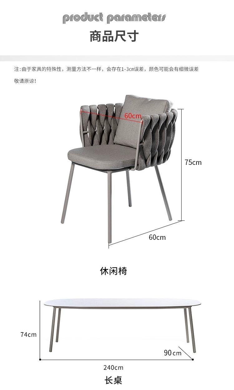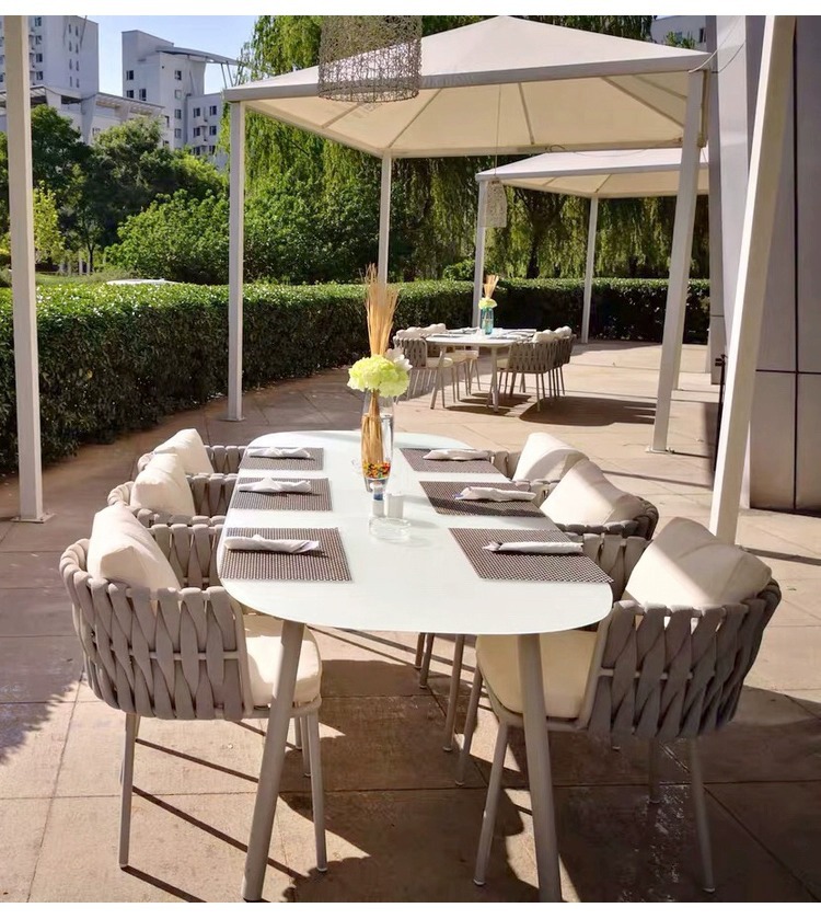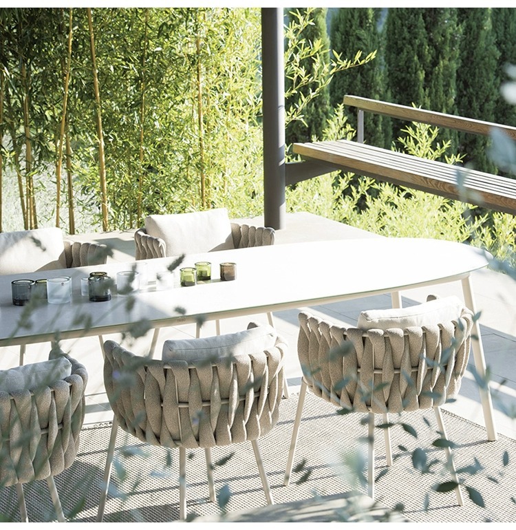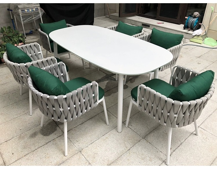 북유럽 야외 로프 짠 테이블과 의자 빌라 정원 야외 등나무 의자 테라스 방수 암석 대리석 식탁과 의자