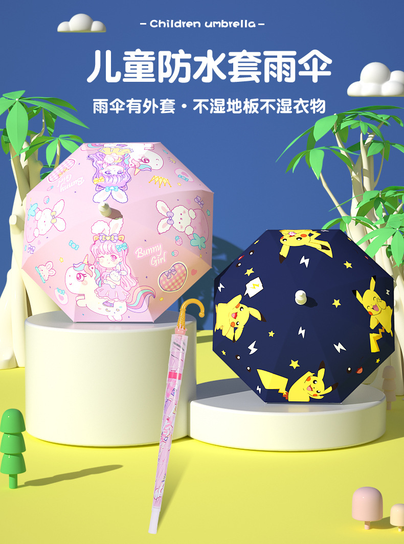 어린이용 방수 커버, 긴 손잡이 우산, 초등학생용 특수 비닐 자외선 차단 우산, 국경 간 특별 공급스토어 가기