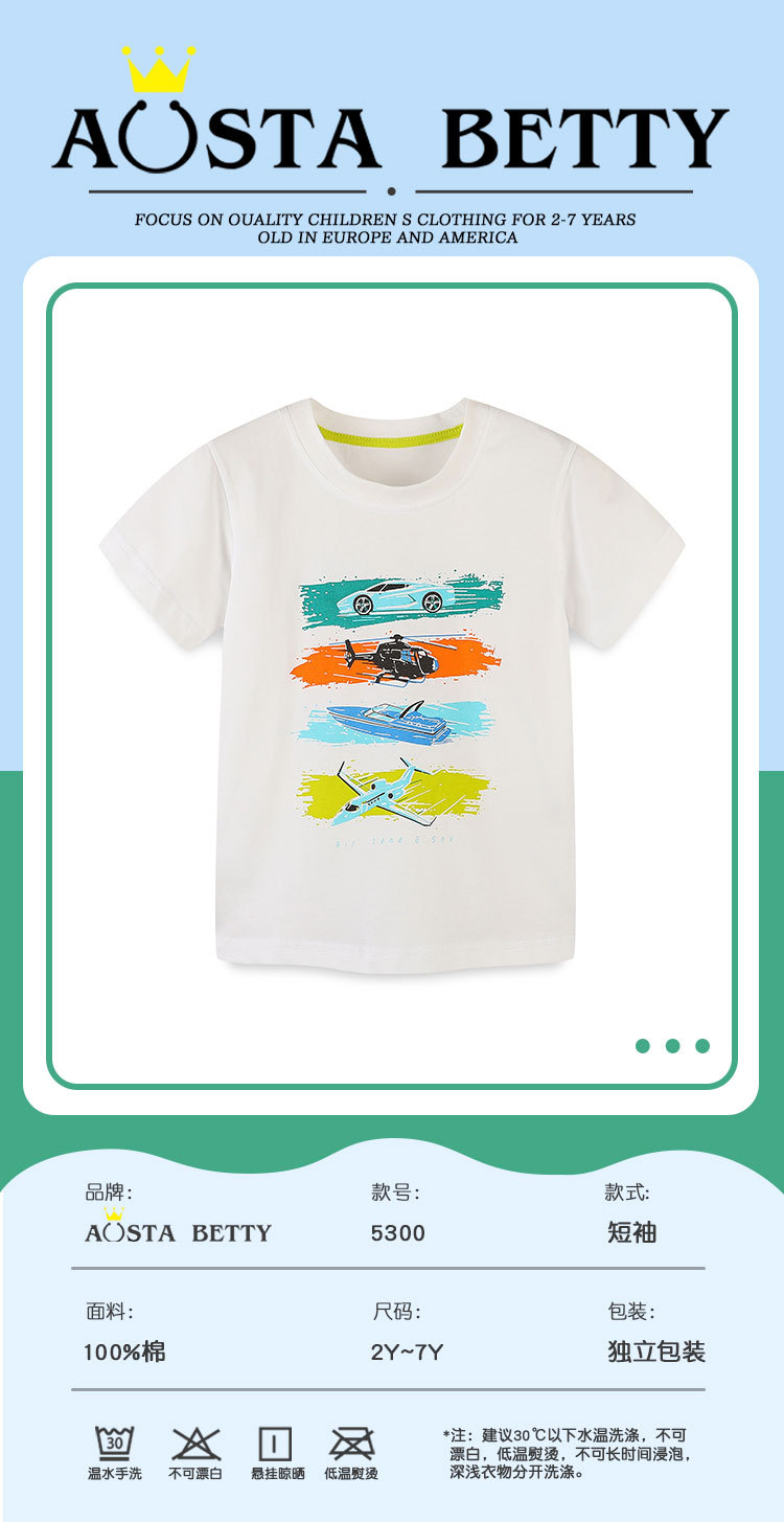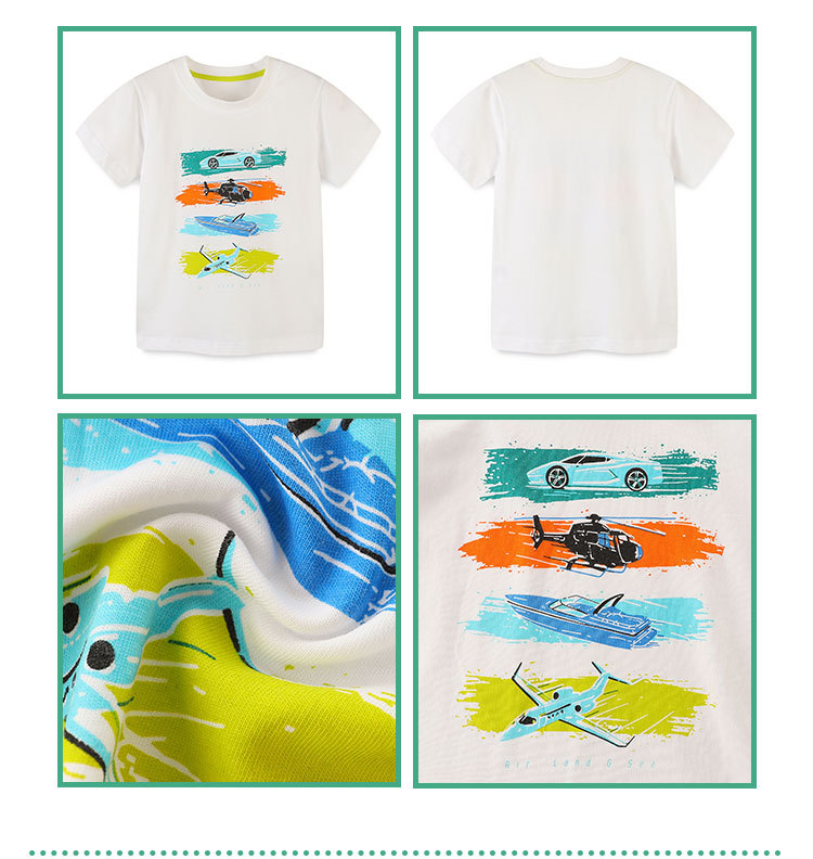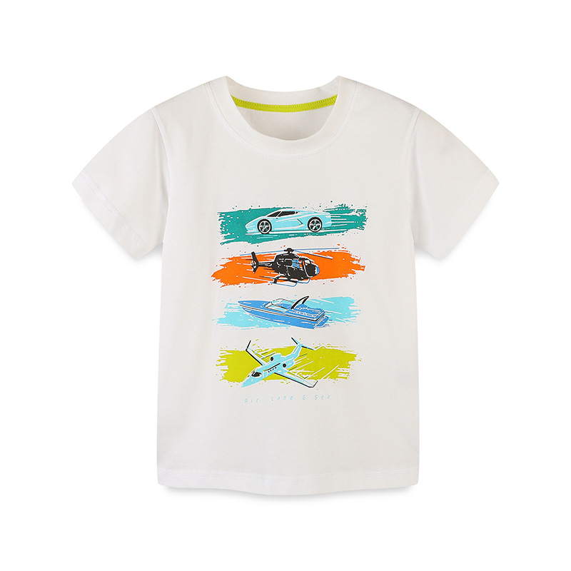 공장 직접 판매 여름 새로운 반팔 소년 티셔츠 귀여운 오토바이 인쇄 둥근 목 상단 아기 풀오버스토어 가기