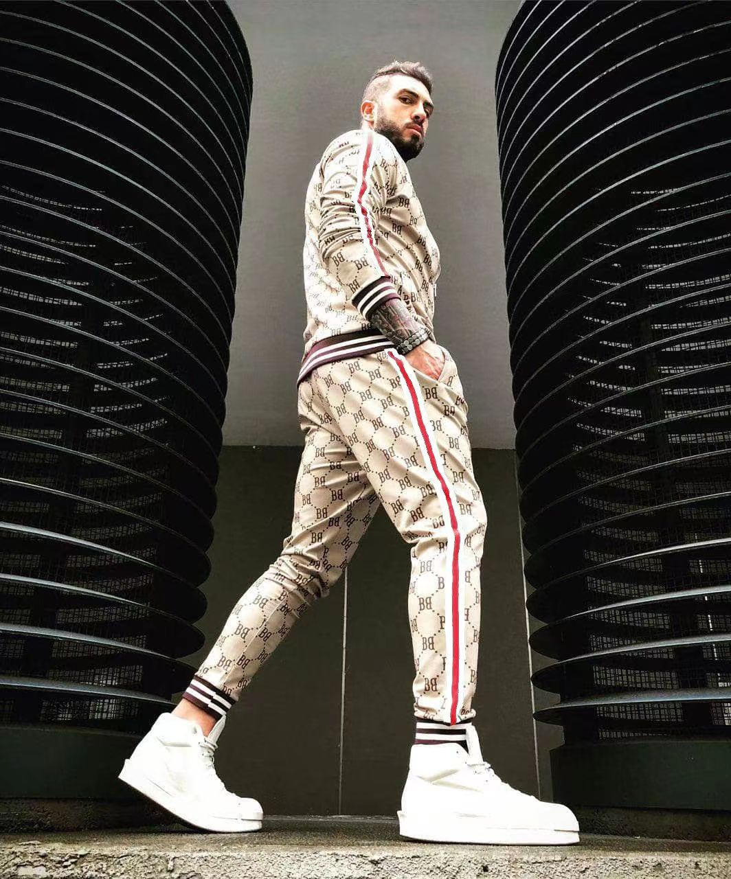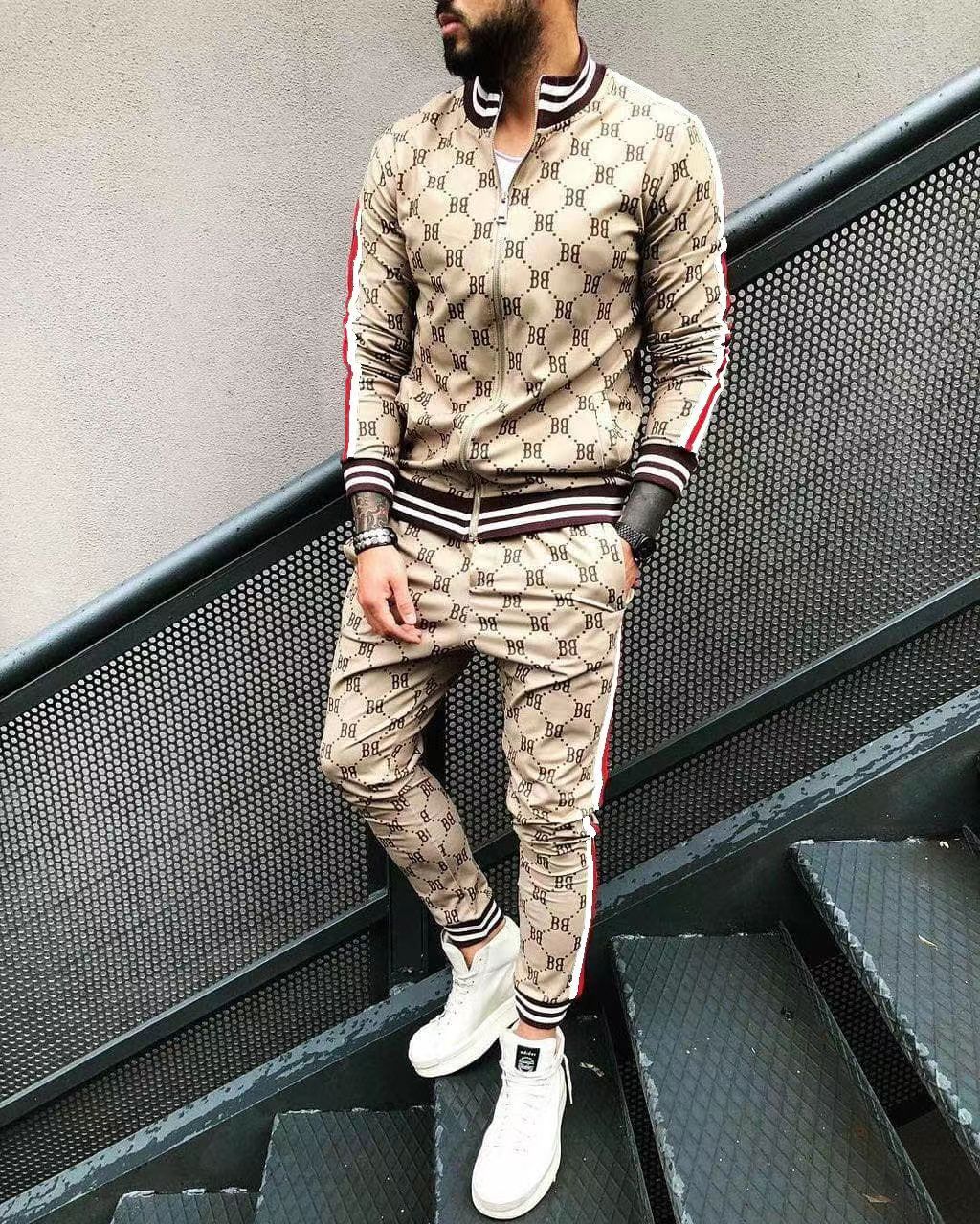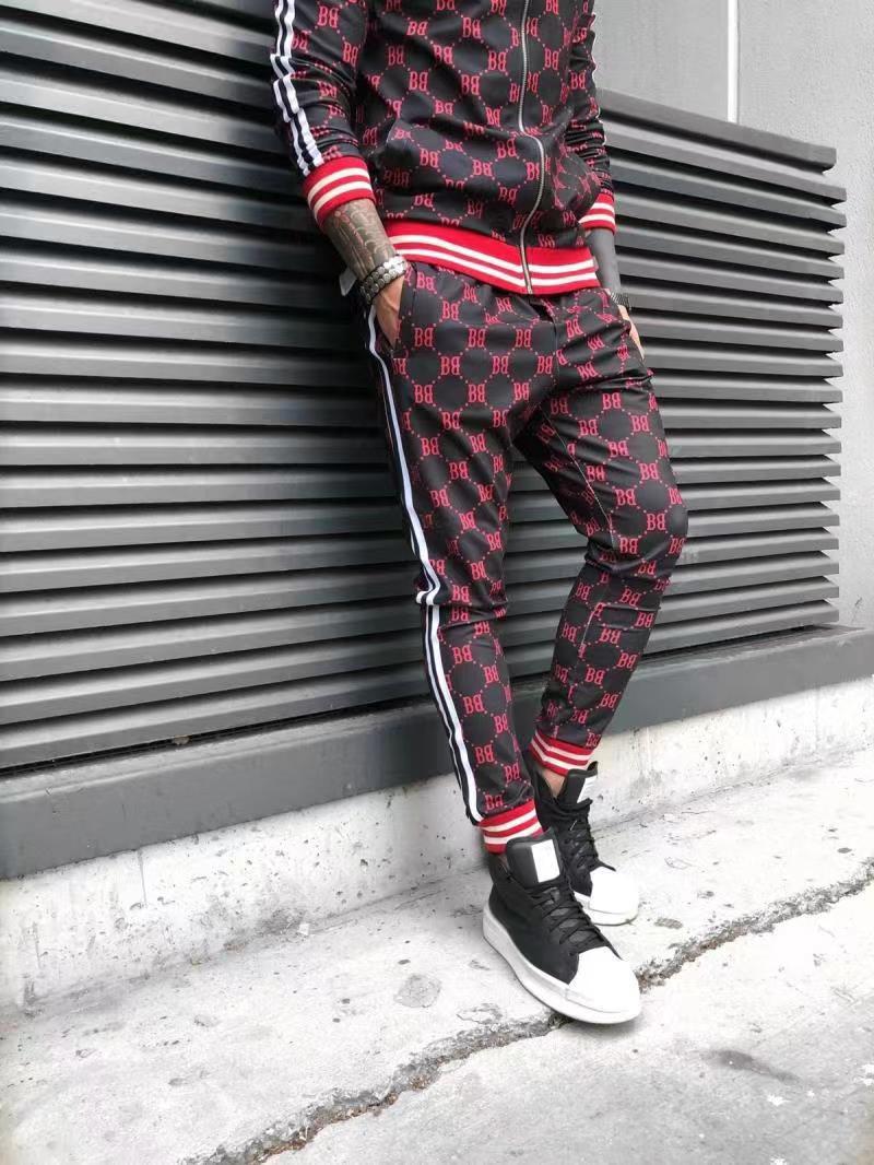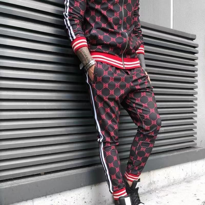 2024 신사 스포츠 세트 트렌드 3D 인쇄 피트니스 스웨터 슬림 지퍼 카디건 캐주얼 세트 남성스토어 가기