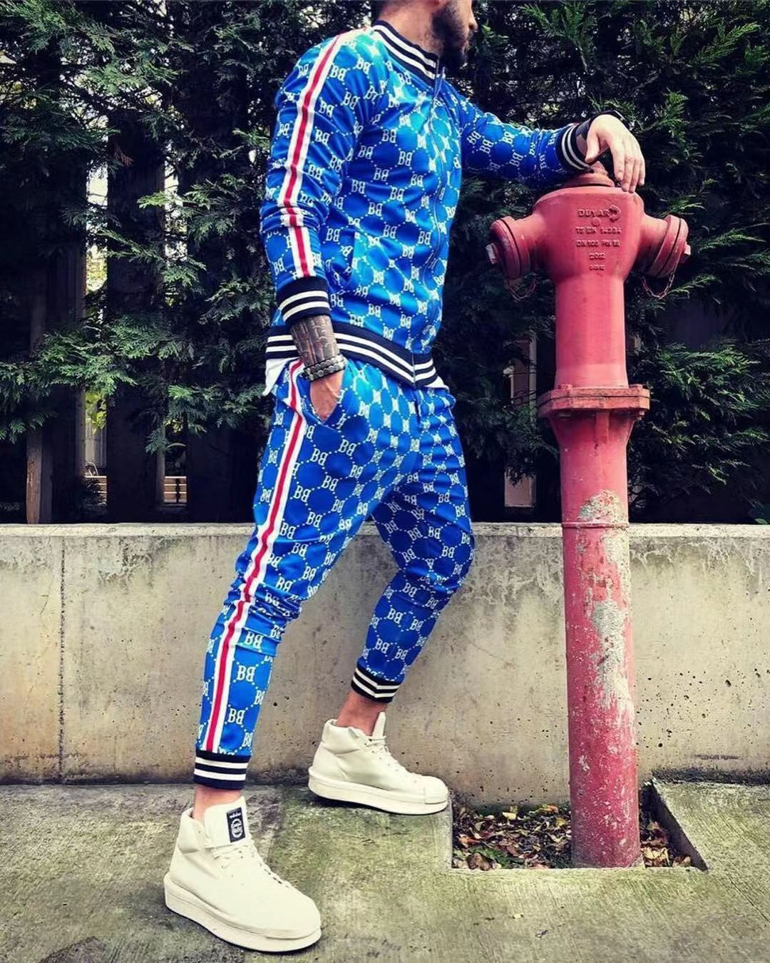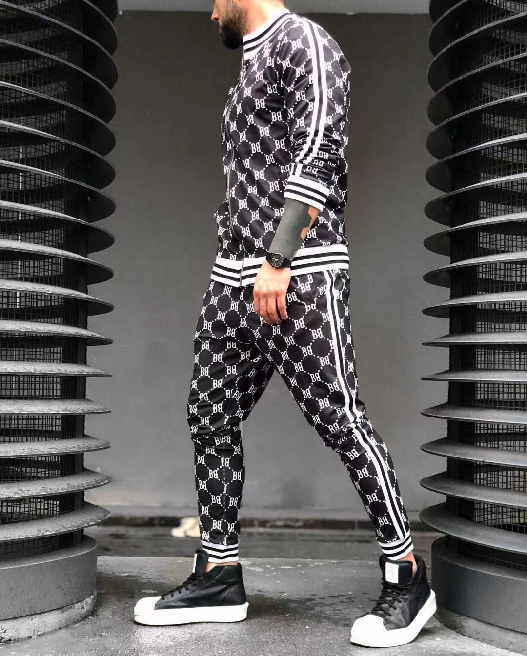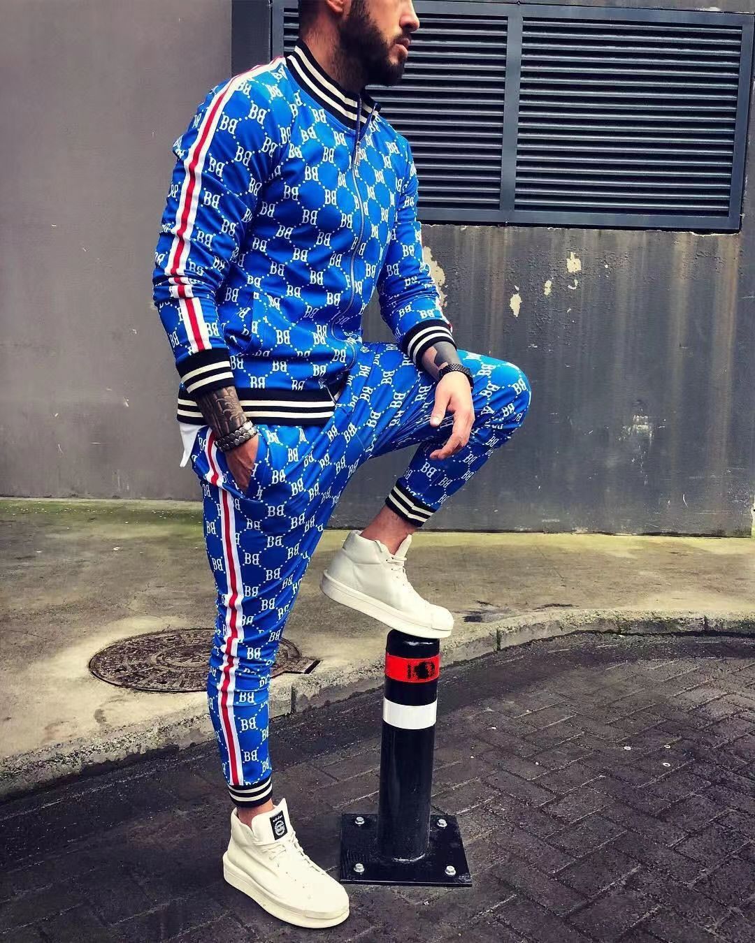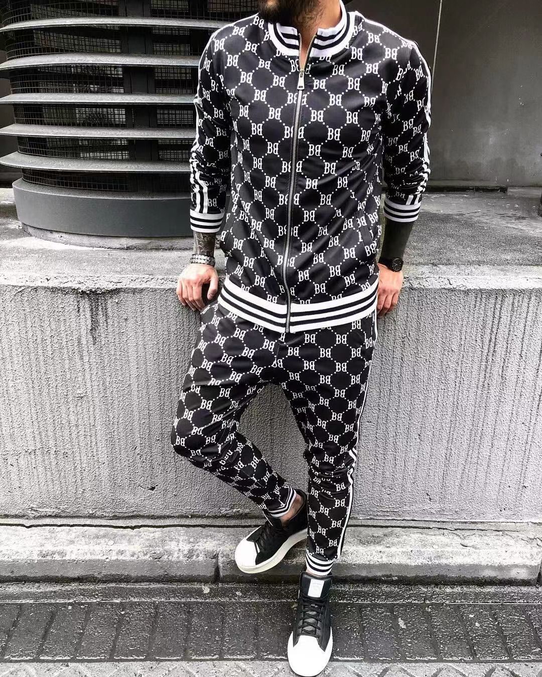2024 신사 스포츠 세트 트렌드 3D 인쇄 피트니스 스웨터 슬림 지퍼 카디건 캐주얼 세트 남성스토어 가기