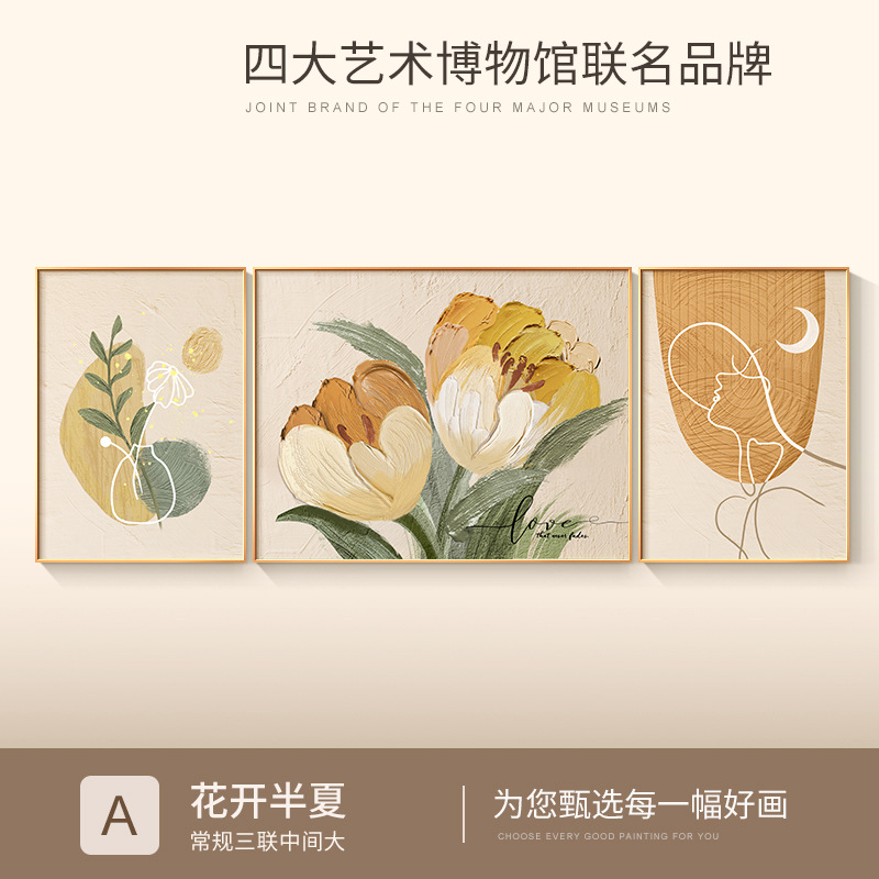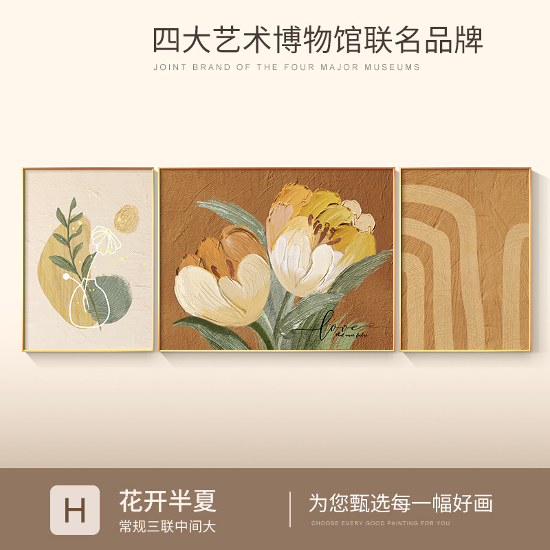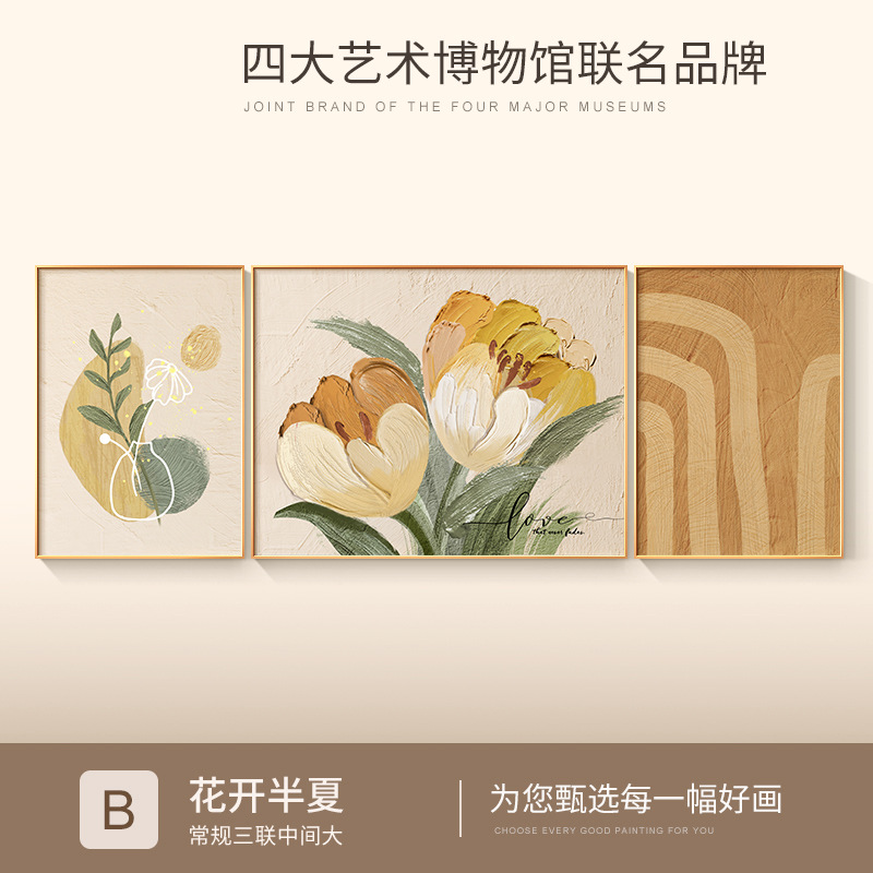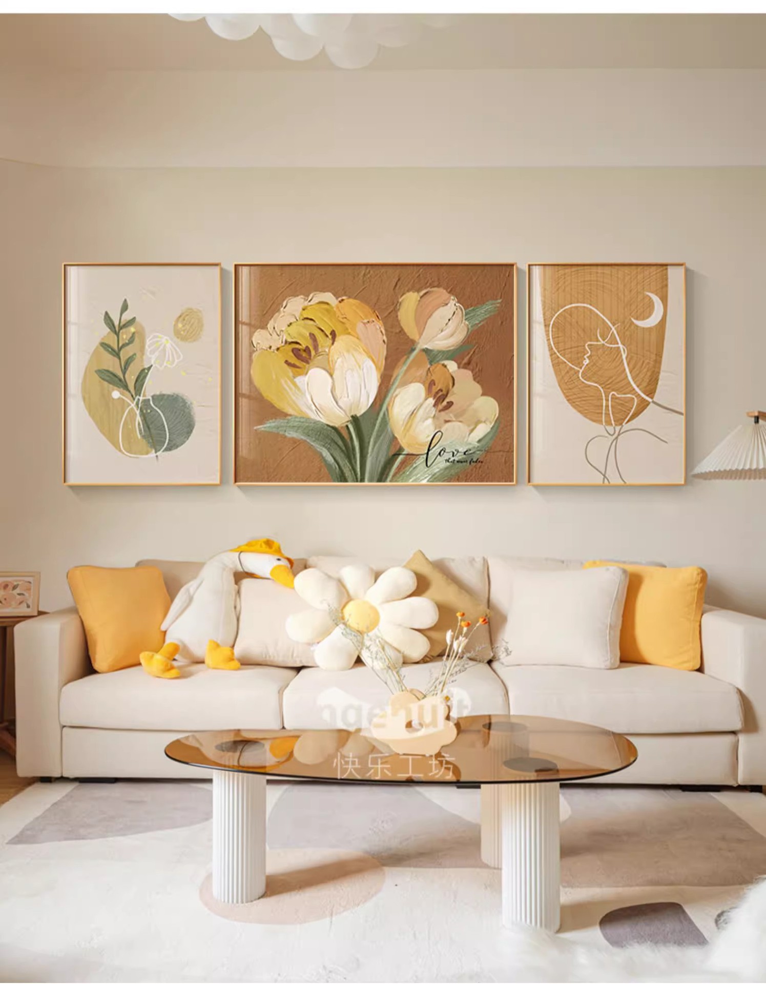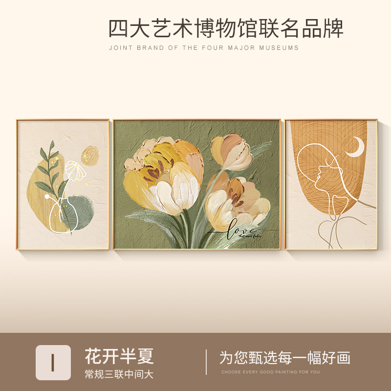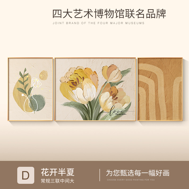 거실 장식 그림 튤립 소파 배경 벽 크림 스타일 교수형 그림 현대 간단한 빛 고급 고급 벽화스토어 가기