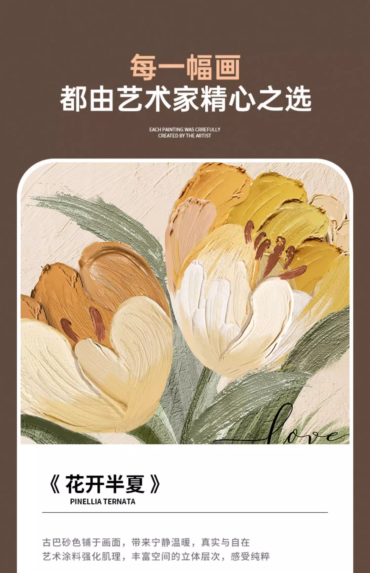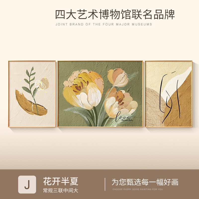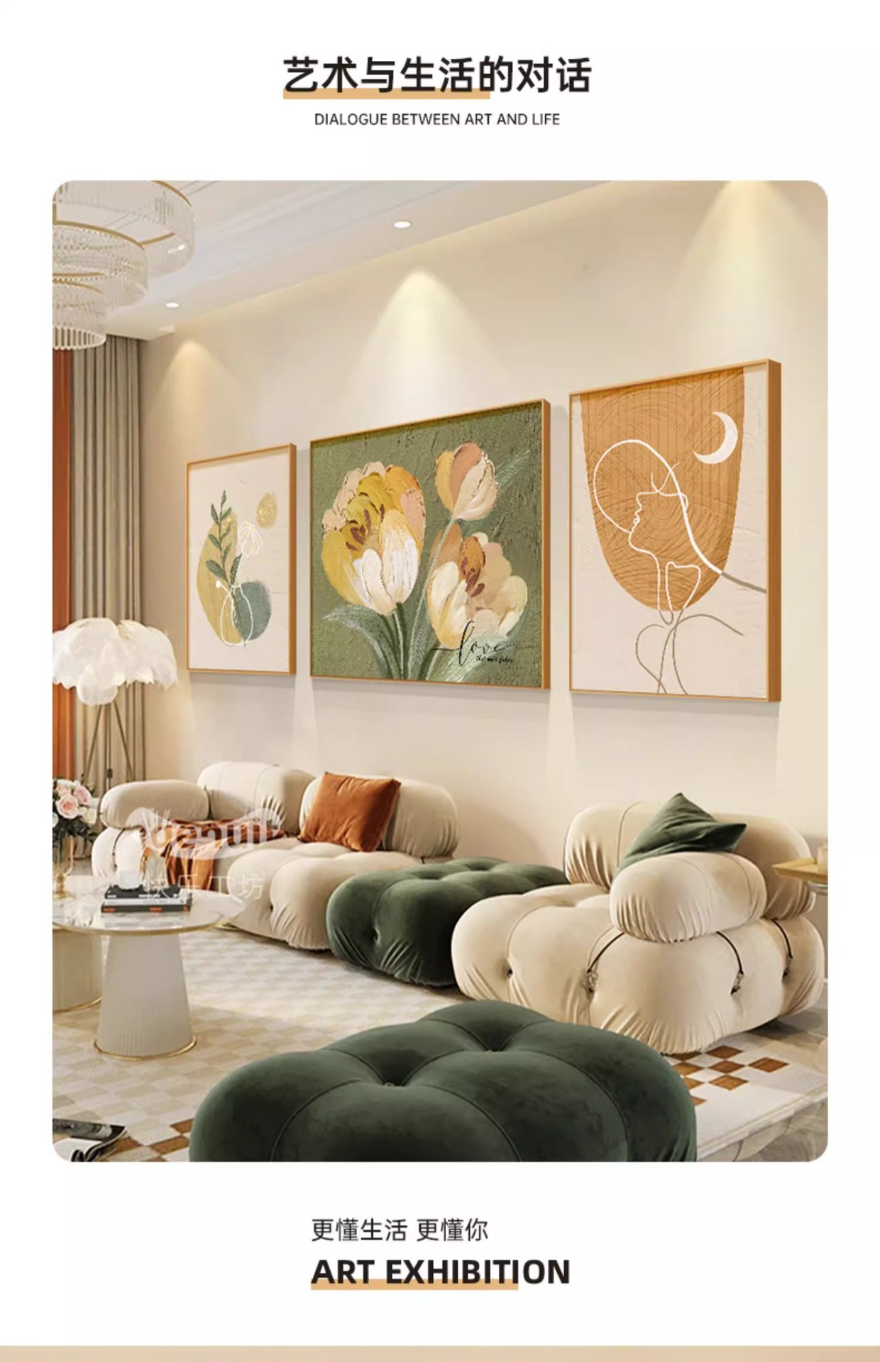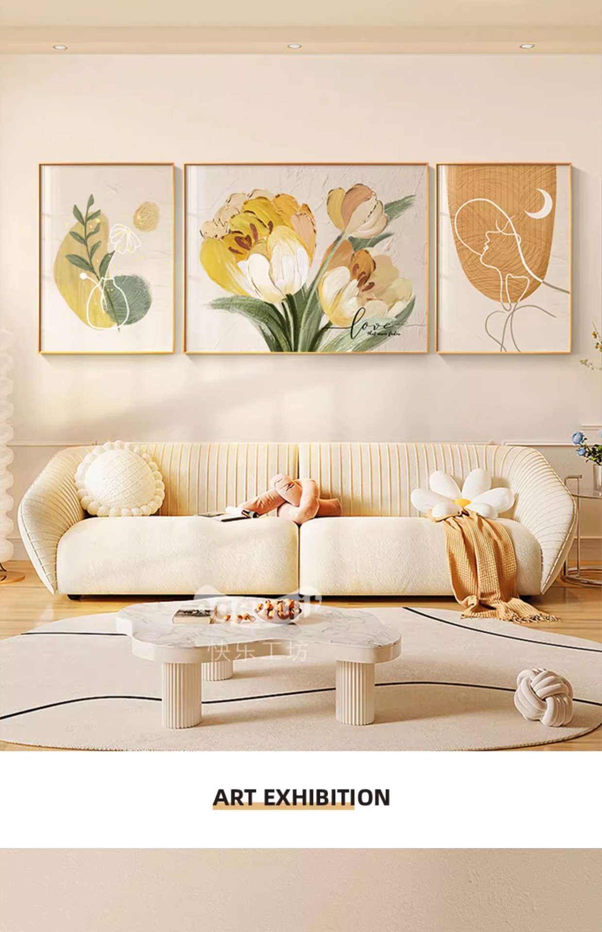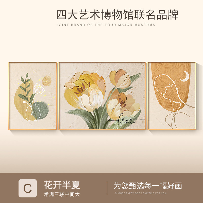 거실 장식 그림 튤립 소파 배경 벽 크림 스타일 교수형 그림 현대 간단한 빛 고급 고급 벽화스토어 가기
