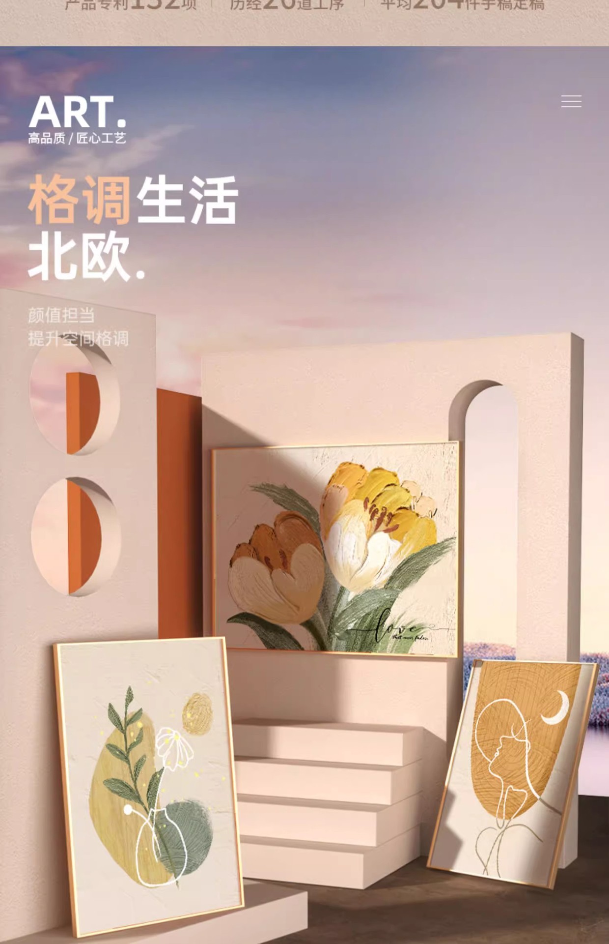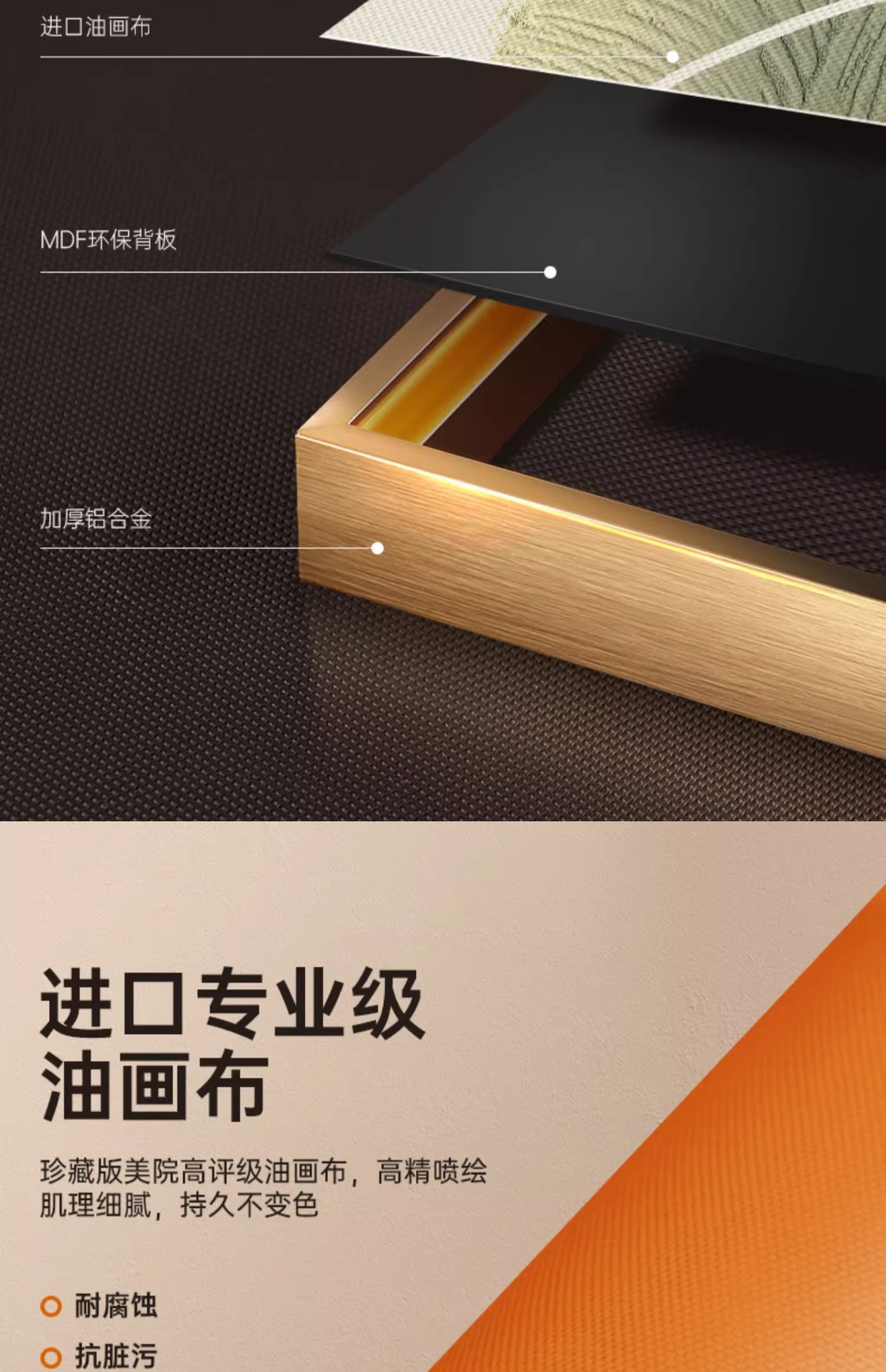 • 양면 50*70 + 중간 70*100CM 추천 3.0 m 소파에 적합 [알루미늄 합금 골드 프레임 + 캔버스]]