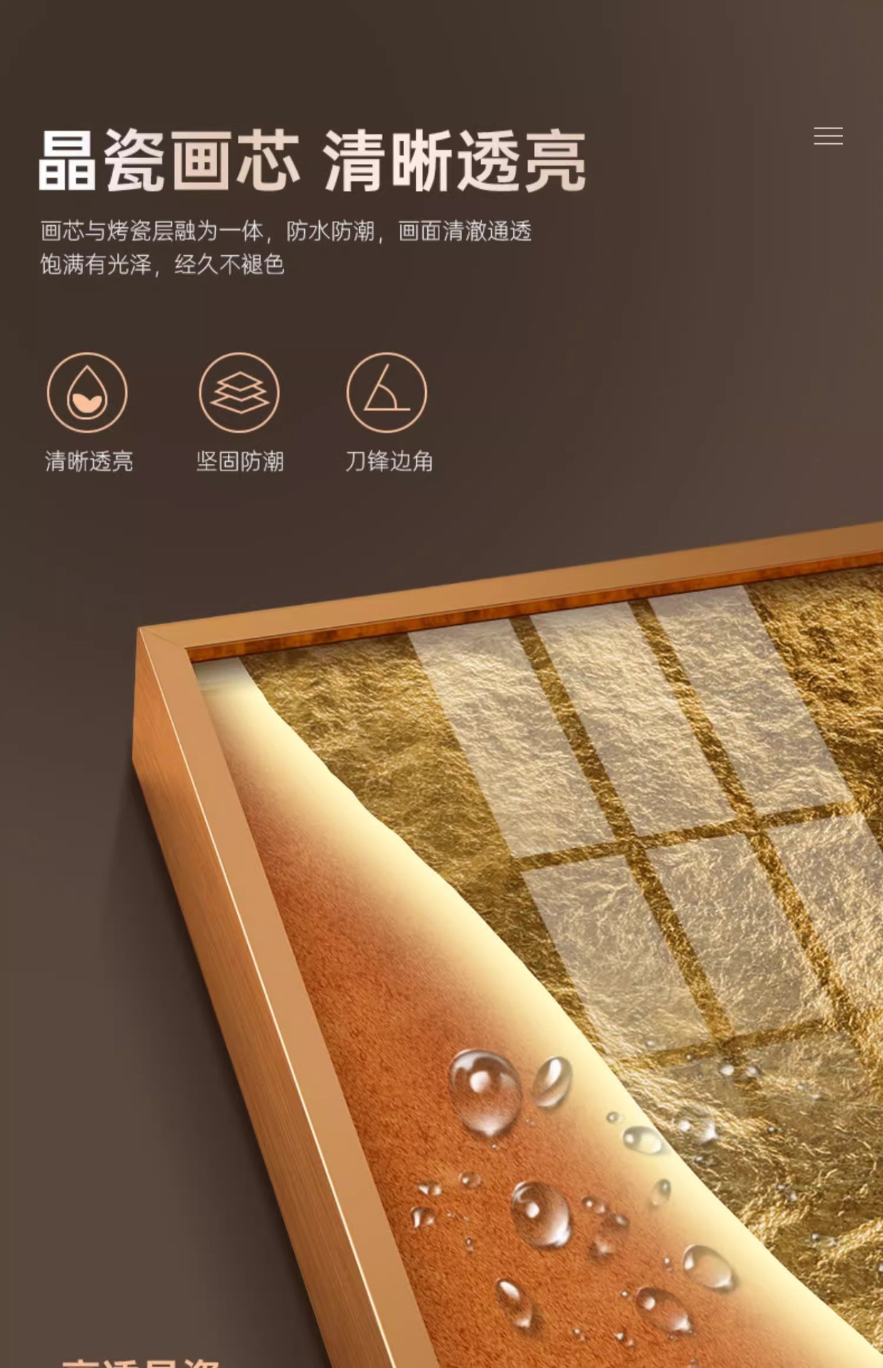• 양면 50*70 + 중간 70*100CM 추천 3.0 m 소파에 적합 [알루미늄 합금 골드 프레임 + 크리스탈 도자기 표면]]