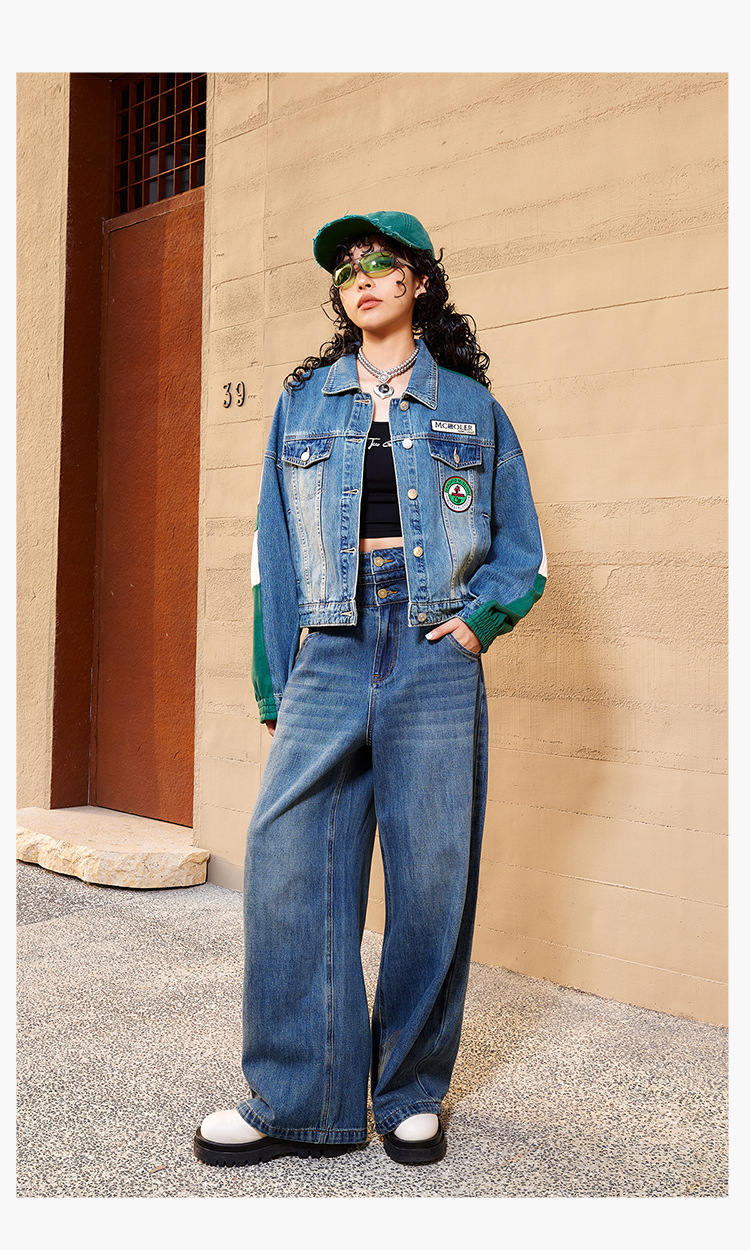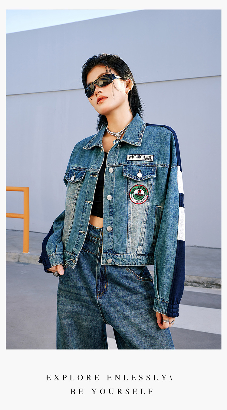 특가 148위안, 반품 불가, 토구 아메리칸 스타일 스플라이스 데님 재킷 여성용 가을 루즈핏 캐주얼 재킷 트렌디 인스