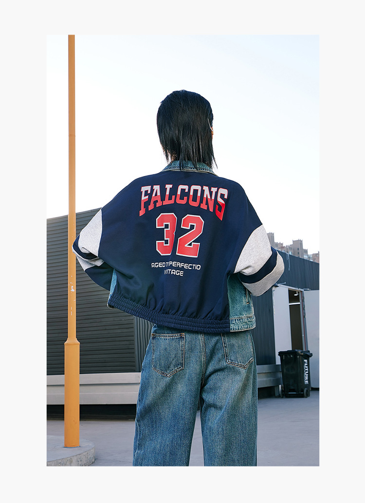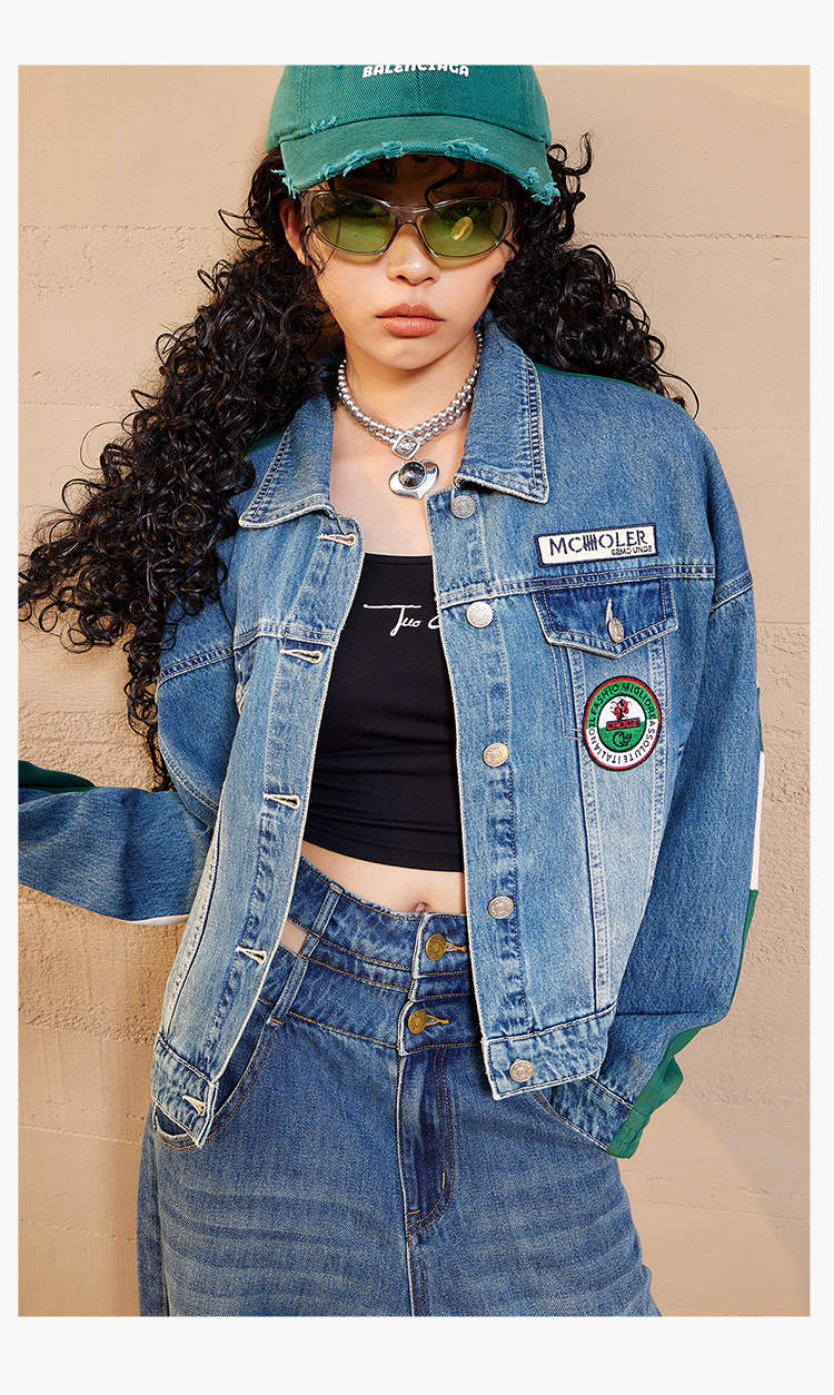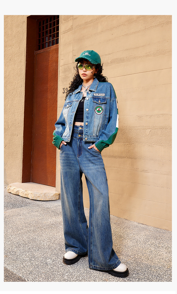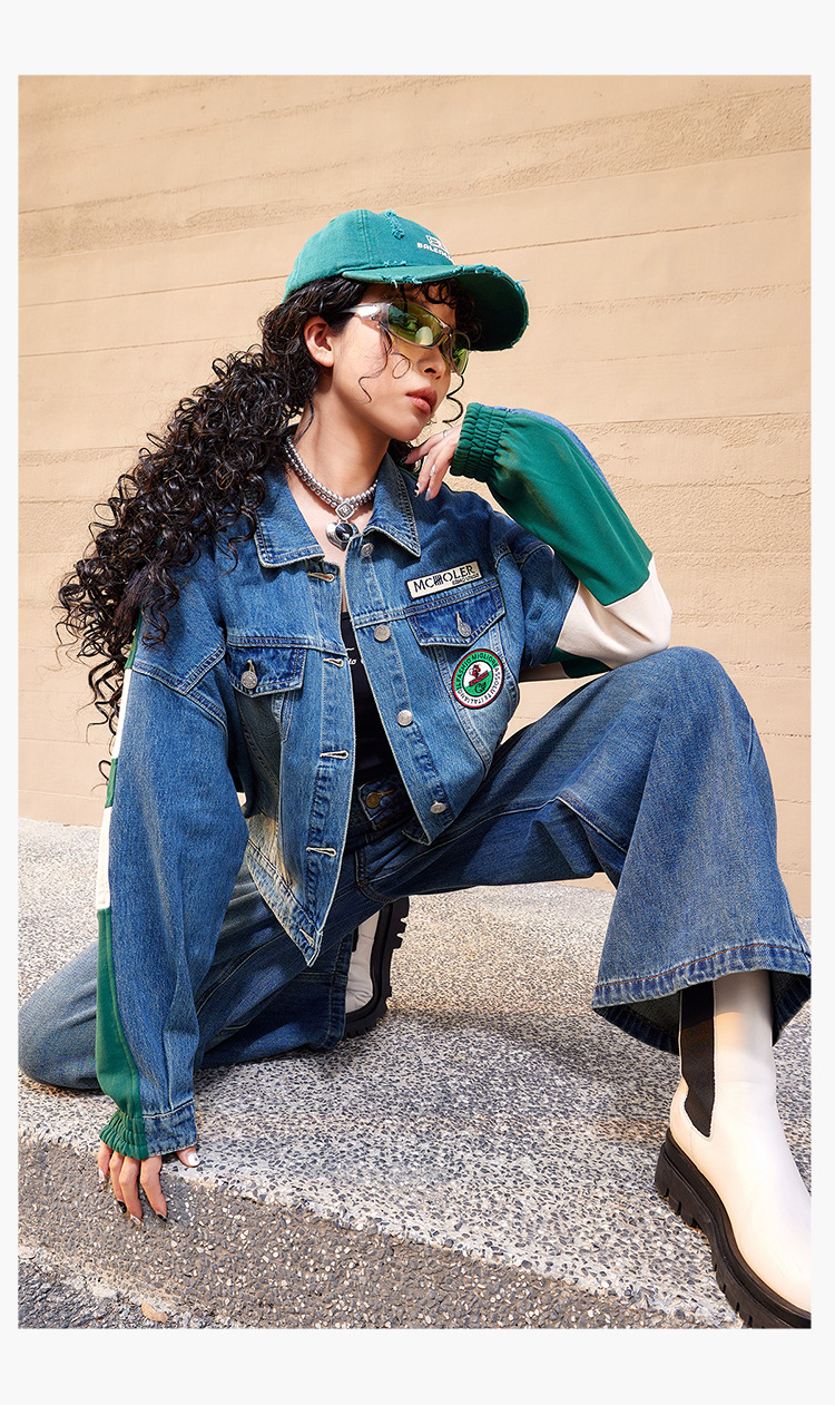 특가 148위안, 반품 불가, 토구 아메리칸 스타일 스플라이스 데님 재킷 여성용 가을 루즈핏 캐주얼 재킷 트렌디 인스스토어 가기