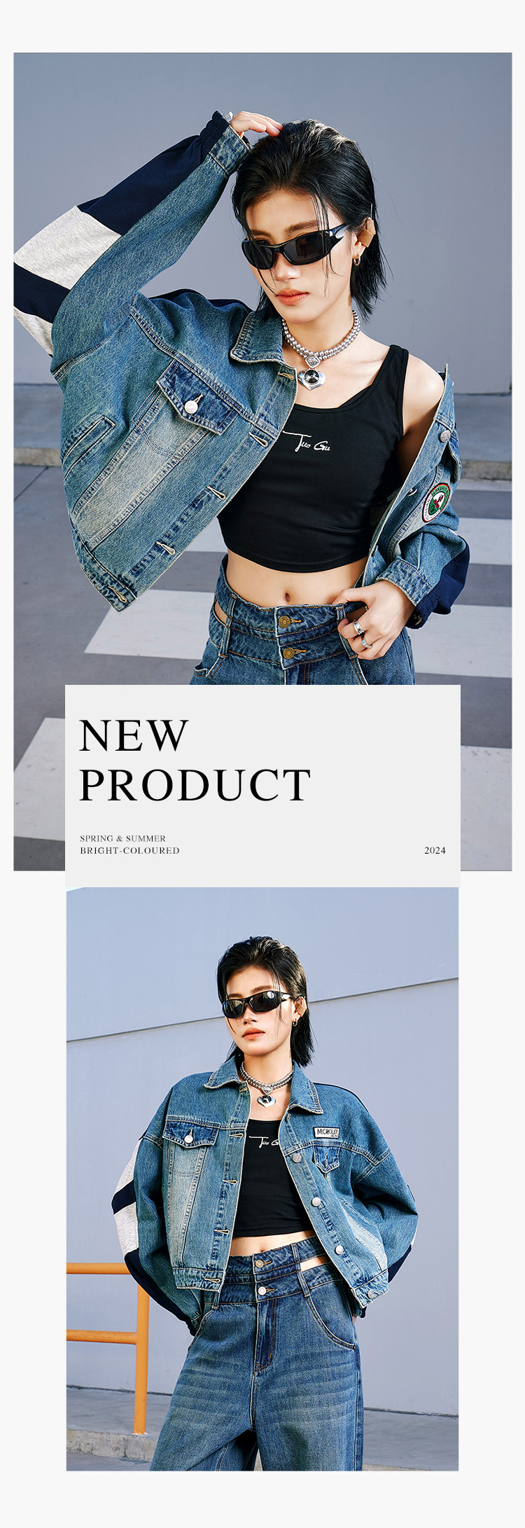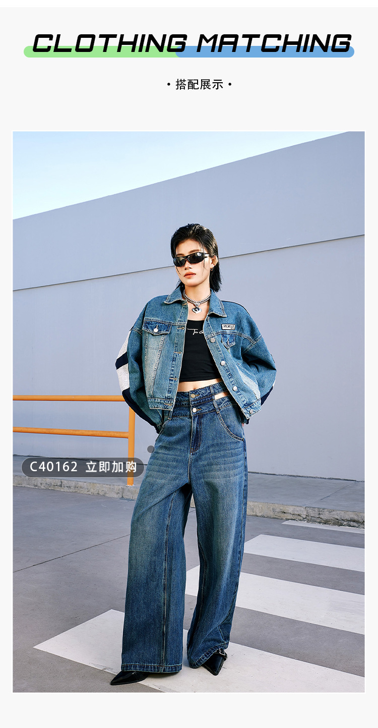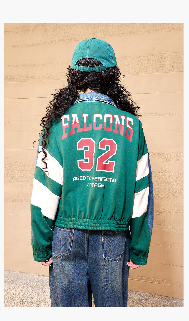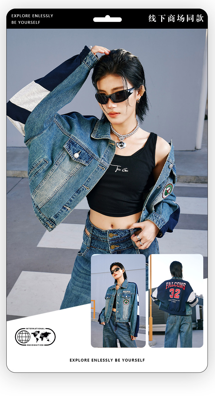 특가 148위안, 반품 불가, 토구 아메리칸 스타일 스플라이스 데님 재킷 여성용 가을 루즈핏 캐주얼 재킷 트렌디 인스스토어 가기