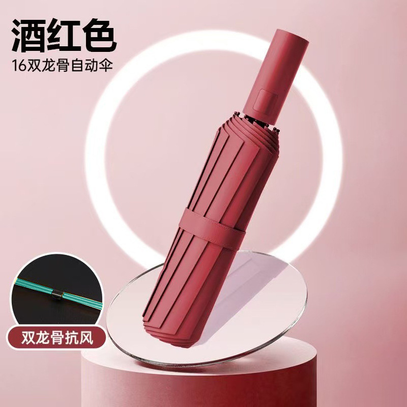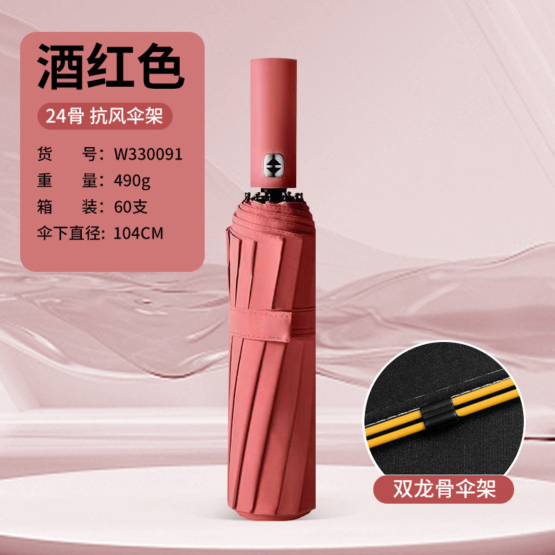 • [자동 플래그십 핸들 모델] 버건디 - 유리섬유 156 뼈 강화 + 완전 암막 두꺼운 비닐 비가 오나 눈이 오나