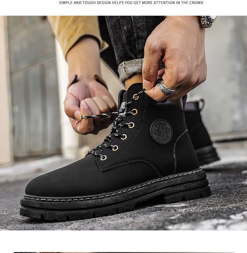 남성용 드롭 배송 마틴 부츠 가을, 겨울 하이 탑 작업복 빅 라운드 부츠 남성용 두꺼운 밑창 야외 방수 가죽 부츠 복고풍스토어 가기