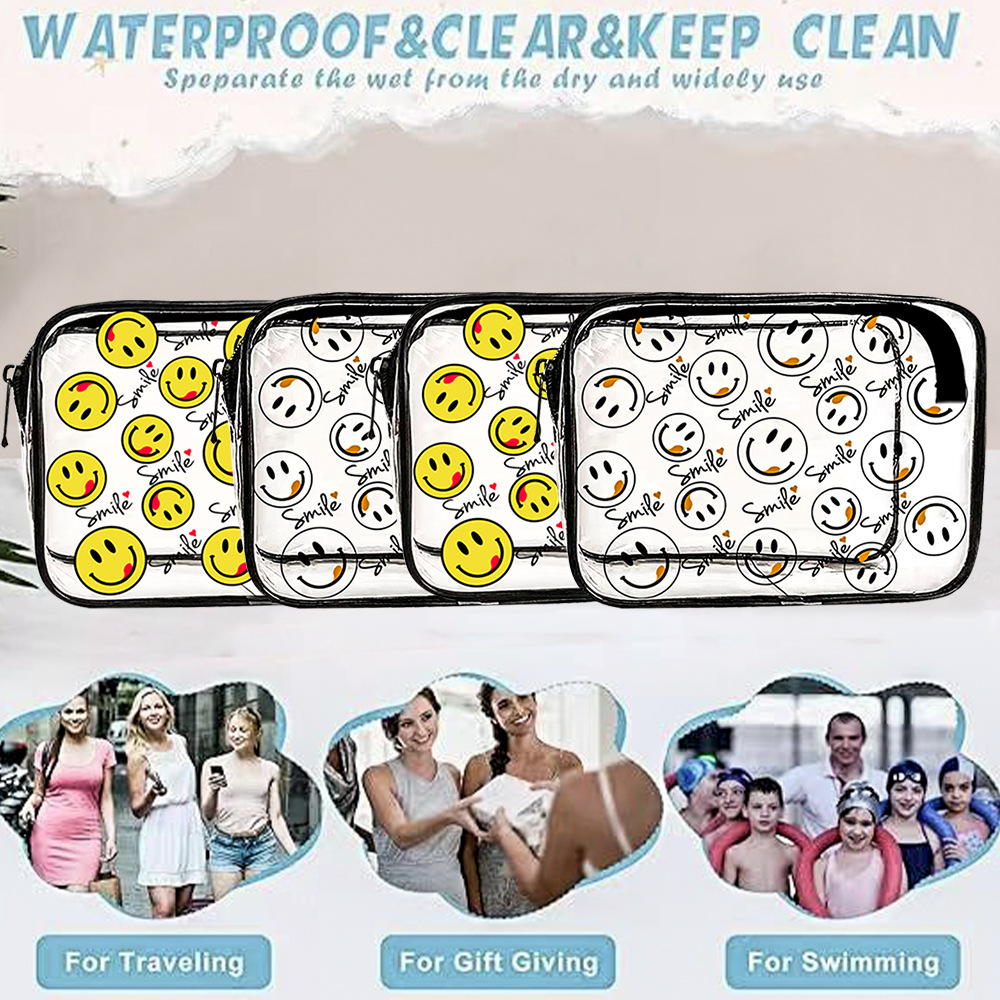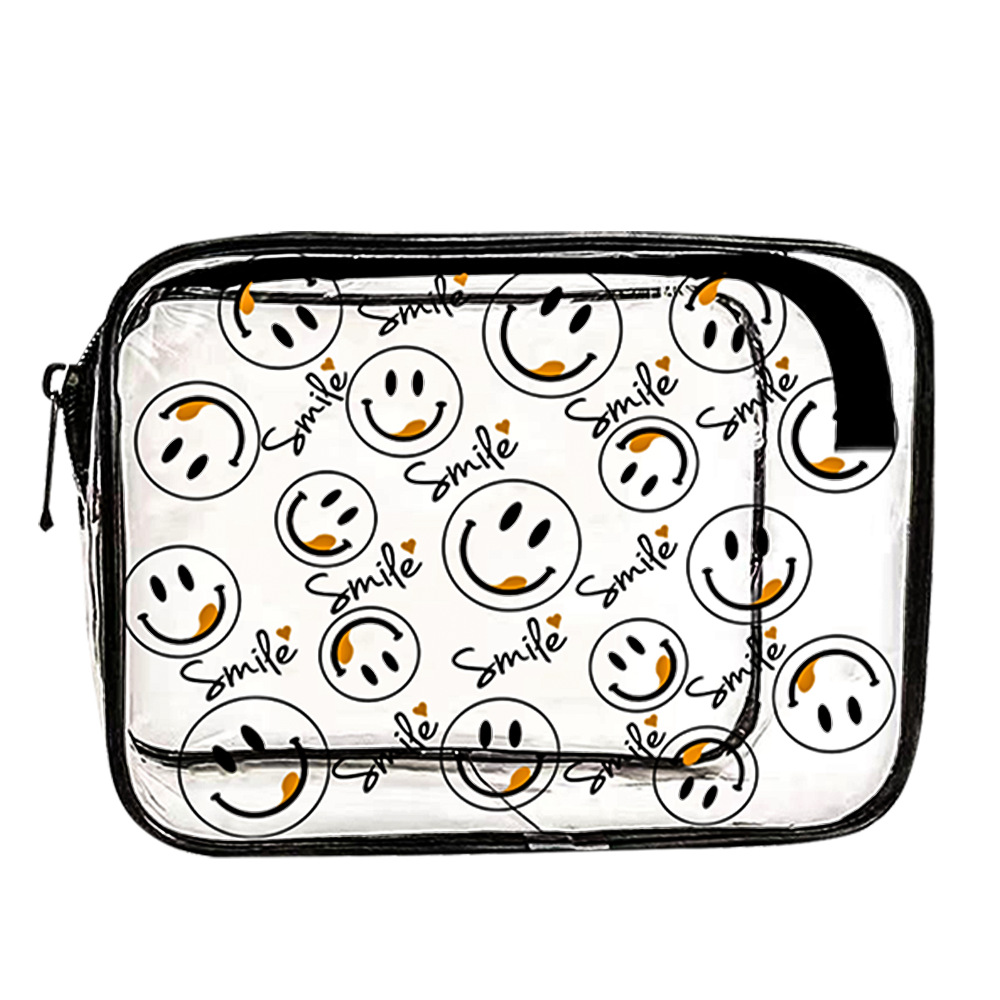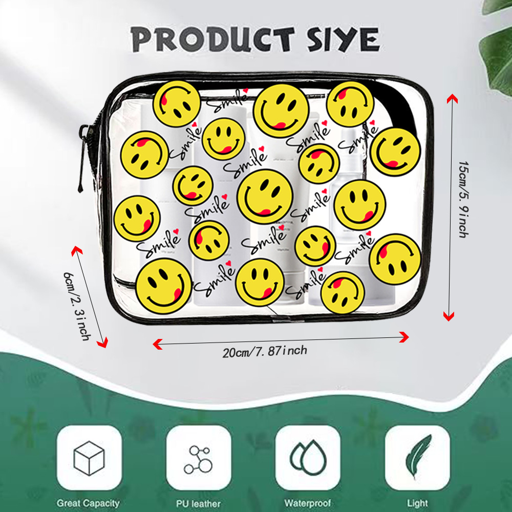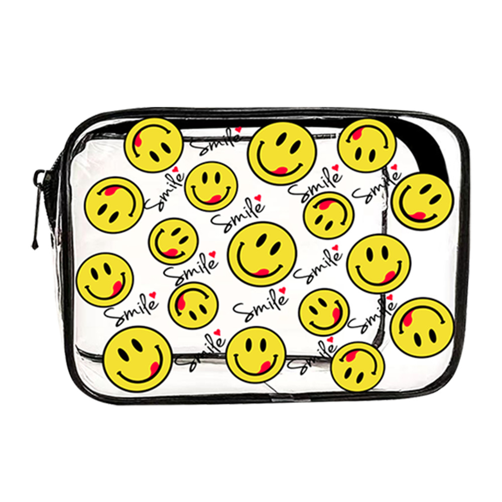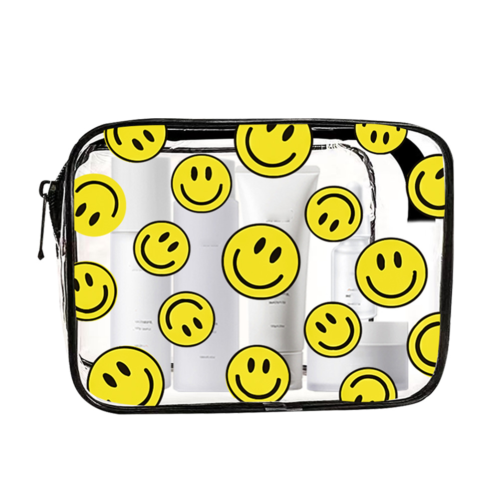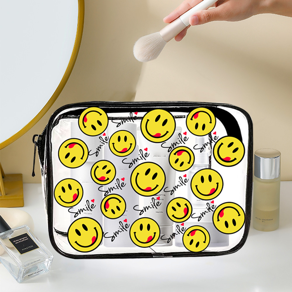 2023 새로운 웃는 얼굴 화장품 가방 PVC 투명 세척 가방 휴대용 화장품 가방 여행 보관 가방