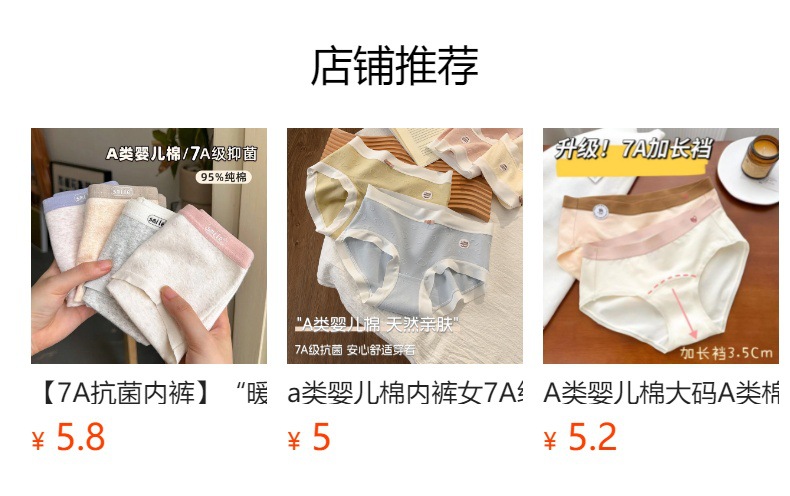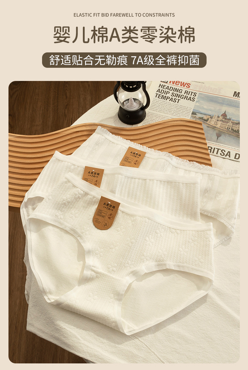 7A 등급 항균 클래스 유아면 미드 웨이스트 코튼 속옷 여성용 코튼 가랑이 염색되지 않은 코튼 순수 화이트 원면 소녀 속옷스토어 가기