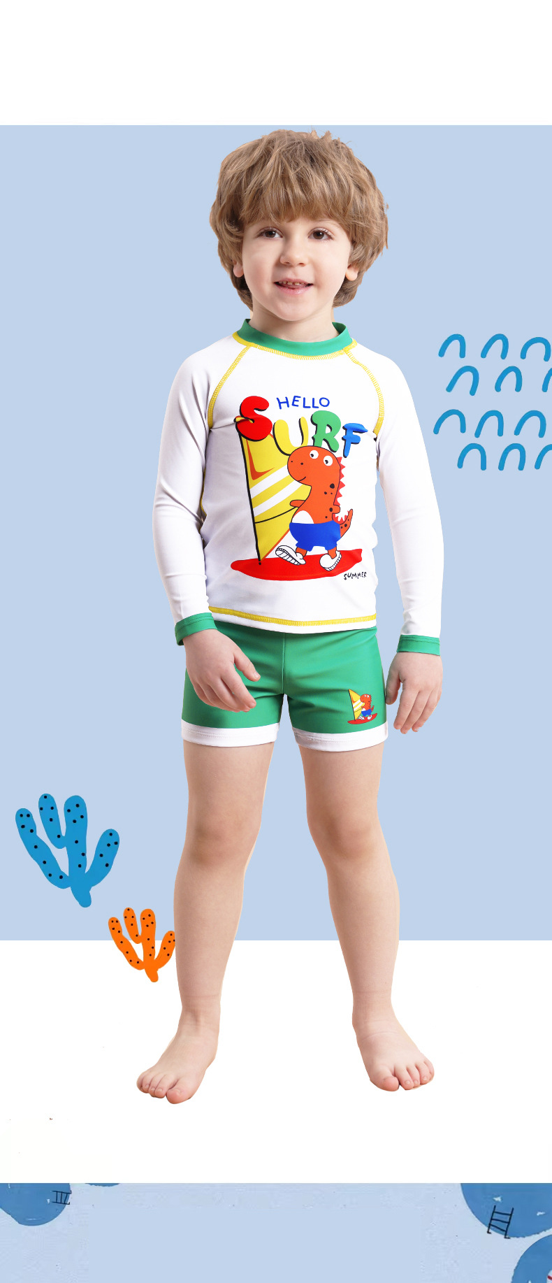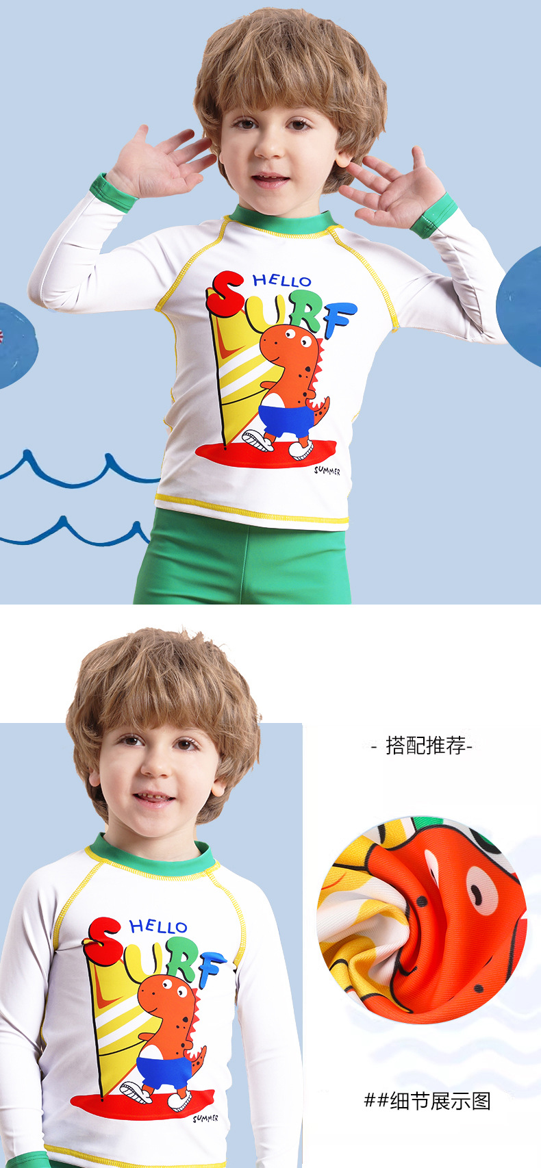 어린이 수영복 남아용 긴팔 수영복 2025 신상 만화 프린트 분리형 반팔 수영복 남아용 수영복스토어 가기