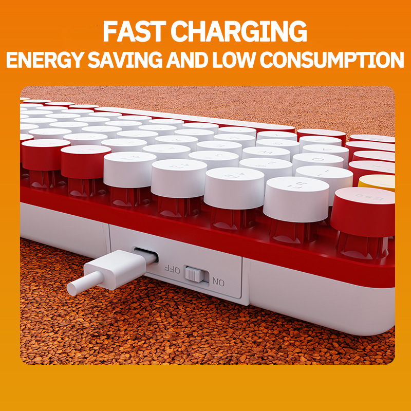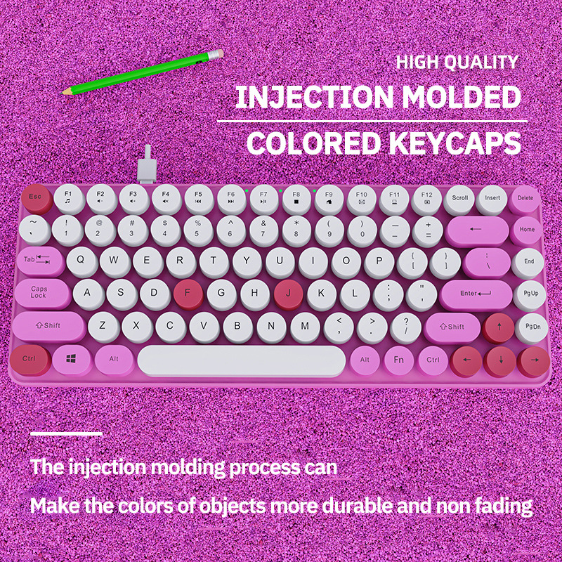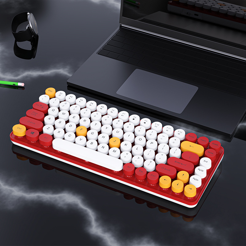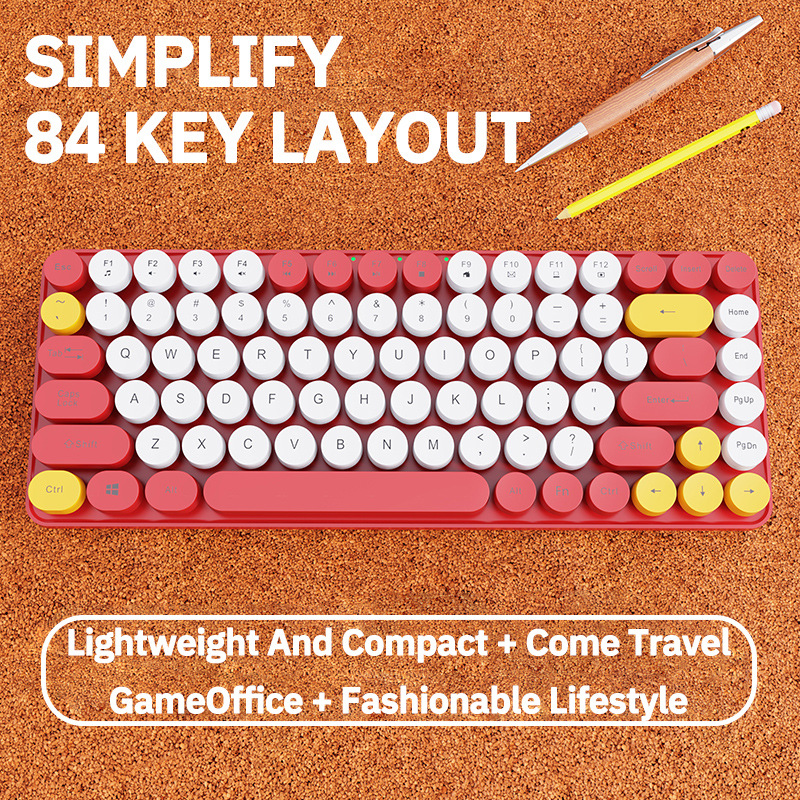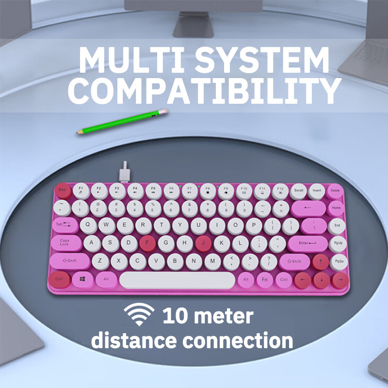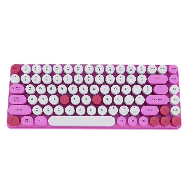 84 키 2.4g 무선 키보드 혼합 컬러 레트로 라운드 버튼 키보드 노트북 충전식 무선 키보드