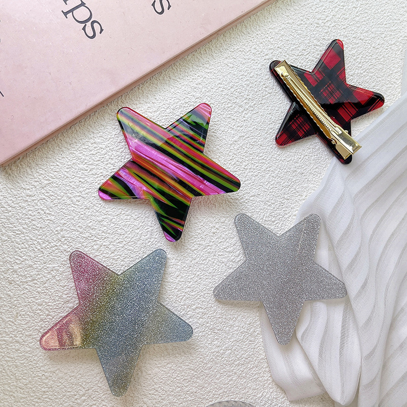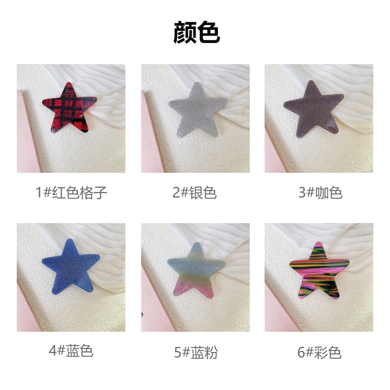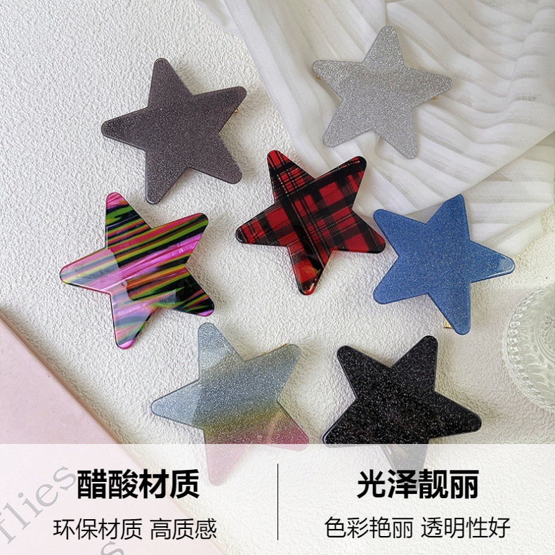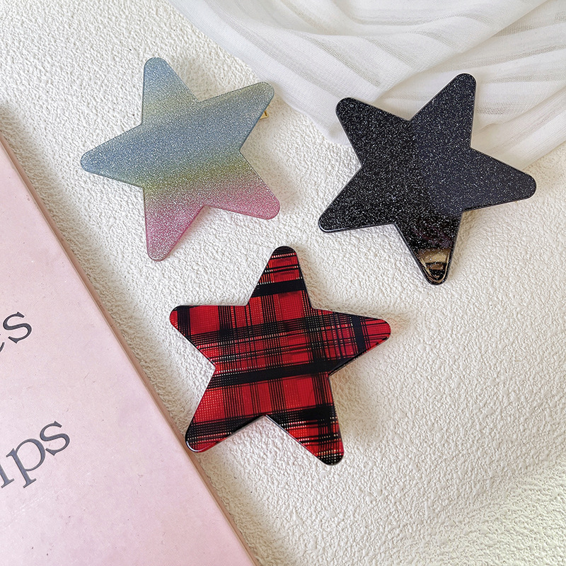 한국 스타일의 달콤한 시원한 소녀 다섯개 별 머리핀 패션 얇은 빛나는 스타 앞머리 사이드 클립 격자 무늬 클립 덕빌 클립