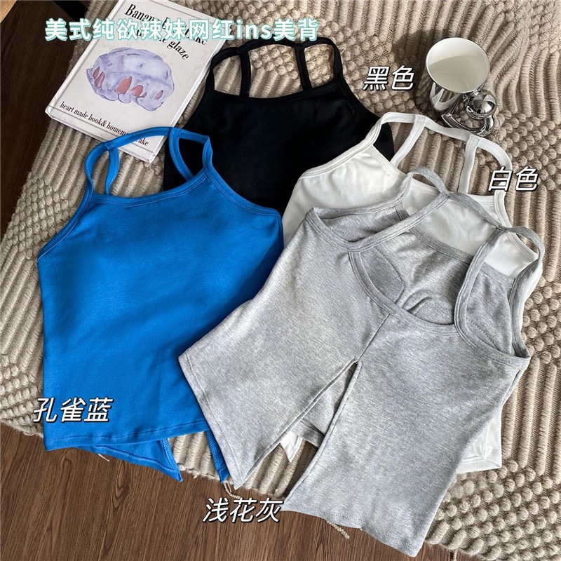 Spice Girls Split Cotton Small Camisole Vest Women's Summer New Backless Inner 입고 섹시한 짧은 민소매 탑