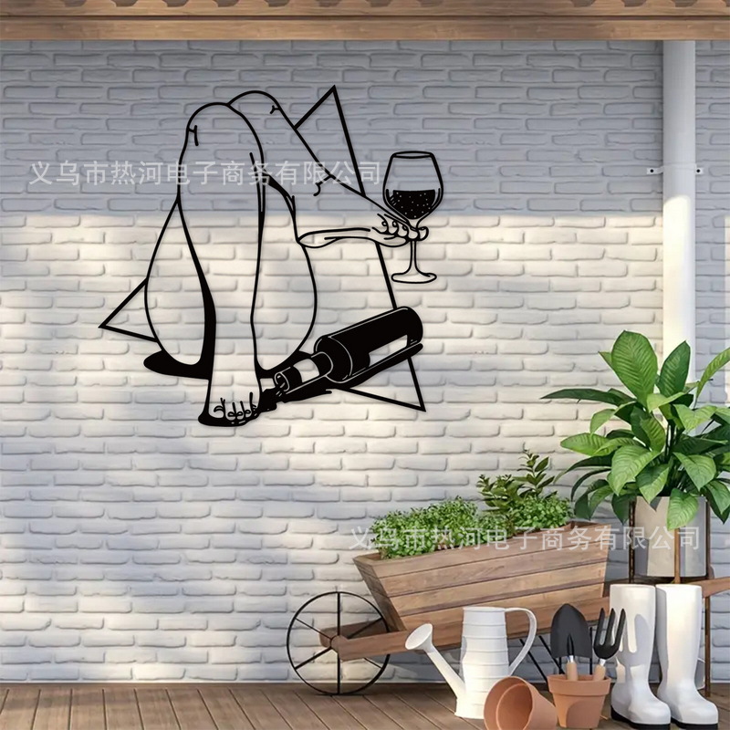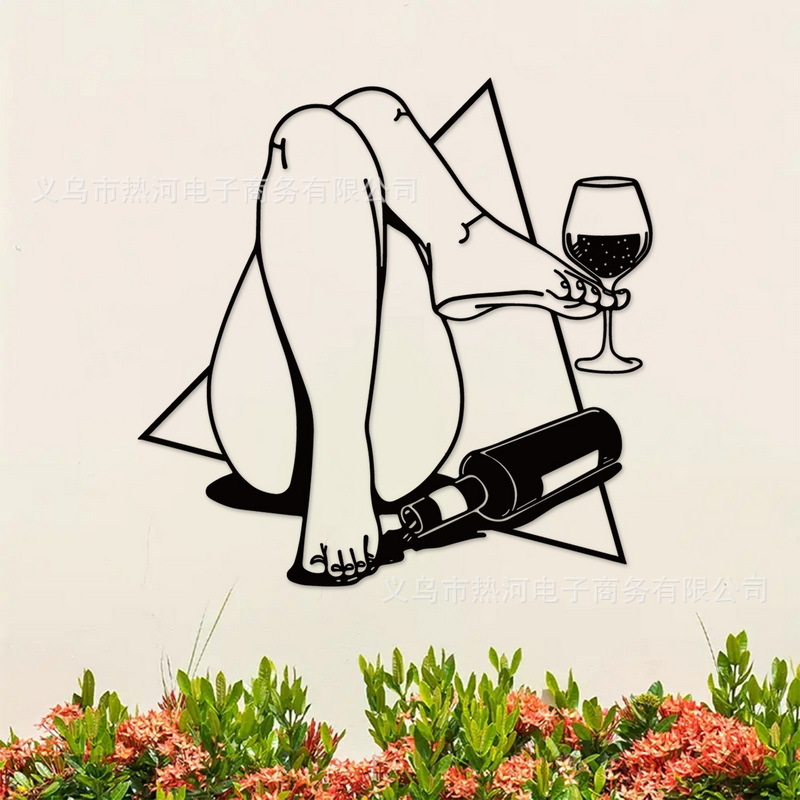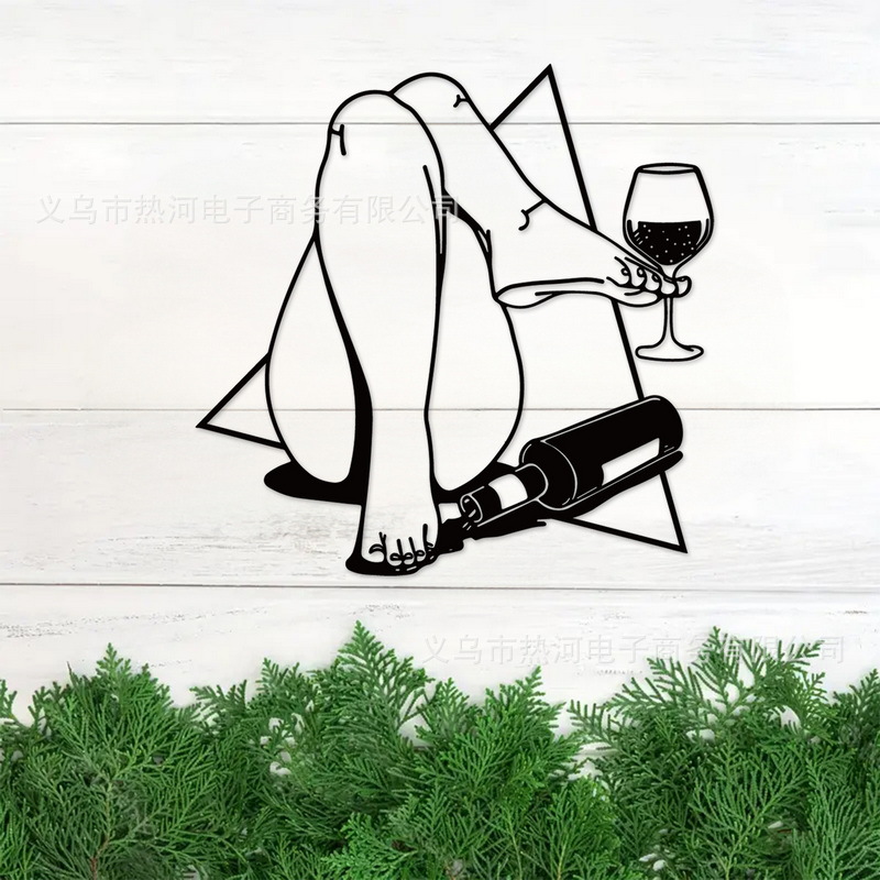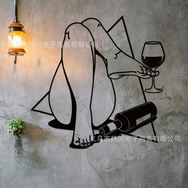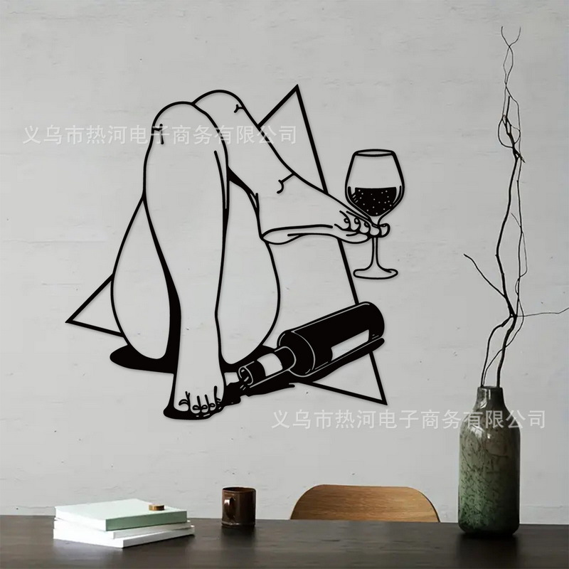 사이버 펑크 아트 와인 술꾼 금속 예술 여성 벽 예술 벽 걸이 홈 벽 장식