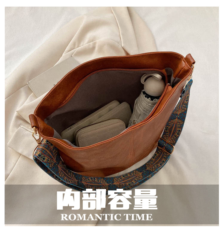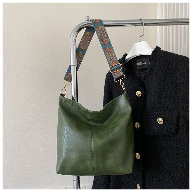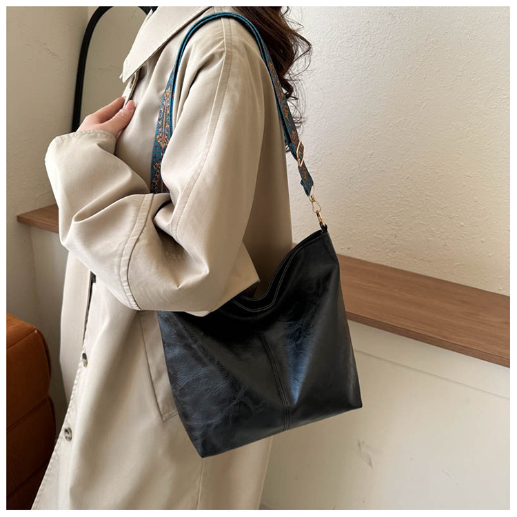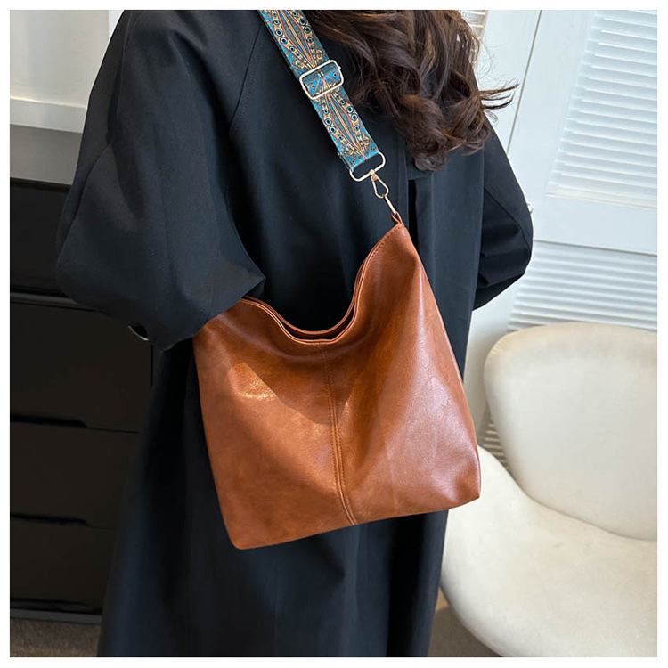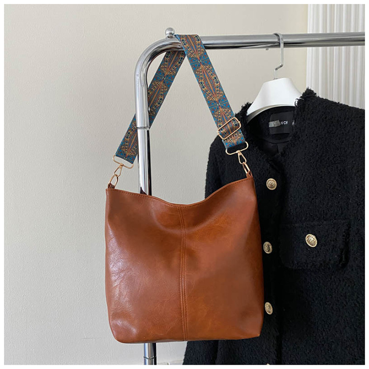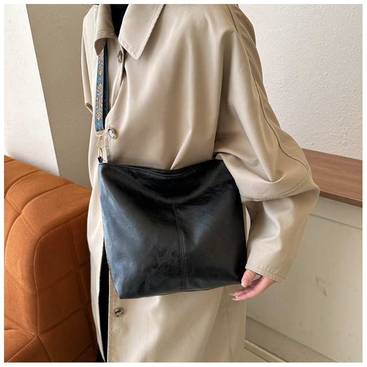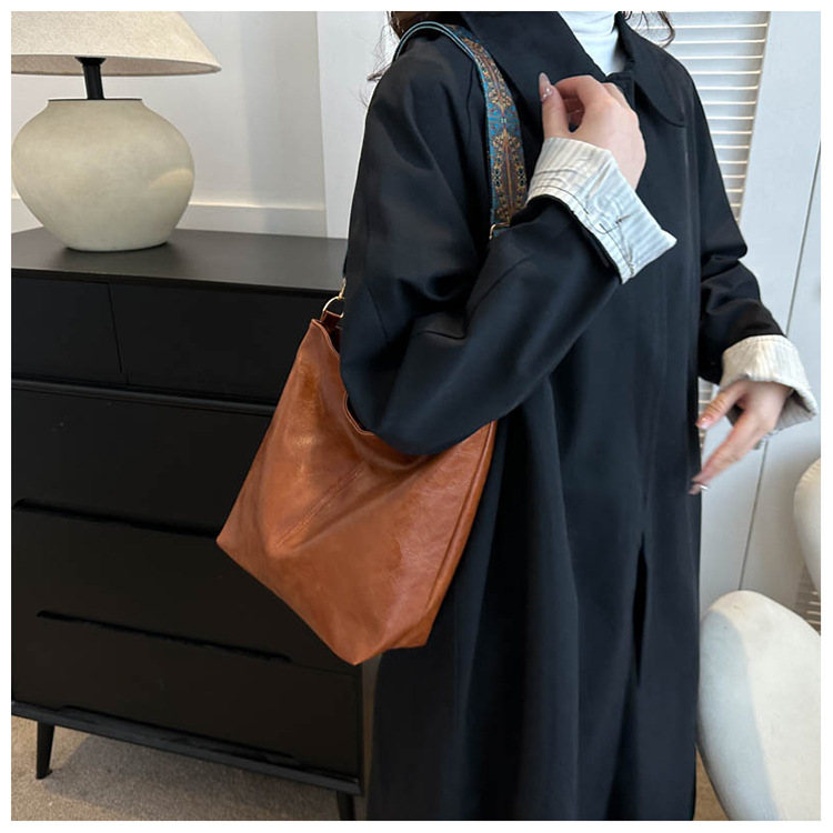 넓은 어깨 끈 대용량 가방 여성용 가방 통근 간단한 질감 버킷 가방 패션 Maillard 스타일 어깨 메신저 가방