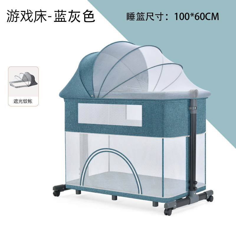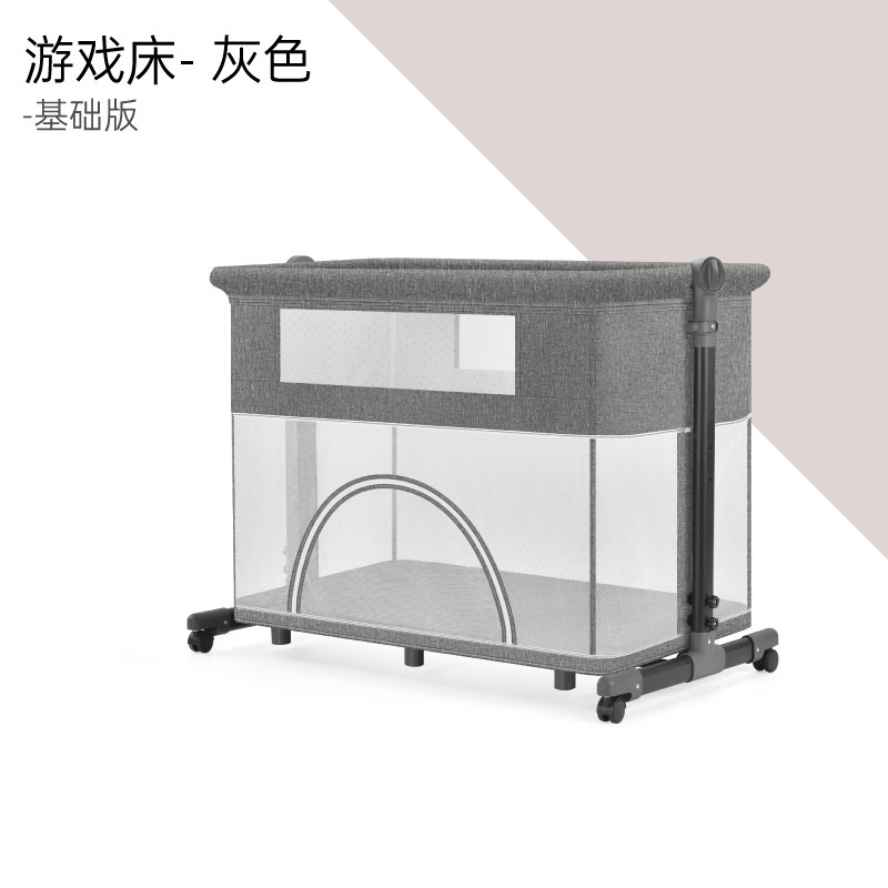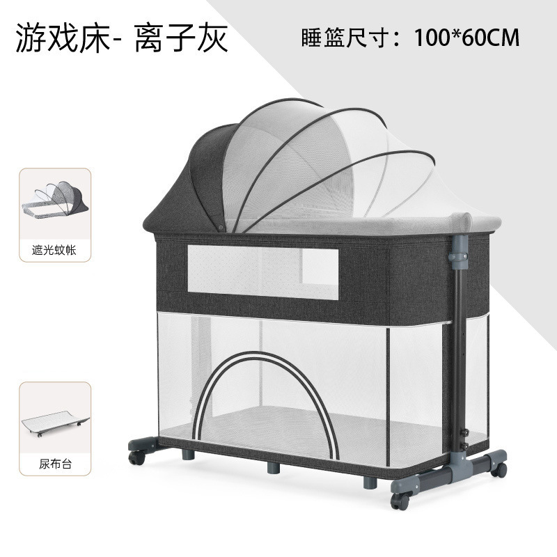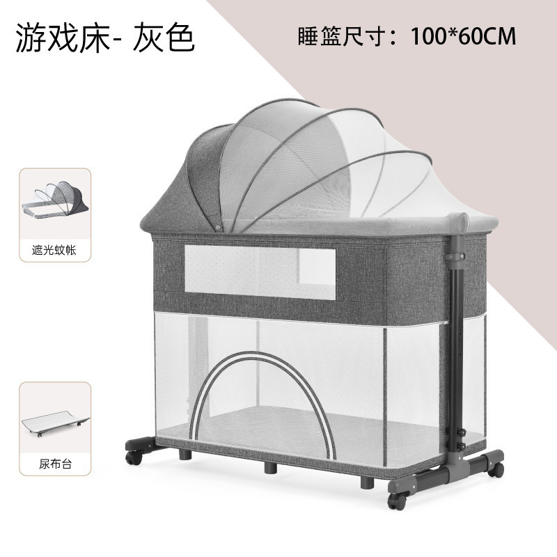 풀리 아기 게임 침대가있는 기저귀 테이블이있는 다기능 침대 옆 침대 이동식 휴대용 신생아 아기 침대스토어 가기