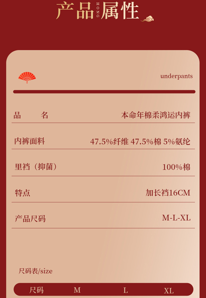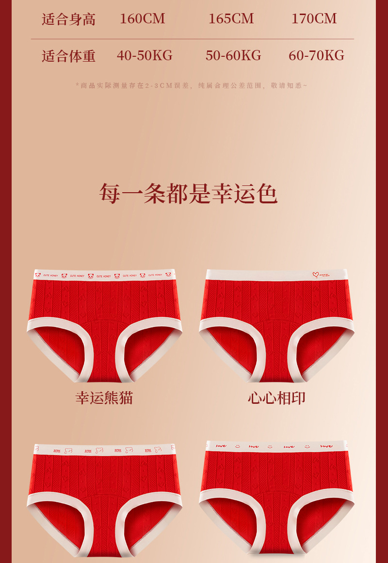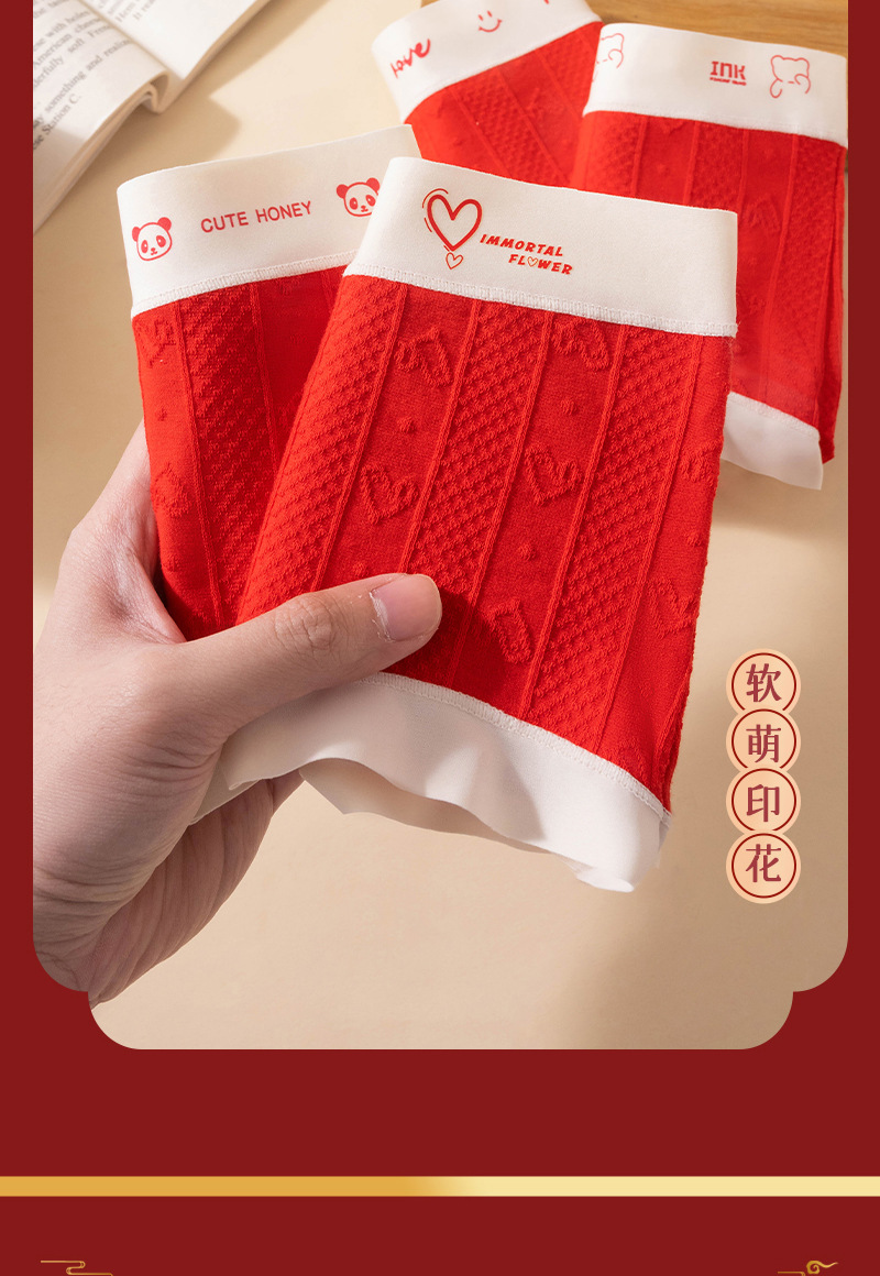 새 소녀 출생 년 홍윤 여성 속옷 길쭉한면 바닥 가랑이 축제 빨간 브리프 도매