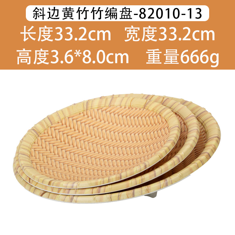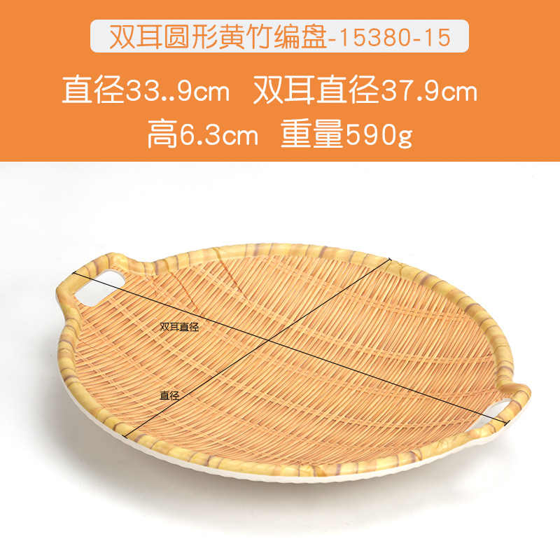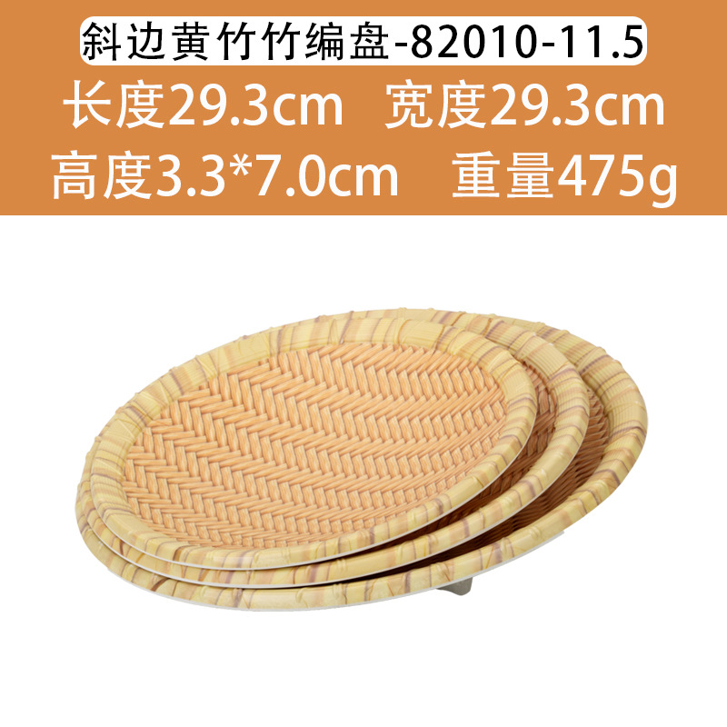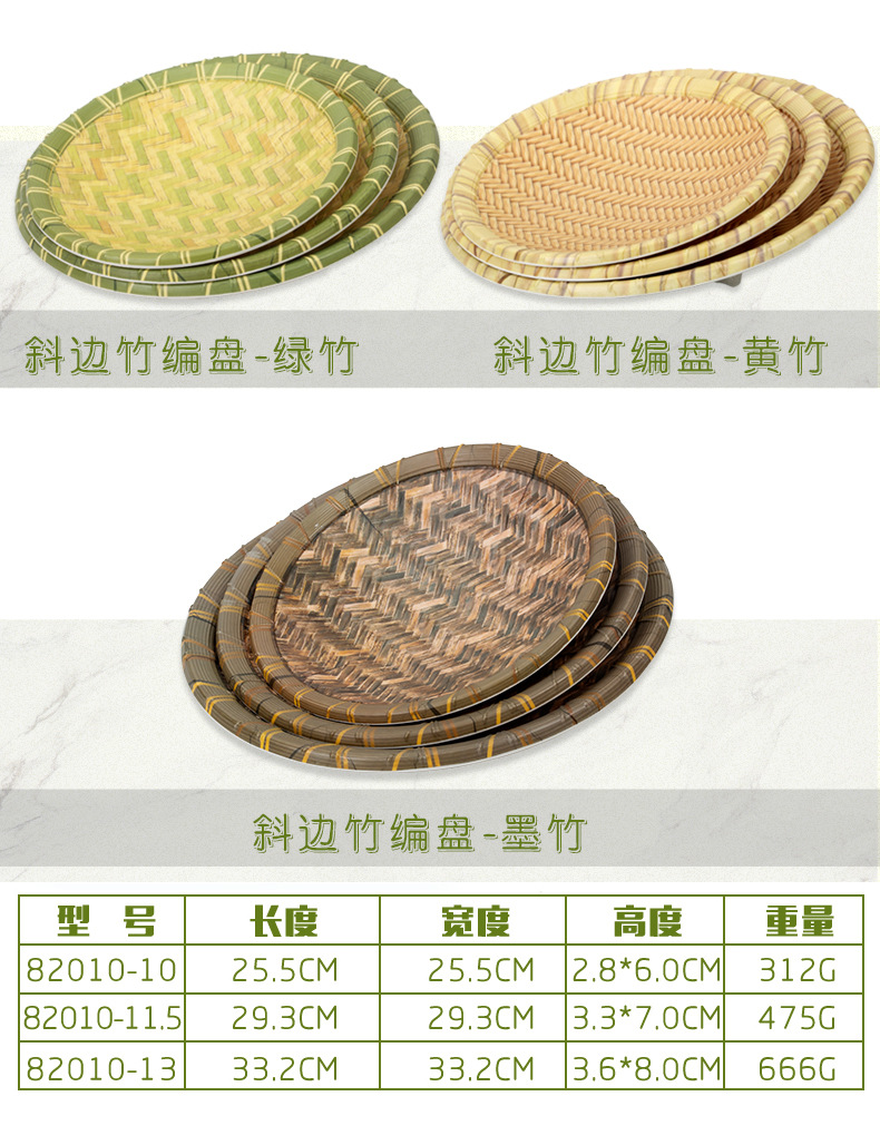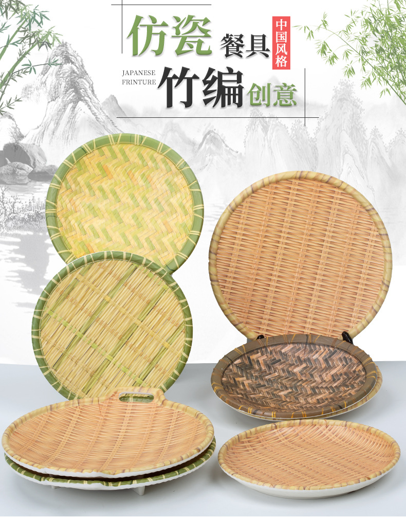 대나무 짠 플라스틱 냄비 고기 접시 모조 도자기 창조적 인 바베큐 플레이트 밀라 민 둥근 딤판 귀 간식 접시 식기스토어 가기