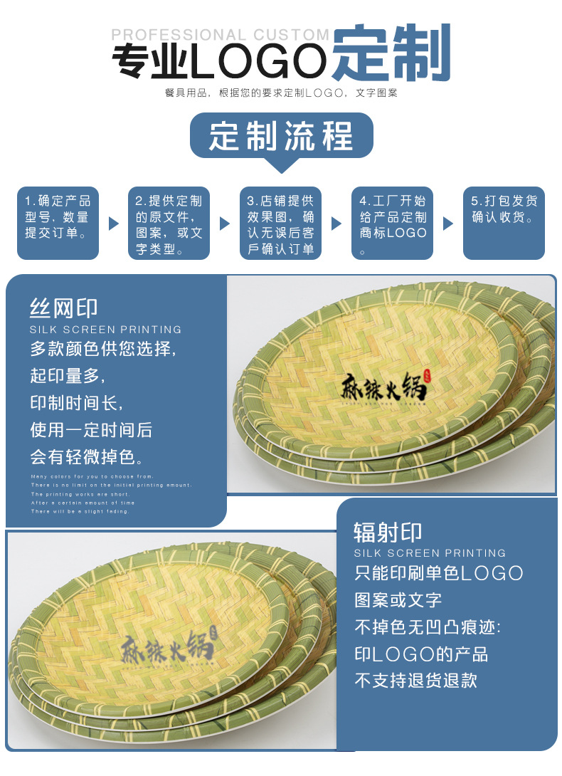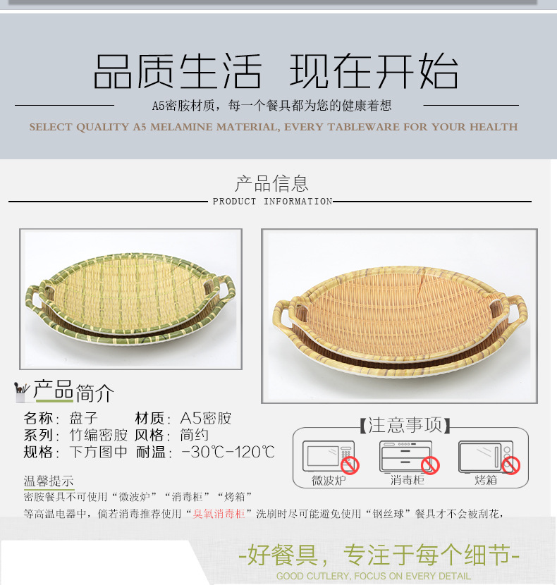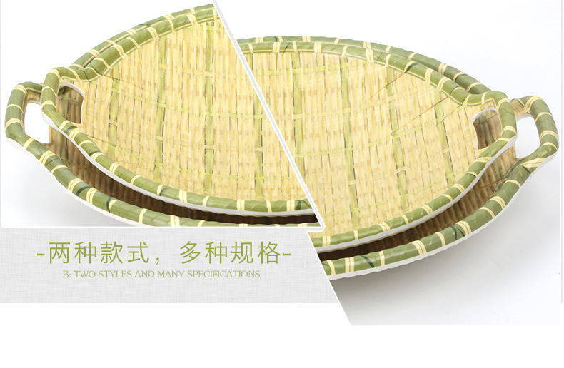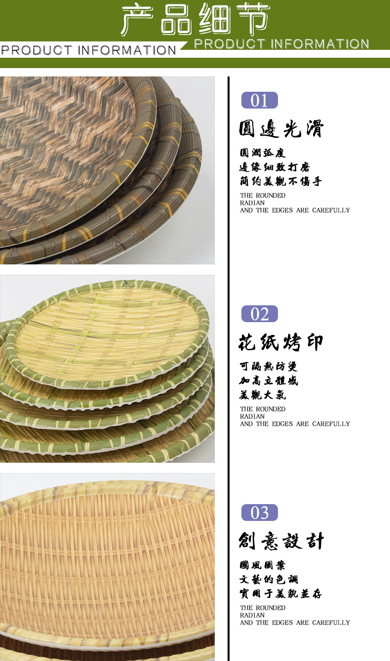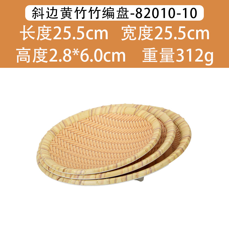대나무 짠 플라스틱 냄비 고기 접시 모조 도자기 창조적 인 바베큐 플레이트 밀라 민 둥근 딤판 귀 간식 접시 식기스토어 가기