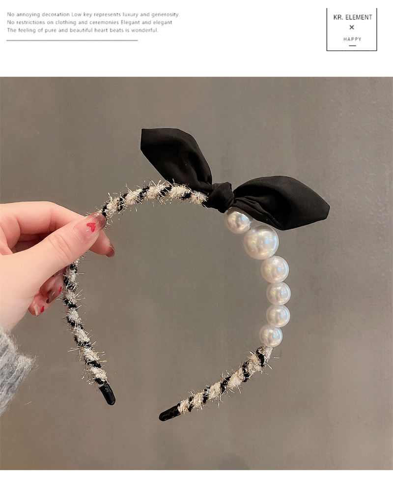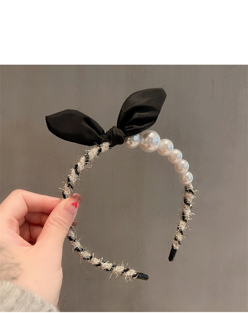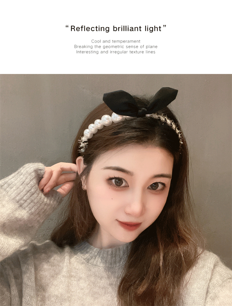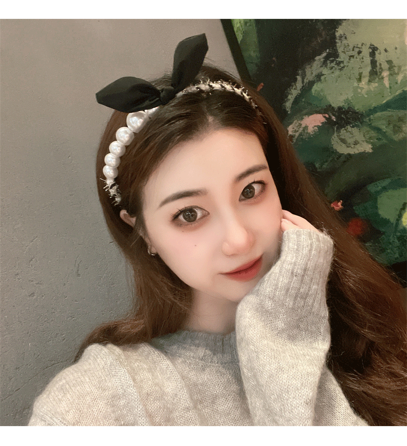 샤넬 스타일 토끼 귀 머리띠 여성용 가을 새로운 프랑스 스타일 한국 짧은 머리 머리띠 진주 간단한 소녀 머리 장식