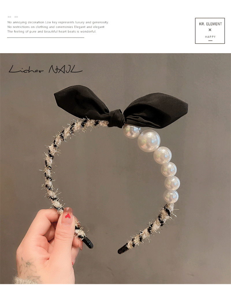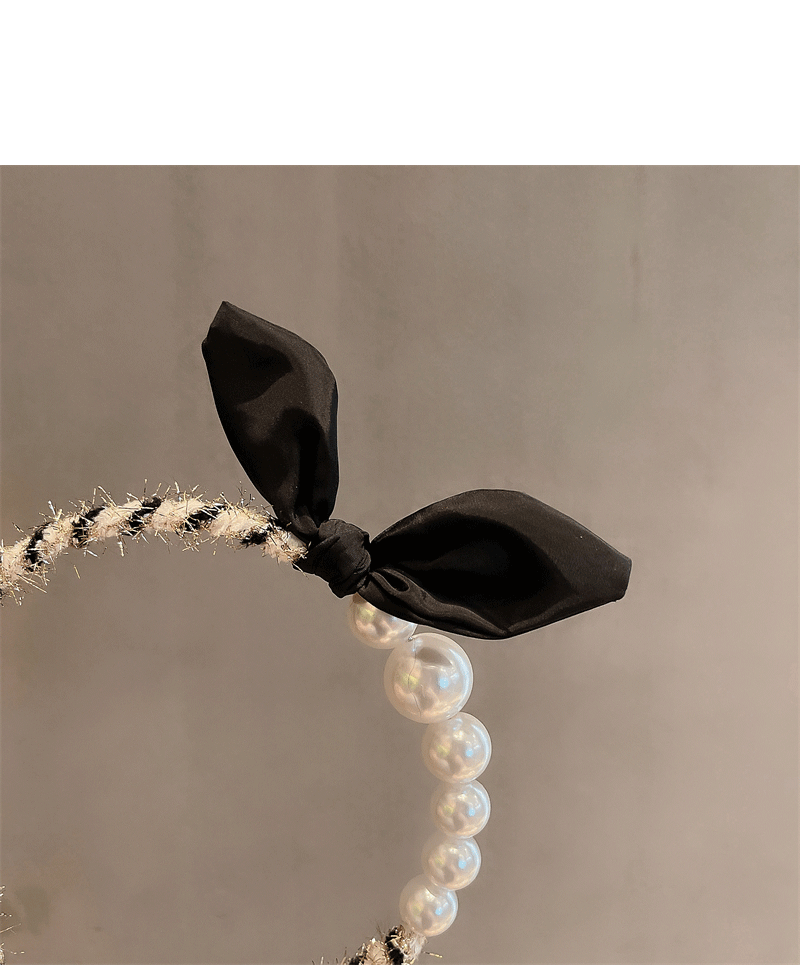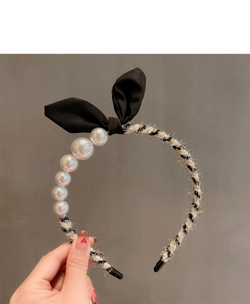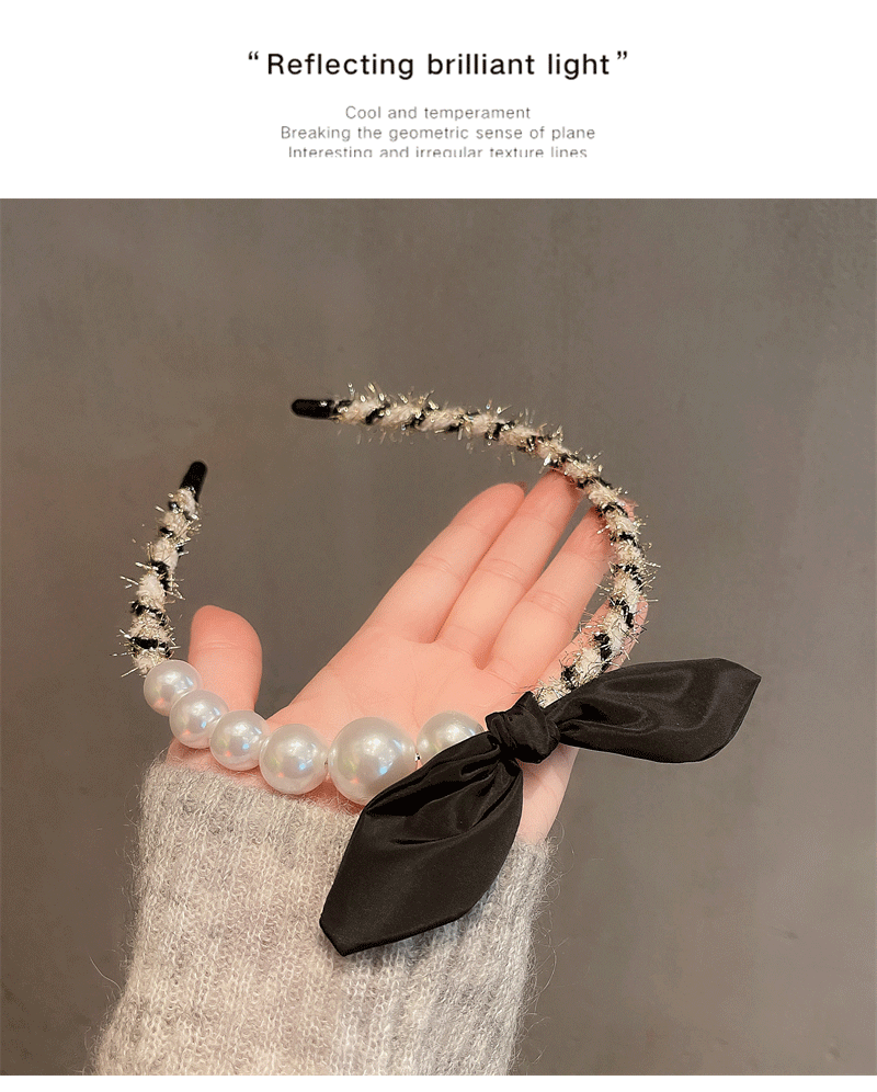 샤넬 스타일 토끼 귀 머리띠 여성용 가을 새로운 프랑스 스타일 한국 짧은 머리 머리띠 진주 간단한 소녀 머리 장식