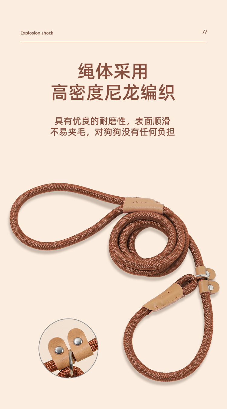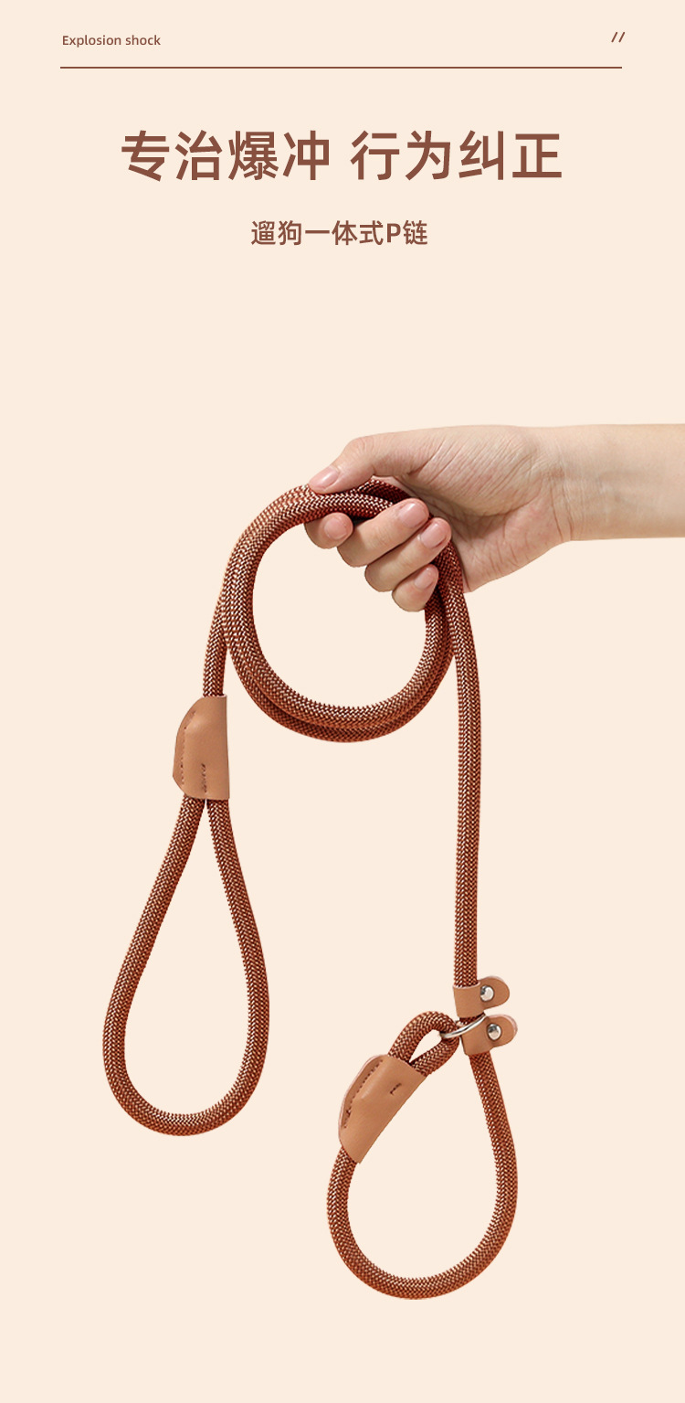 나일론 로프 P 체인 견인, 소 가죽 라운드 P 로프 개 보행 훈련 P 로프 조임 텔레스코픽 개 견인 로프