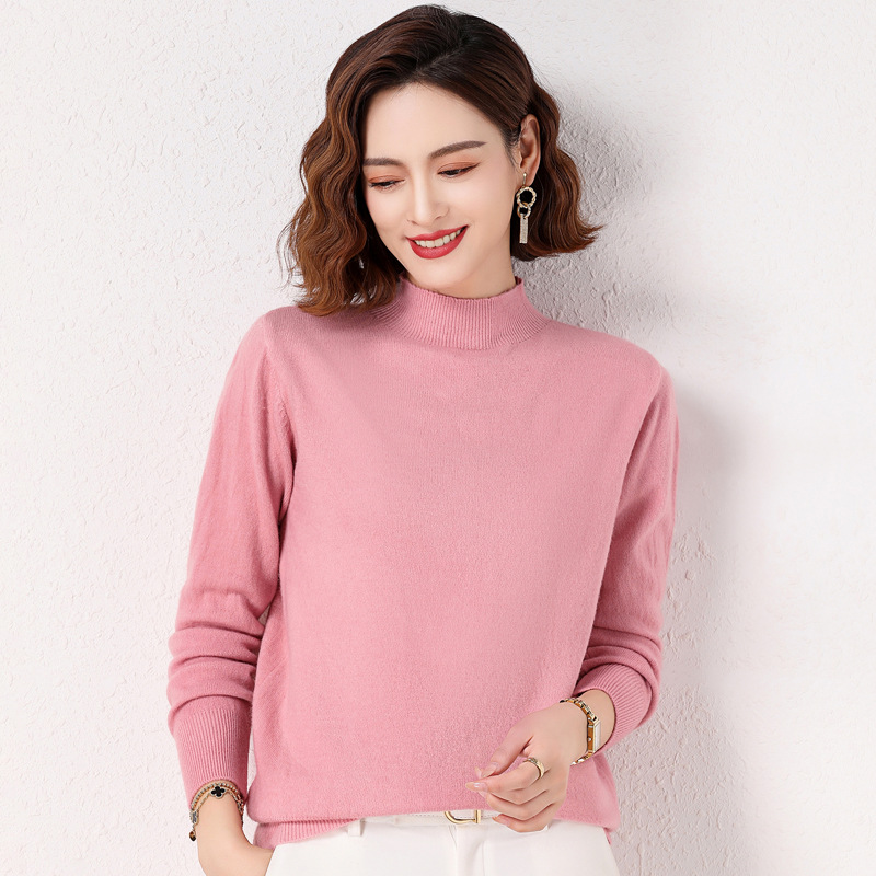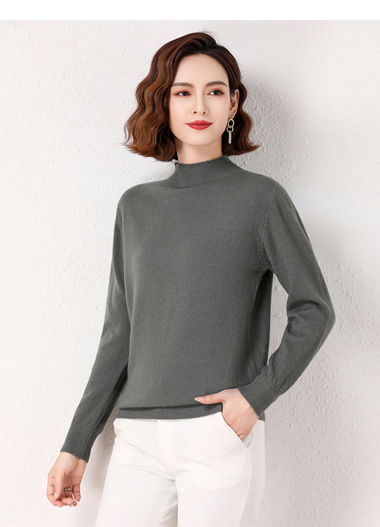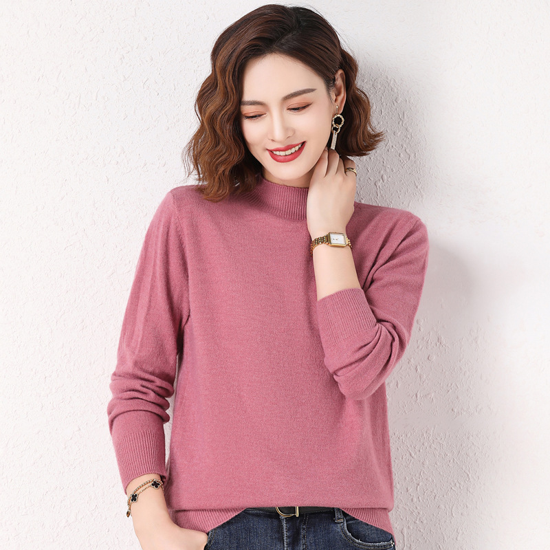 봄, 가을, 겨울용 하프 터틀넥 스웨터 여성용 내의 울 스웨터 긴팔 중년 및 노년 여성용 니트 베이스 셔츠 엄마용스토어 가기