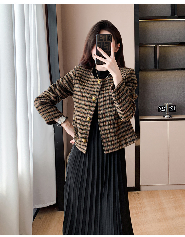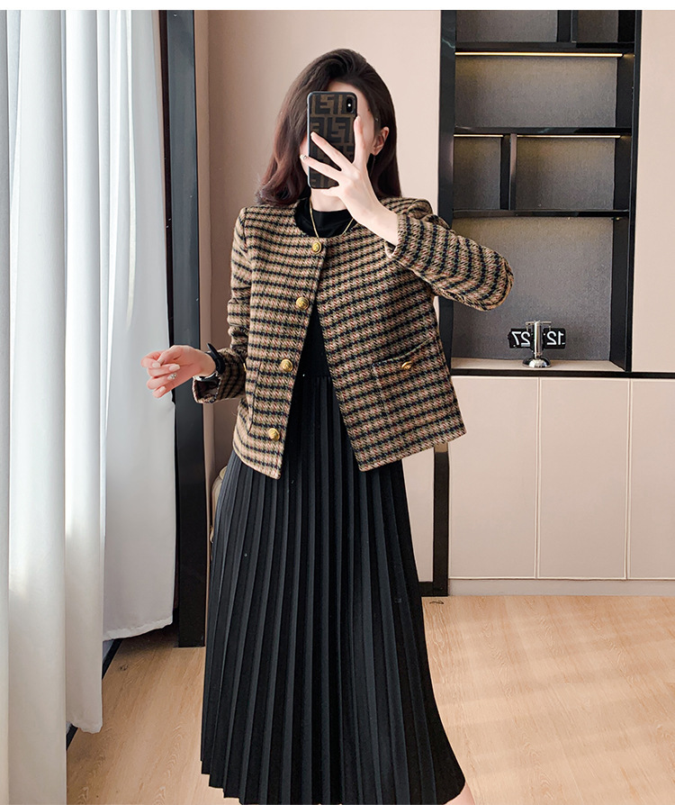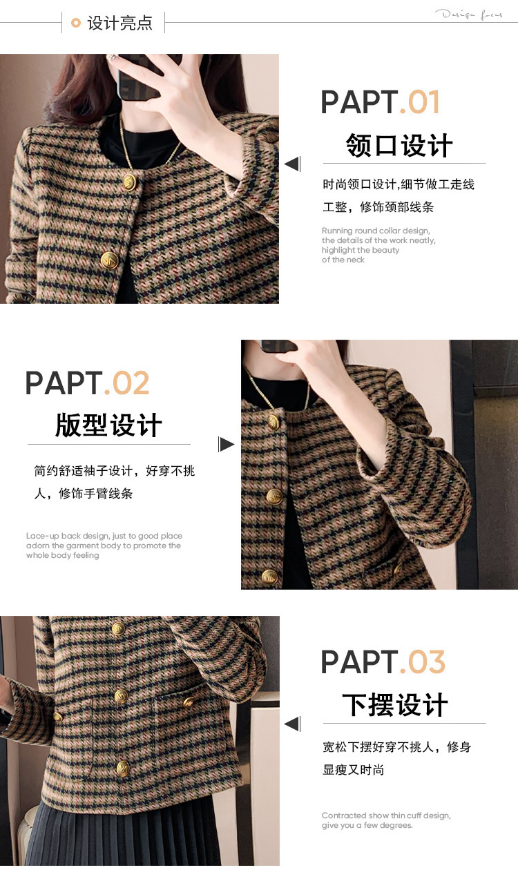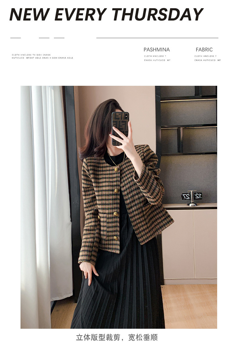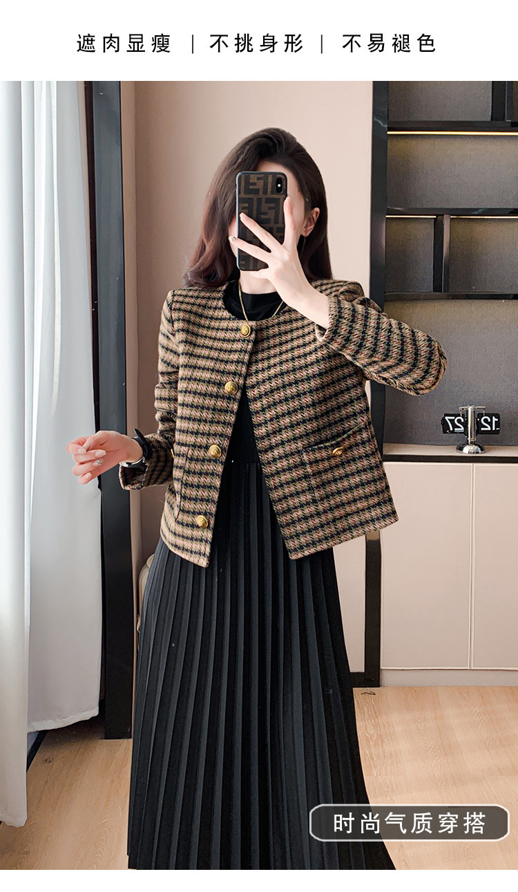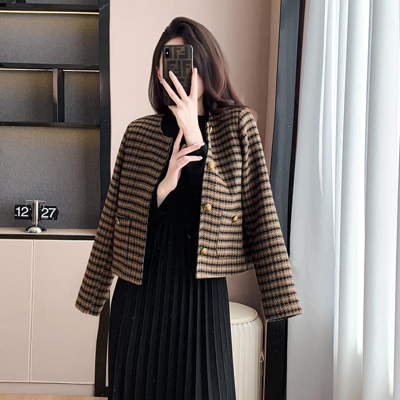 여성을위한 격자 무늬 샤넬 스타일 코트 봄과 가을 2023 새로운 서양식 짧은 유럽 스타일 모직 탑스토어 가기