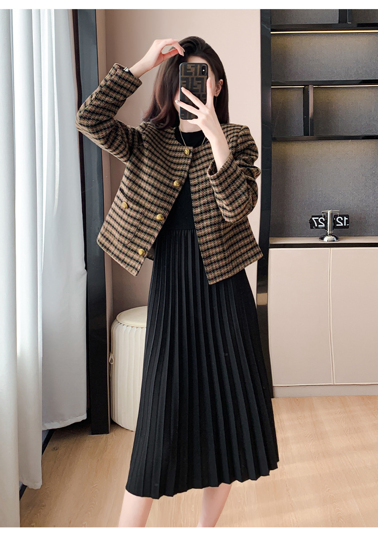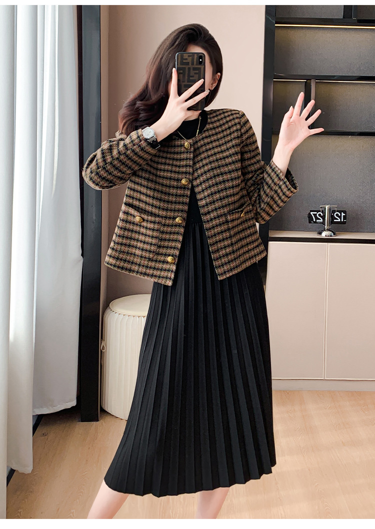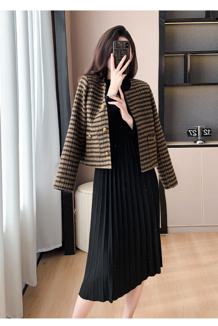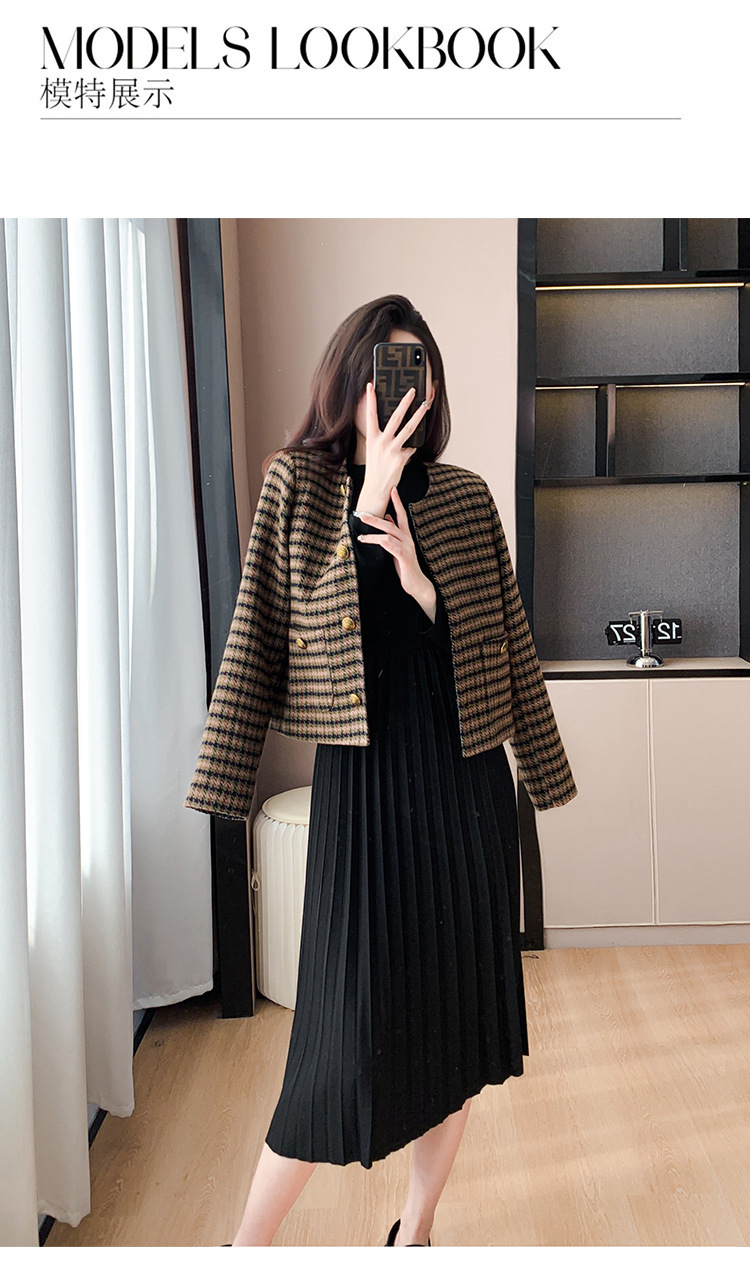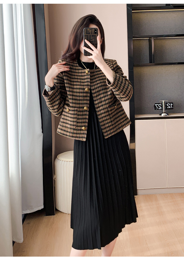 여성을위한 격자 무늬 샤넬 스타일 코트 봄과 가을 2023 새로운 서양식 짧은 유럽 스타일 모직 탑스토어 가기
