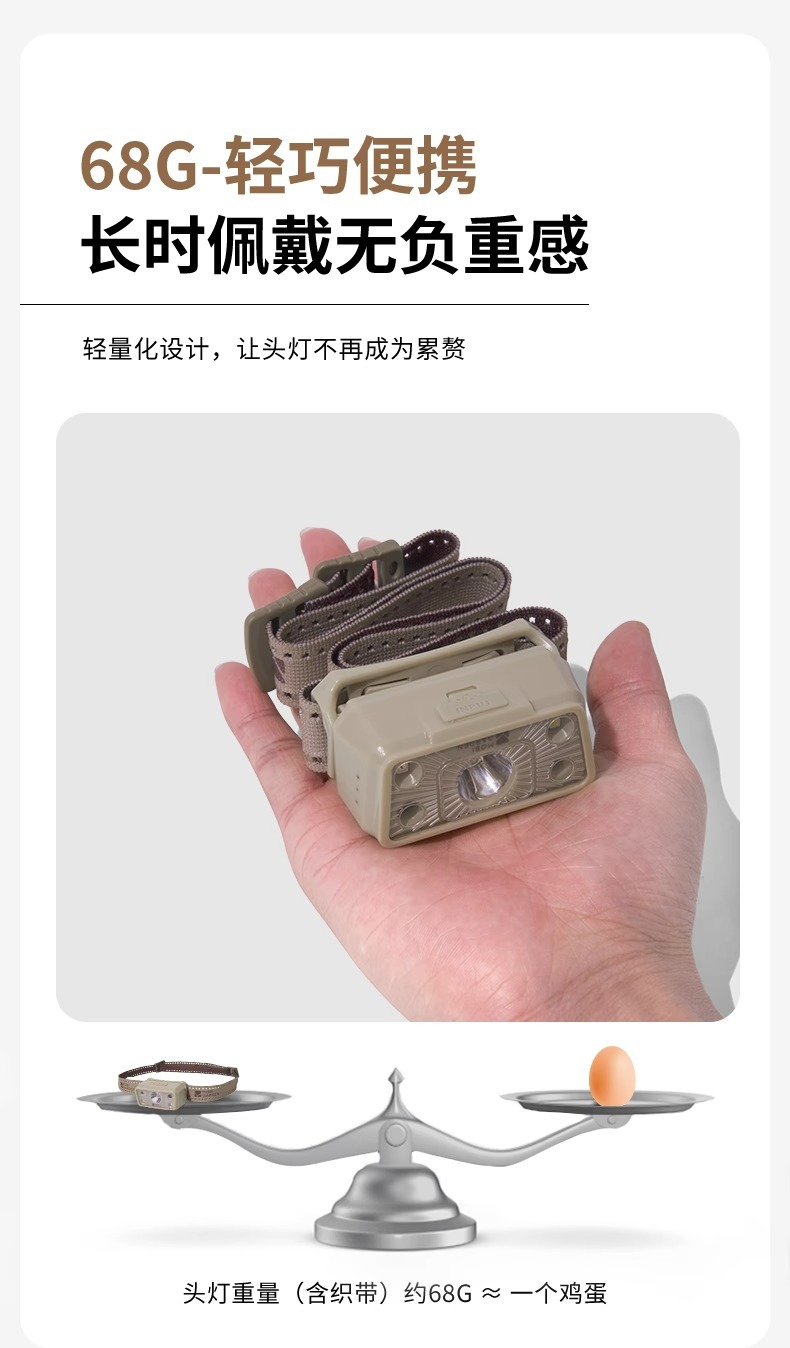 야외 야간 낚시를 위한 Mu Gaodi 유도 헤드라이트, 강한 빛 충전, 하이킹 및 등산을 위한 매우 밝고 긴 수명의 헤드 장착형 조명
