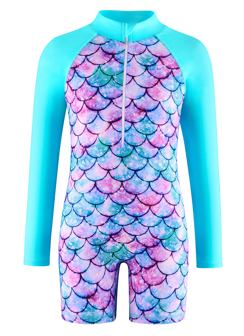 2.拉链防夹条设计,防止宝贝肌肤被夹伤,优质拉链,顺滑不卡,经久耐用!长袖连体泳装,可以防止宝宝的手臂被阳光照射!