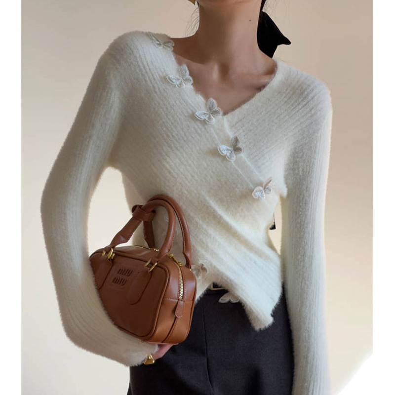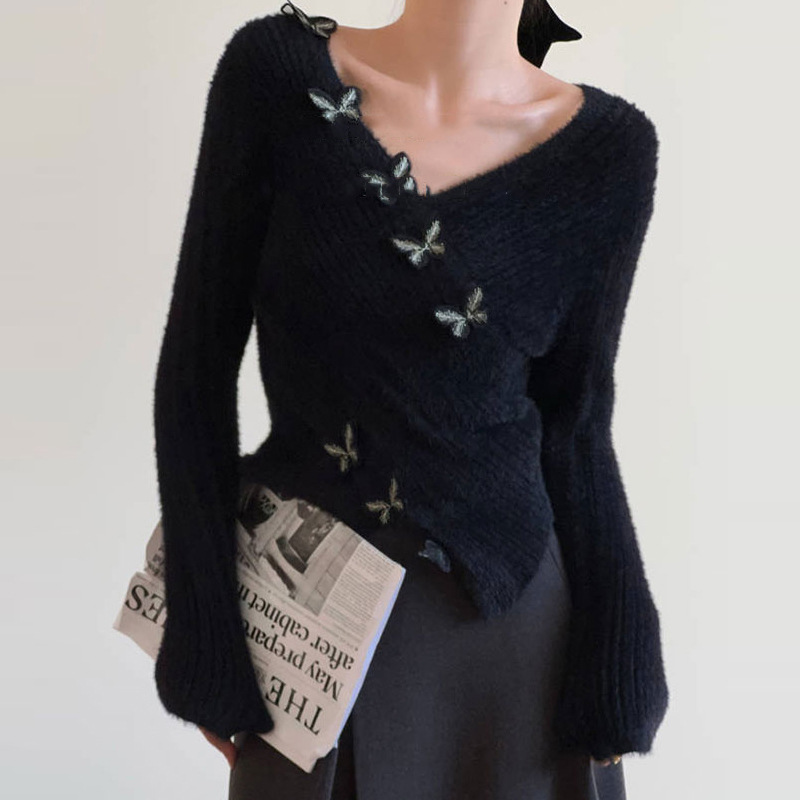 XIAOZHI ~ 접시 사랑 눈 올 매치 복고풍 크로스 가짜 밍크 벨벳 스웨터스토어 가기