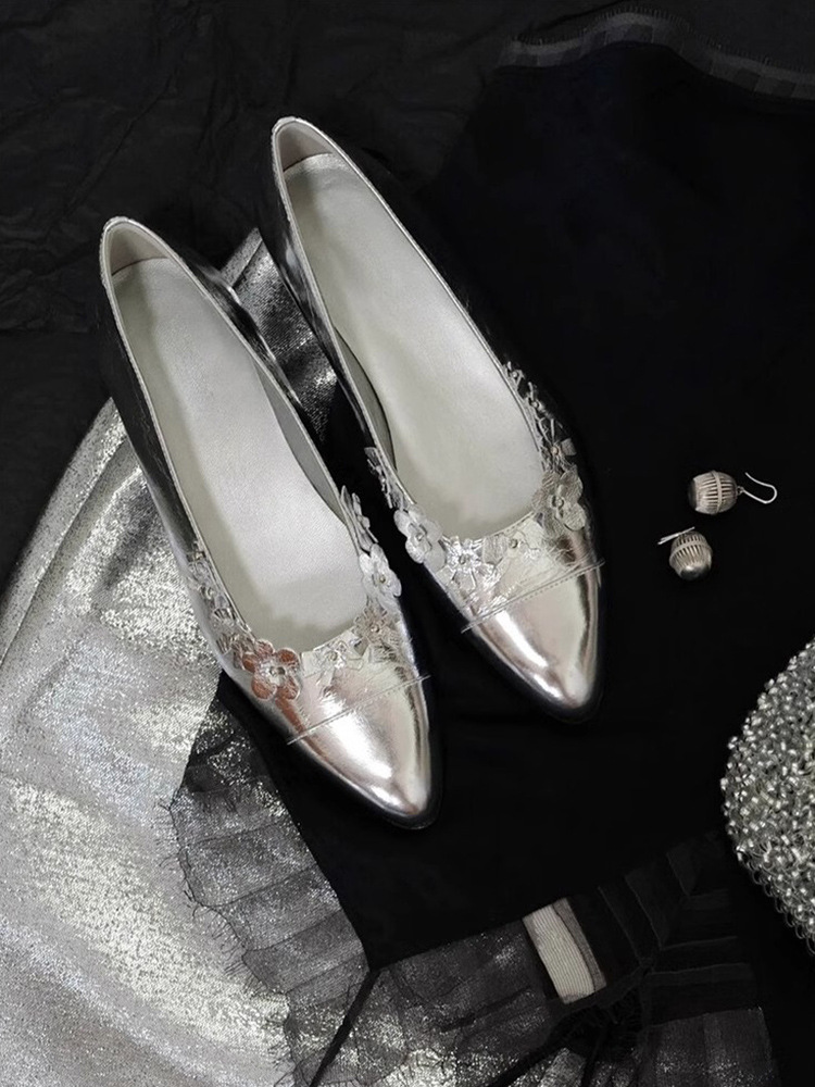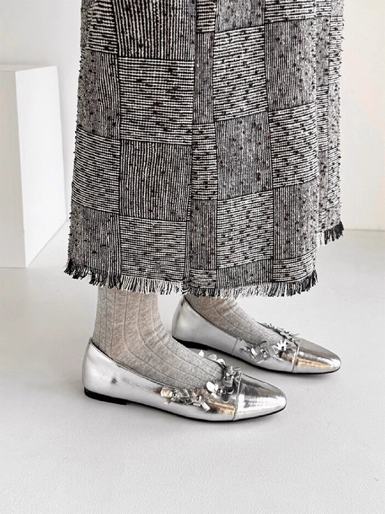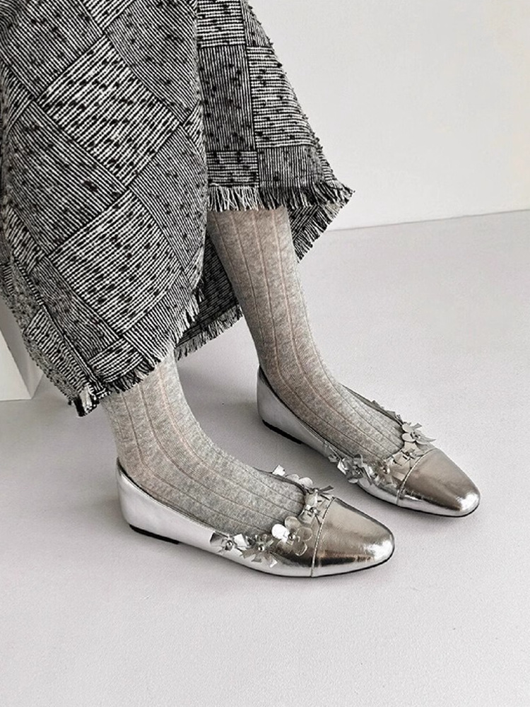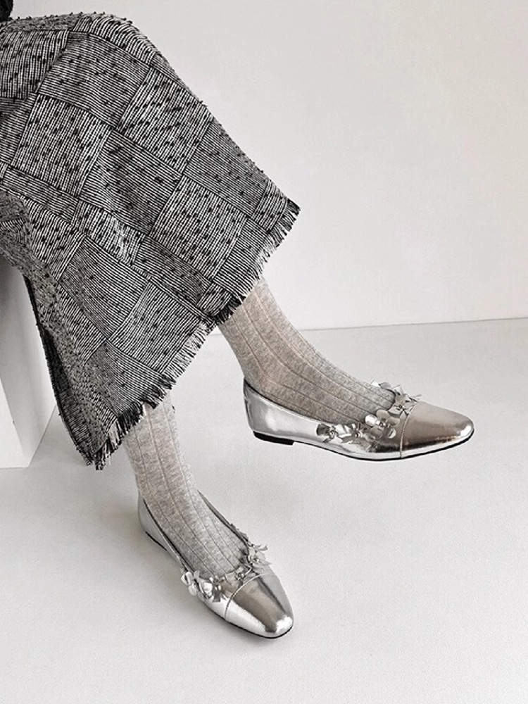 프랑스 플랫 얕은 입 메리 제인 여성 신발 새로운 틈새 특허 가죽 꽃 장식 레이디 포인팅 신발 슬립 온 신발스토어 가기