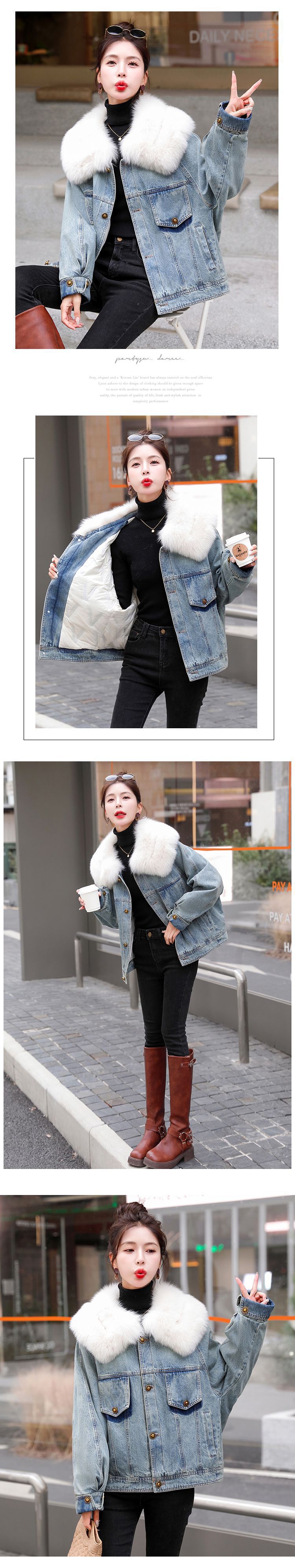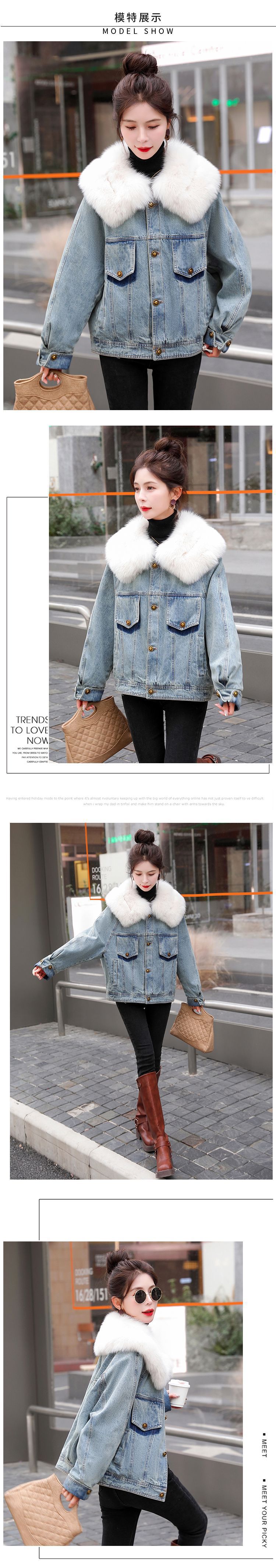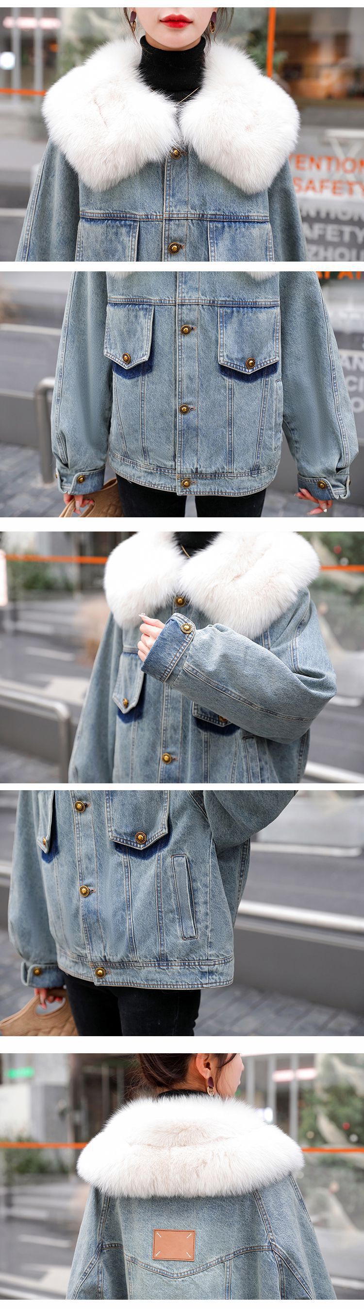 데님 코트 여성의 짧은 기모 두꺼운 대형 고급 모피 칼라면 패딩 코트 2023 겨울 새 모피 파카 옷스토어 가기